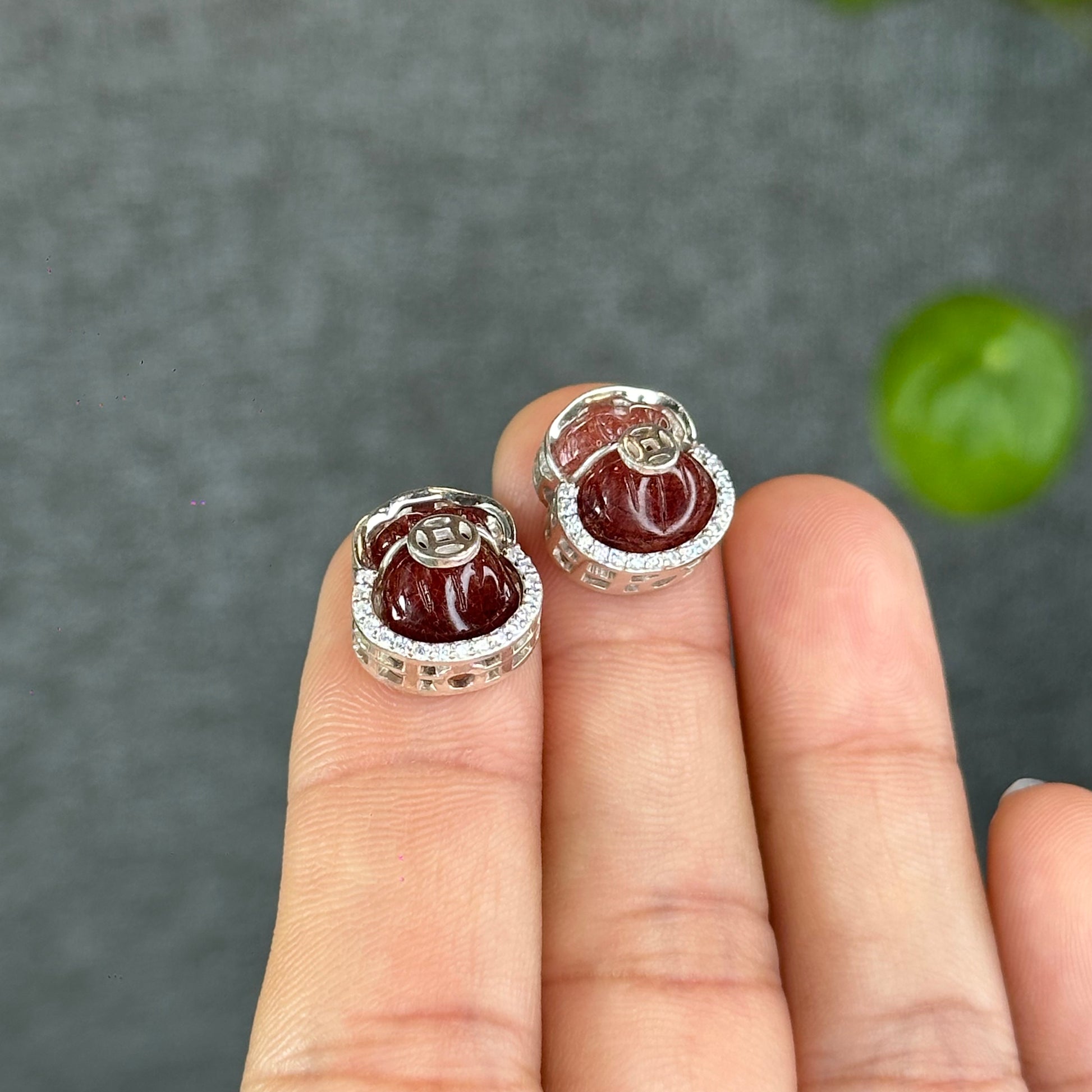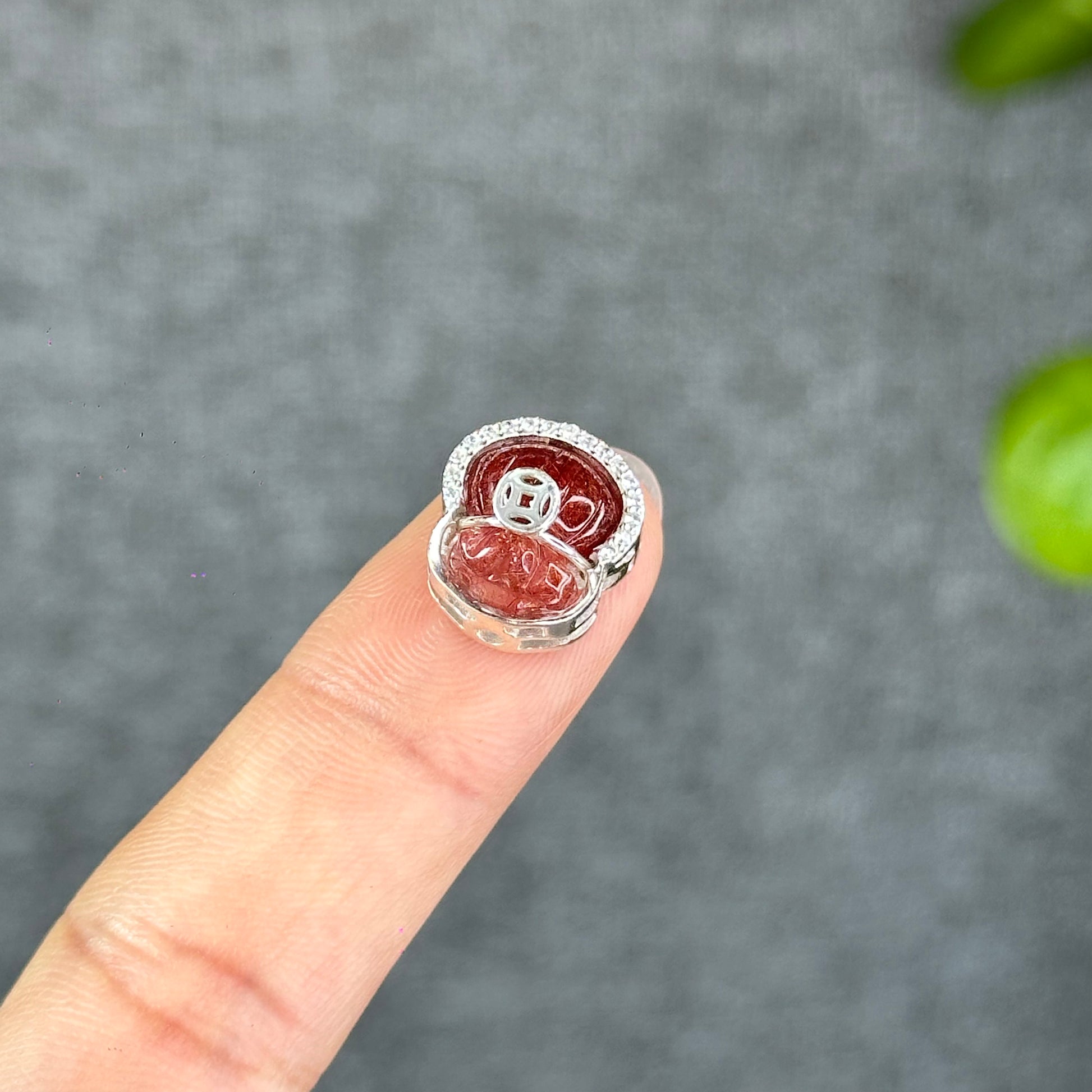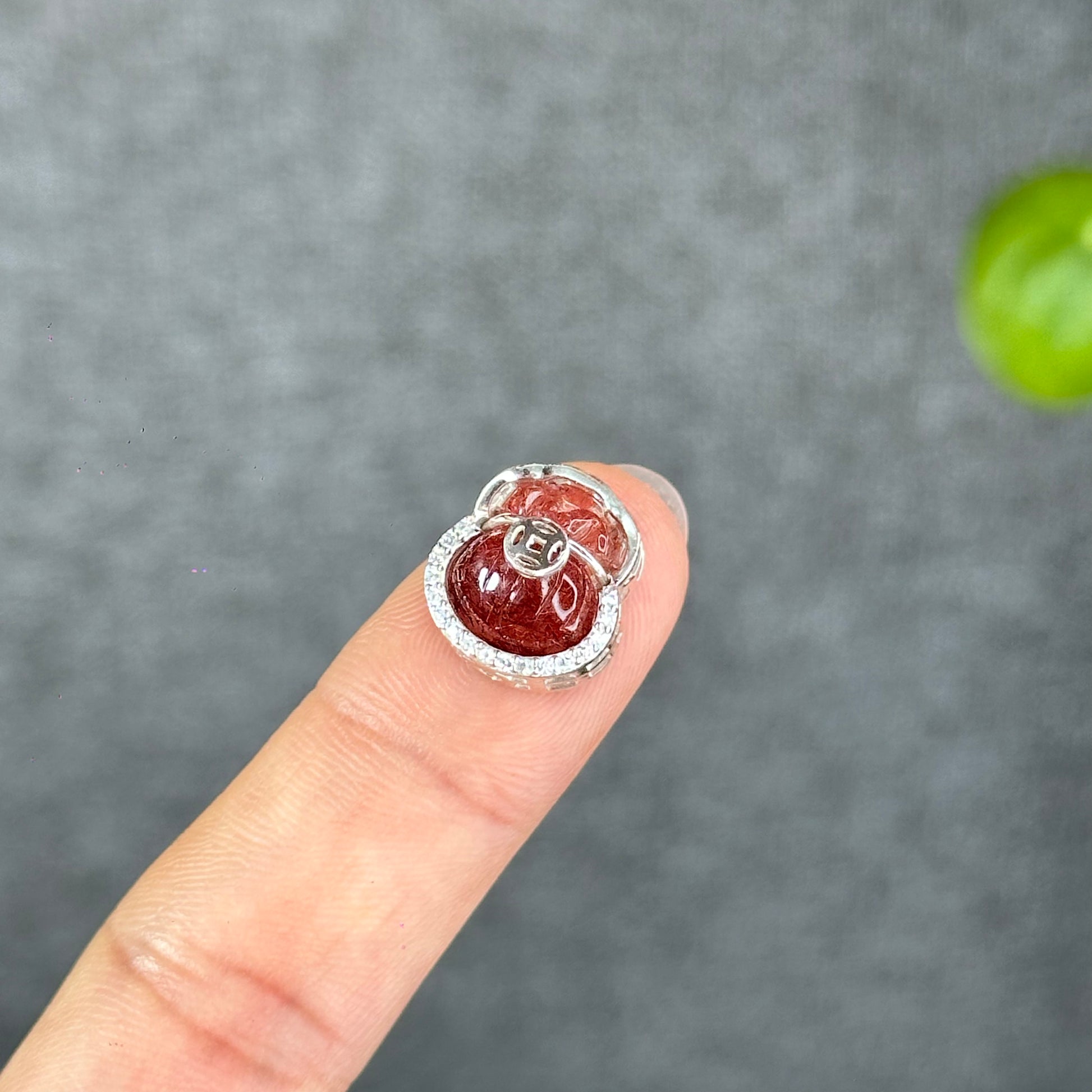 - Natural Red Rutilated Quartz Money Bag Charm in Silver Setting