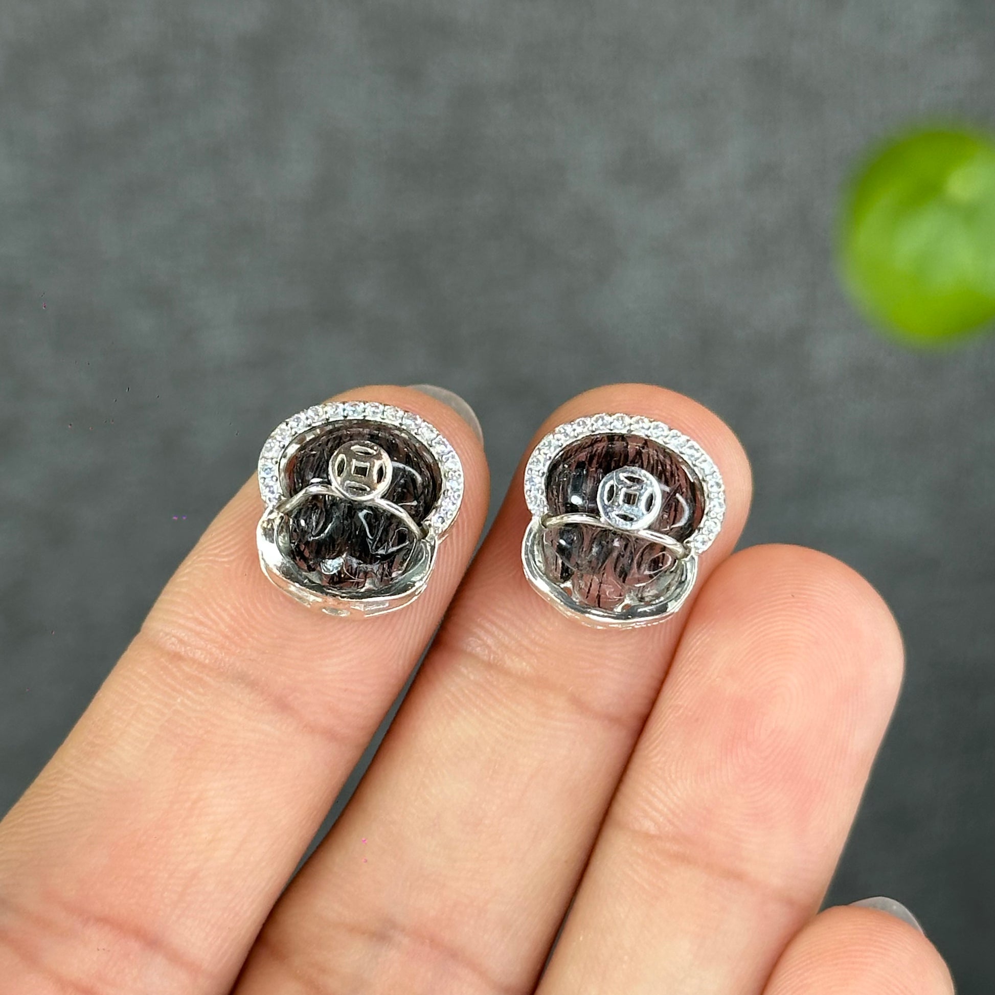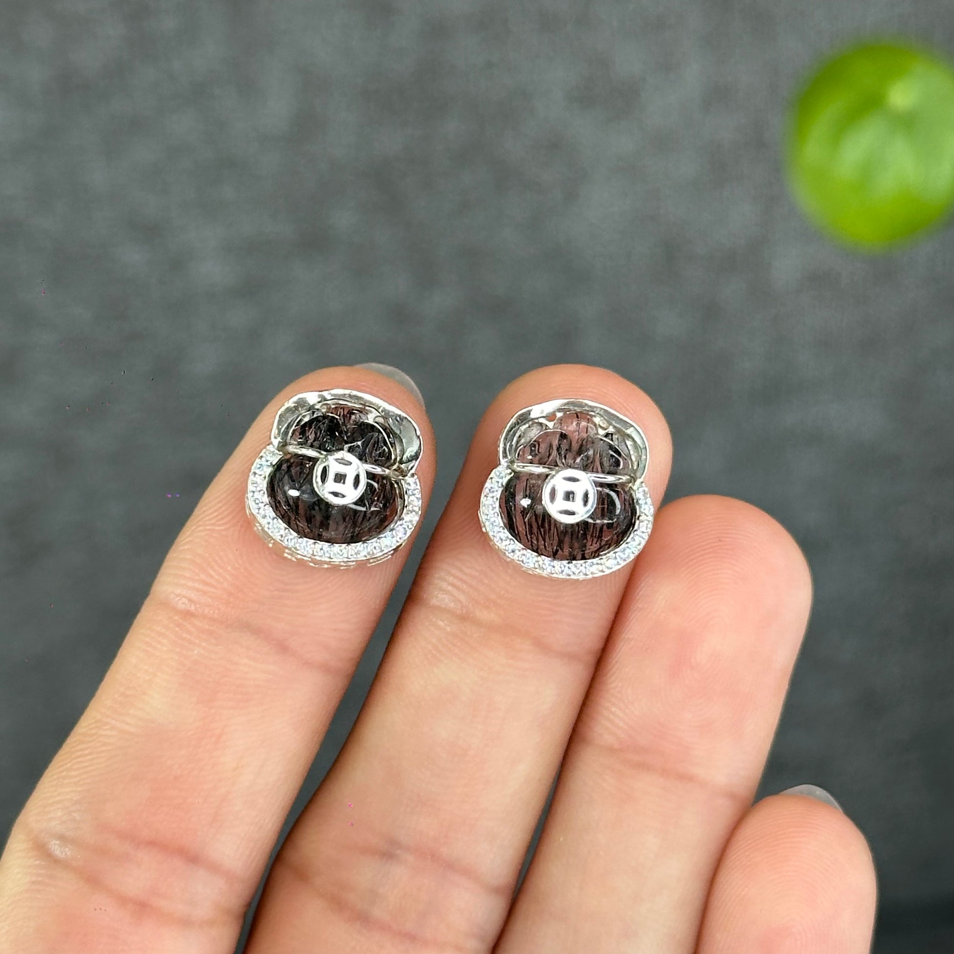 - Natural Black Rutilated Quartz Money Bag Charm in Silver Setting