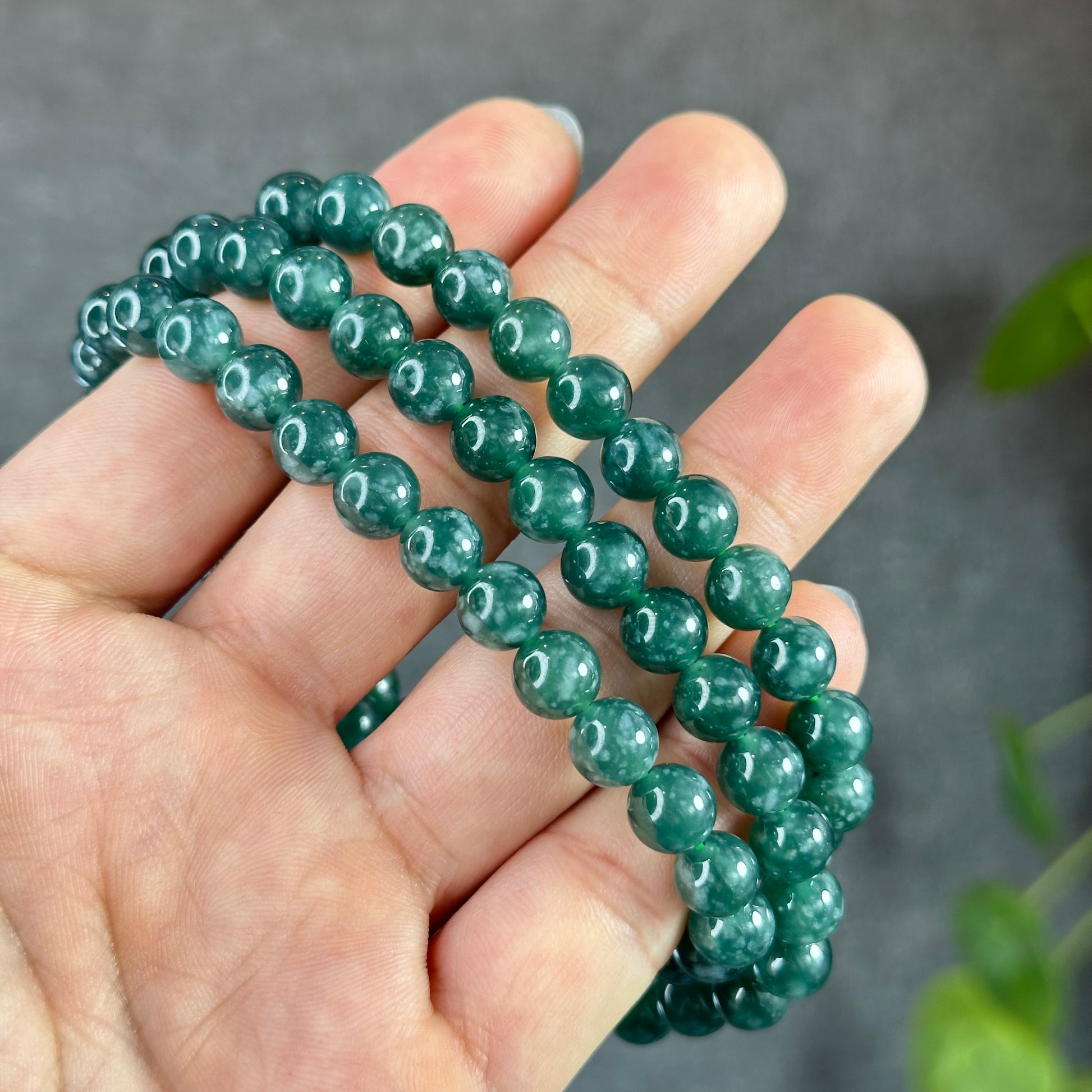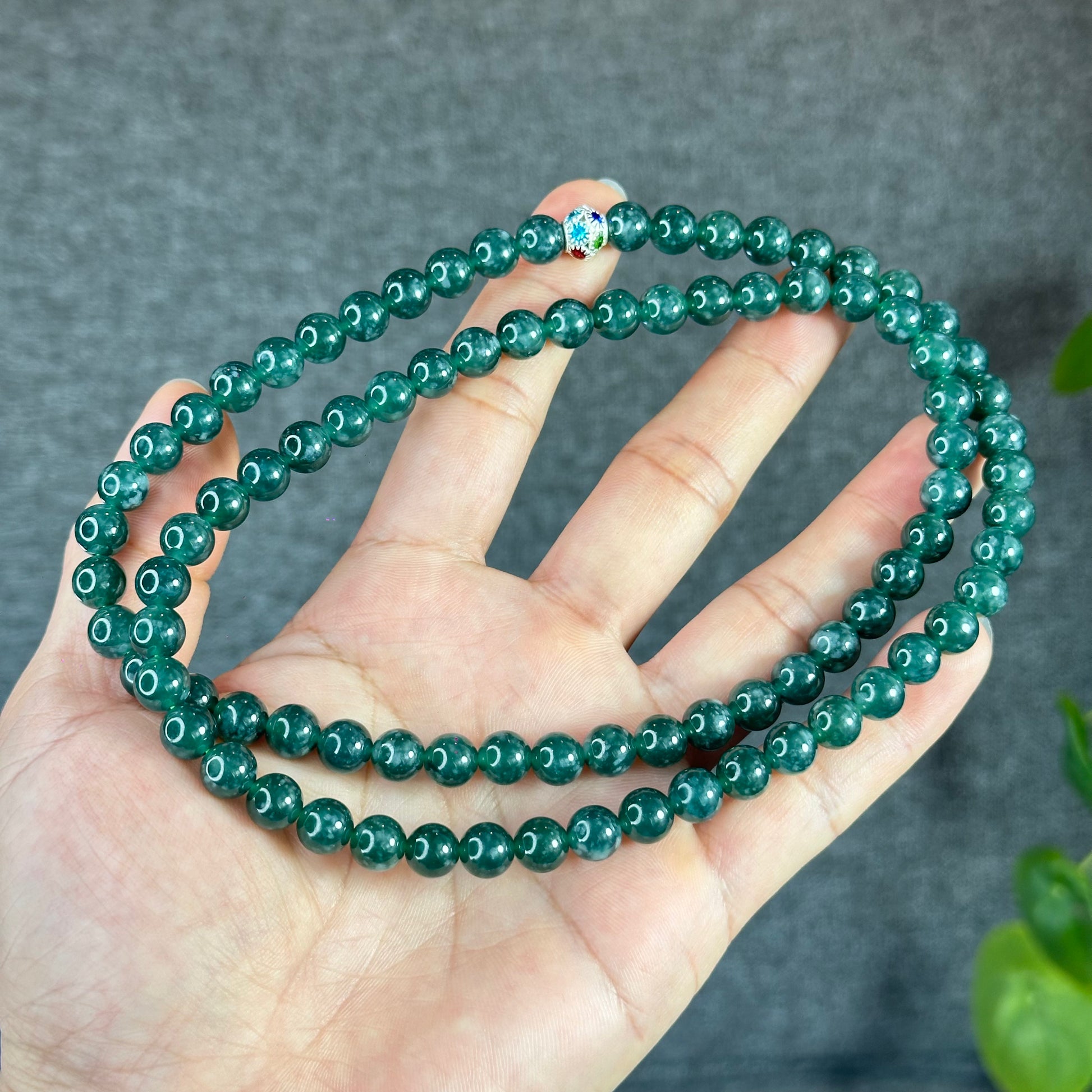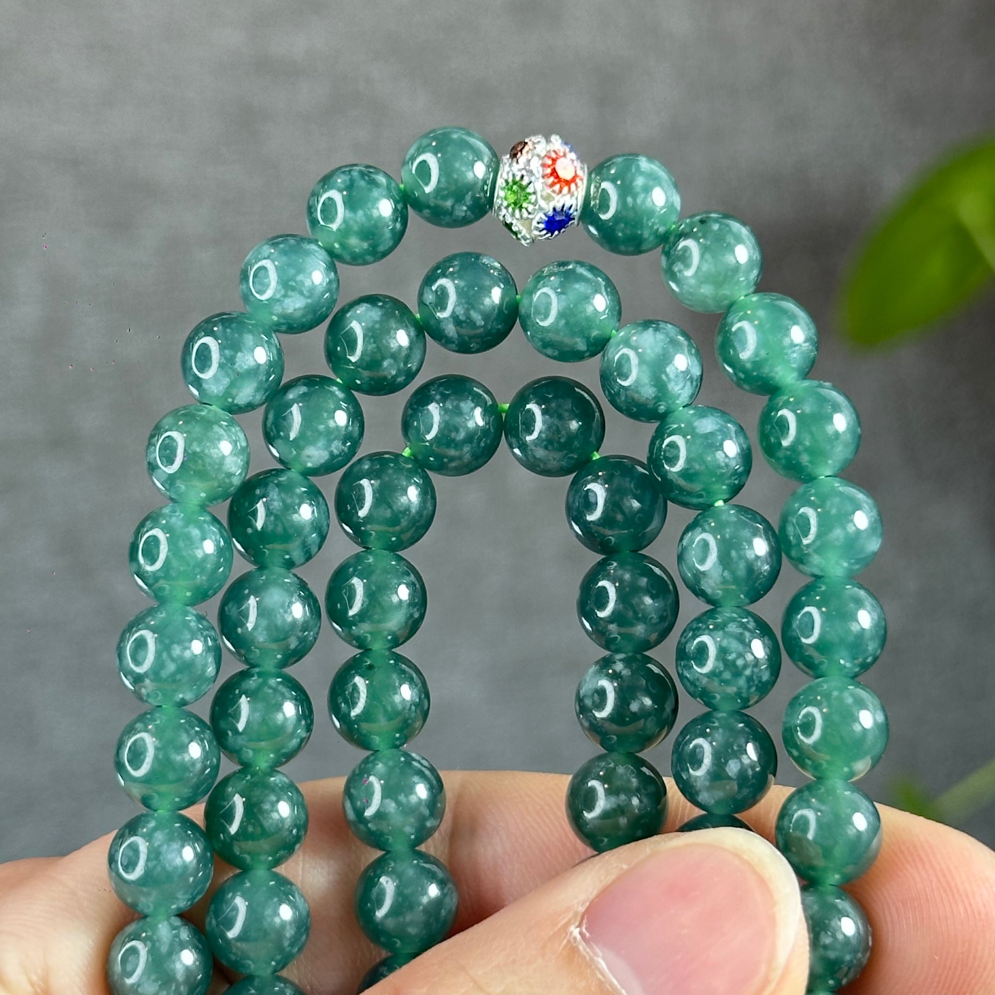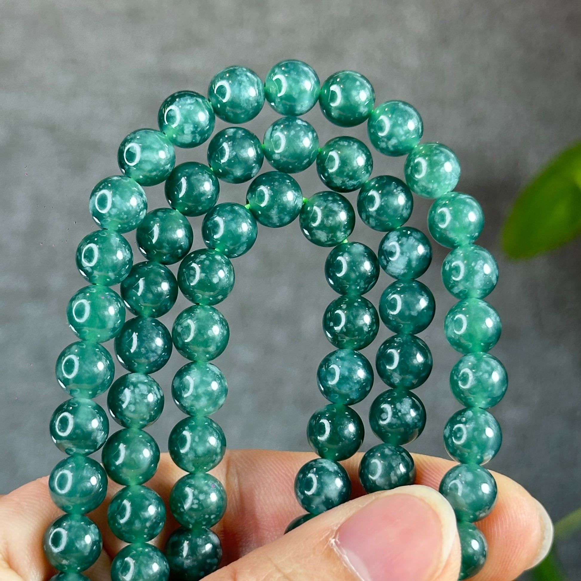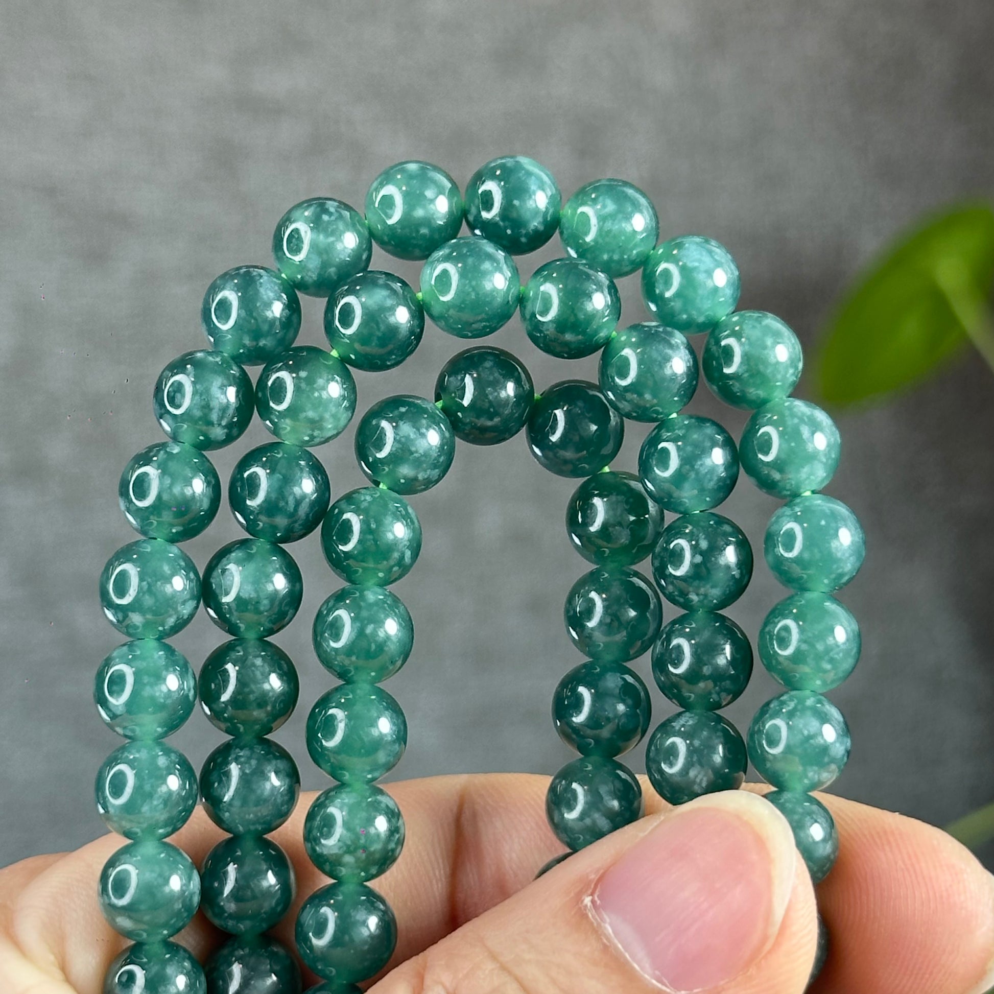 Water Green Semi-Translucent Natural Jadeite Jade Necklace Size 7.8 mm
