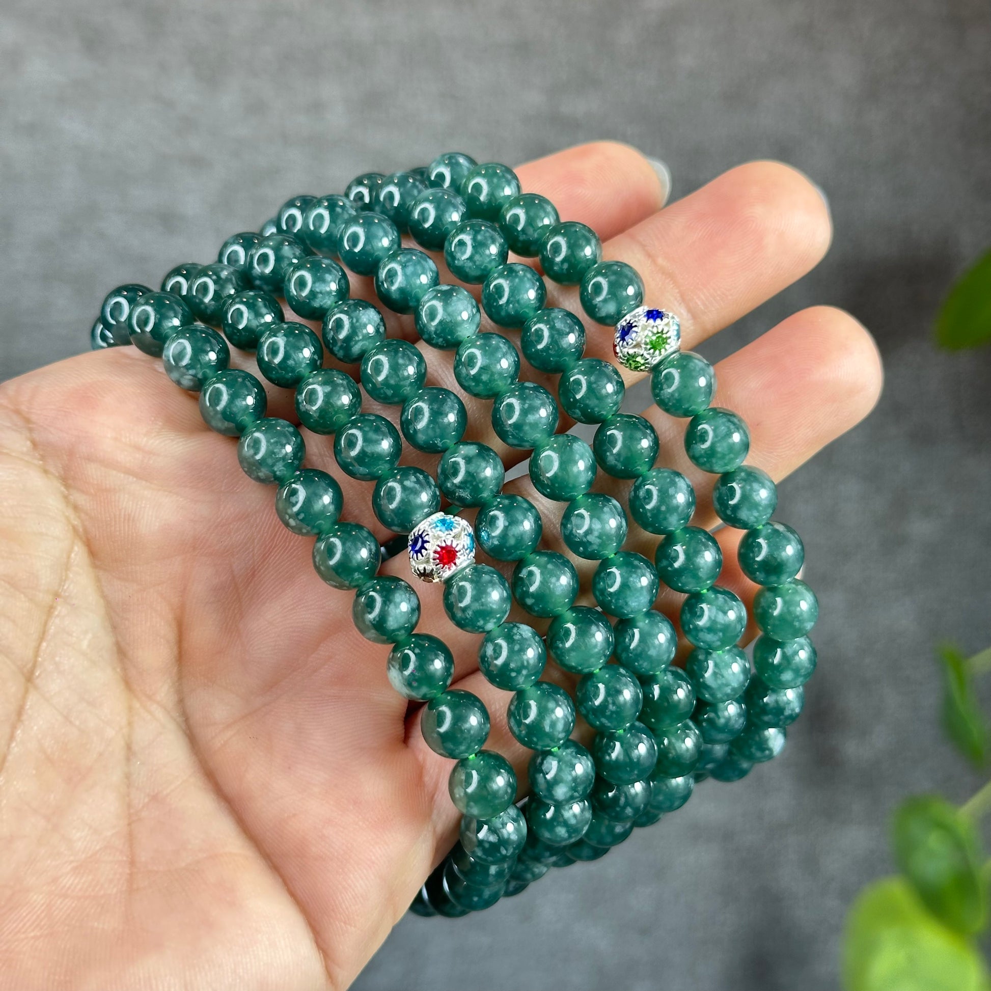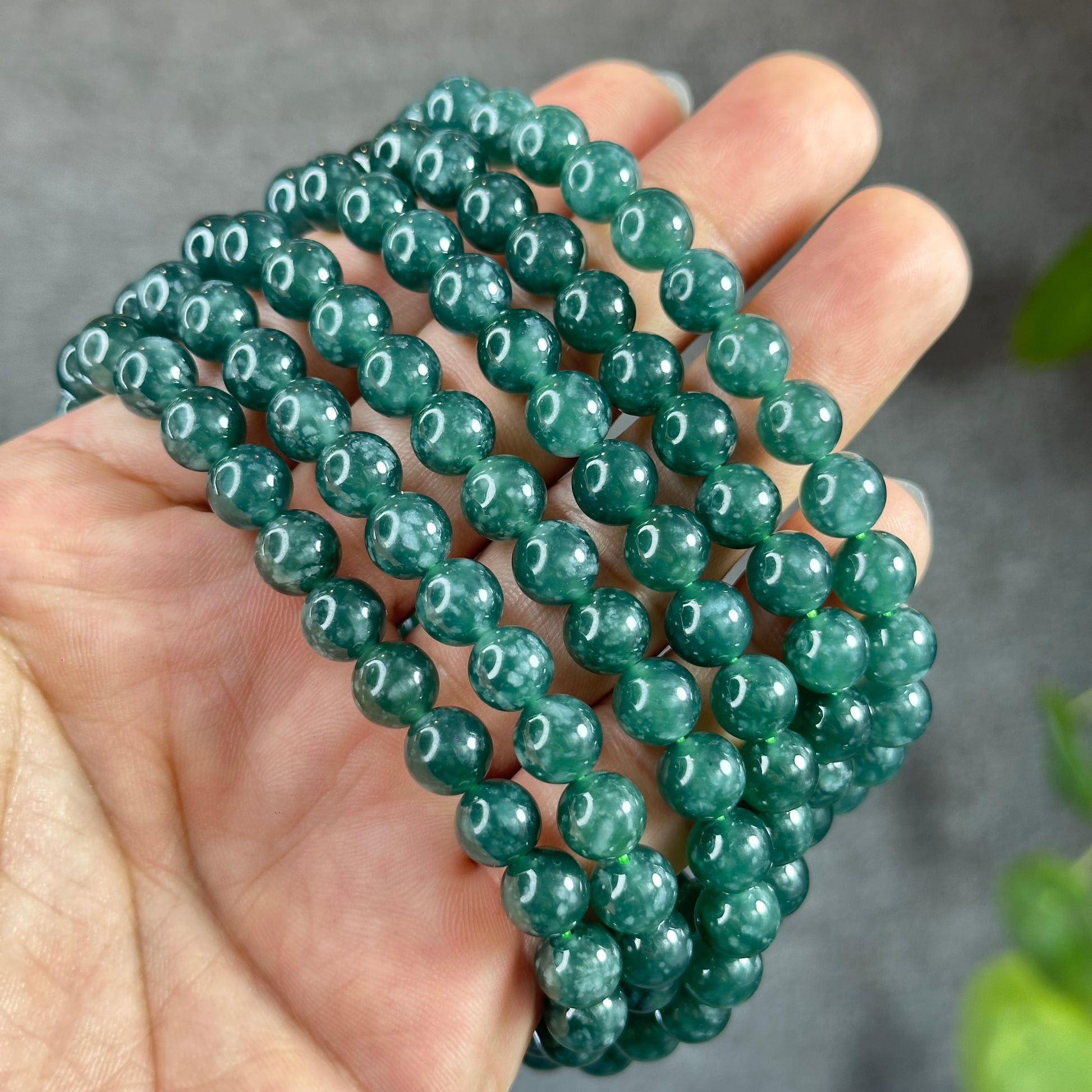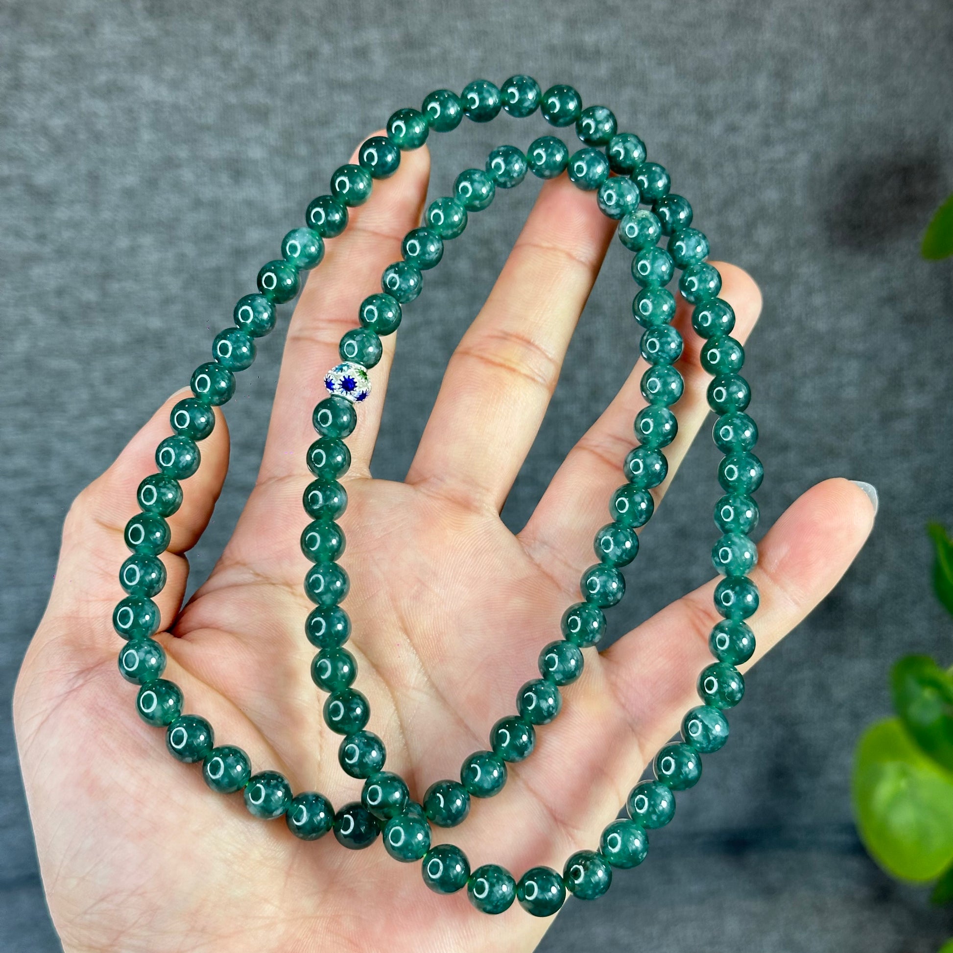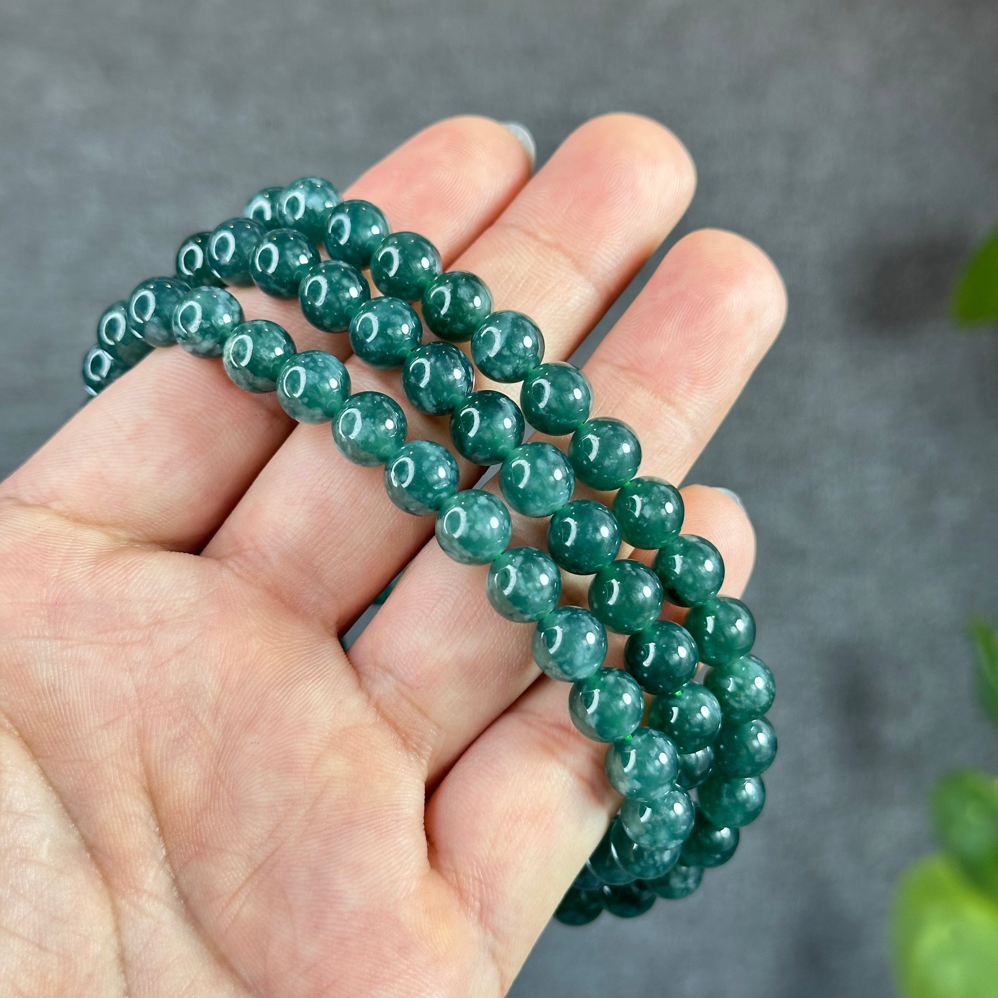 Water Green Semi-Translucent Natural Jadeite Jade Necklace Size 7.8 mm