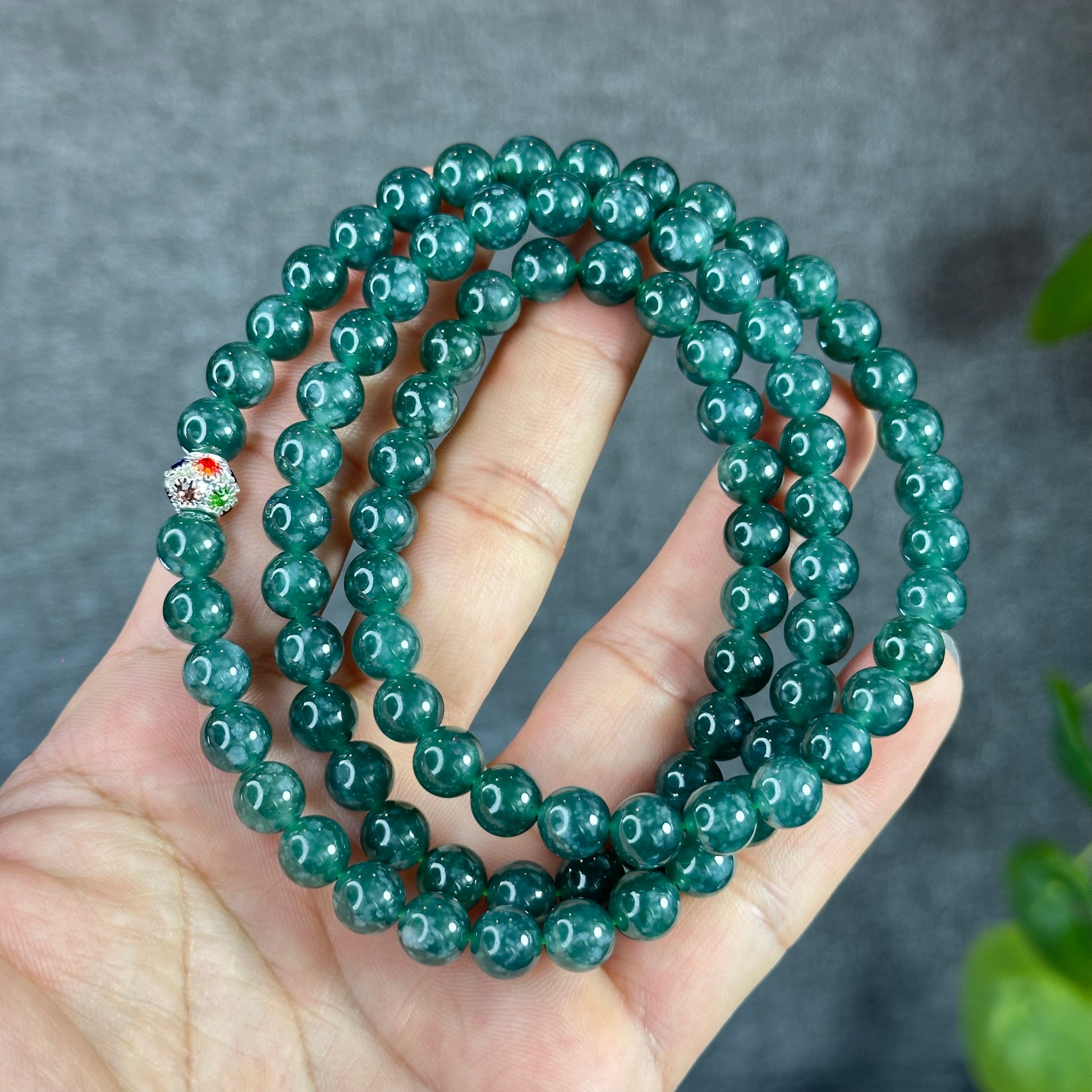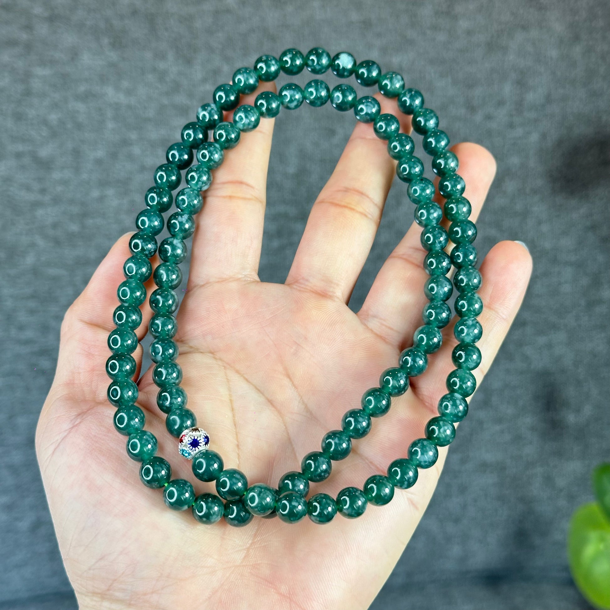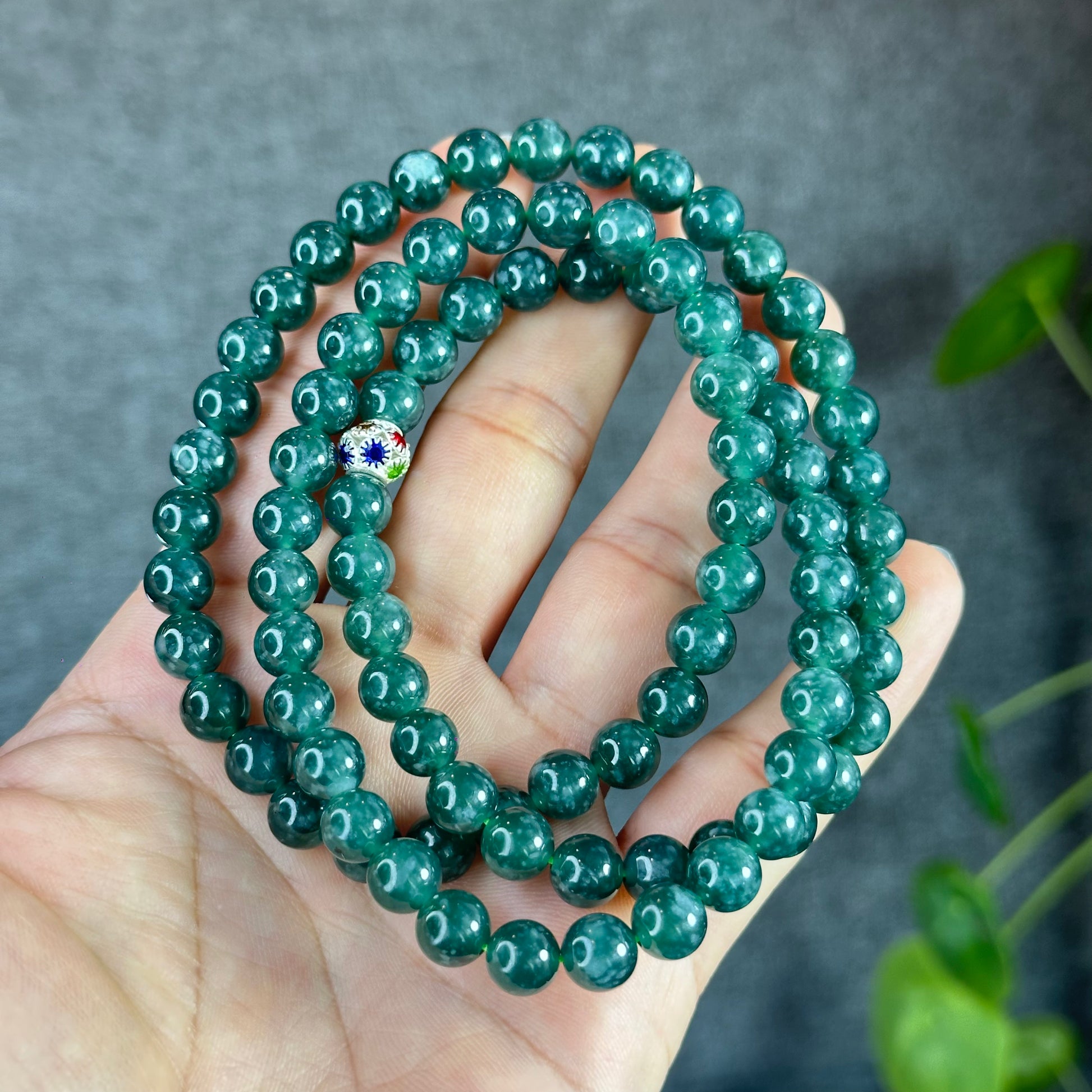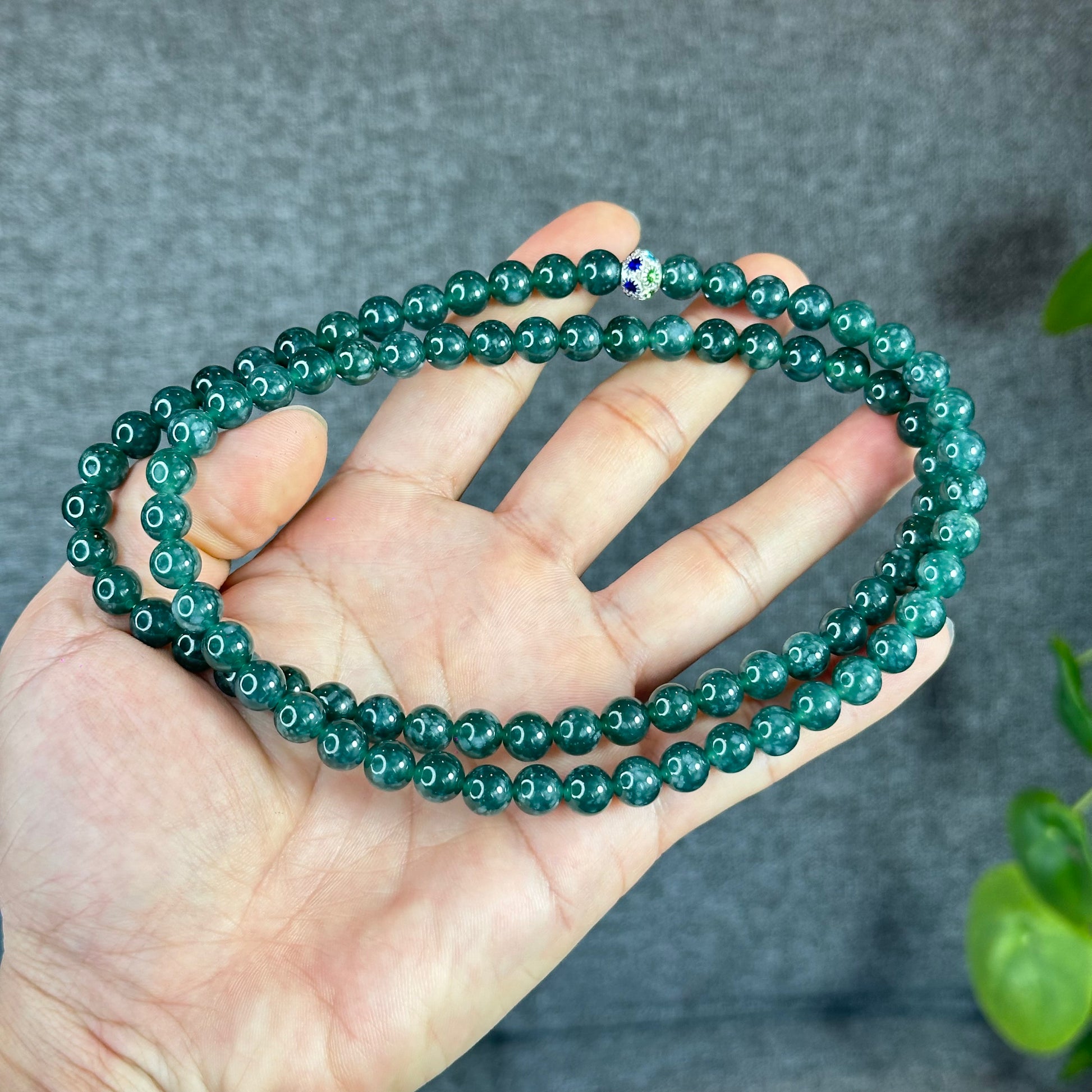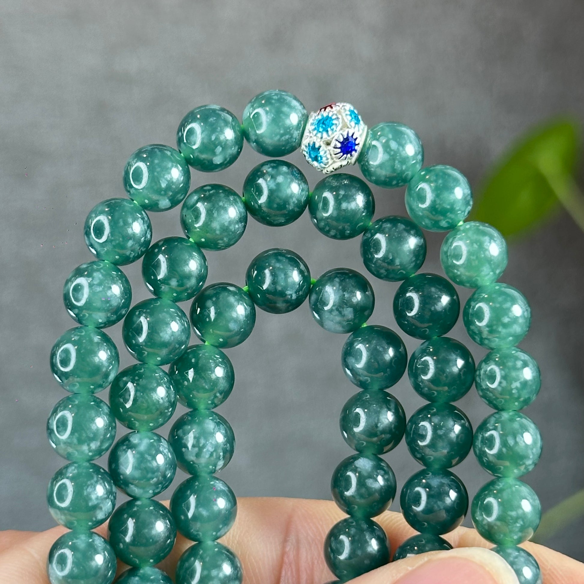 Water Green Semi-Translucent Natural Jadeite Jade Necklace Size 7.8 mm
