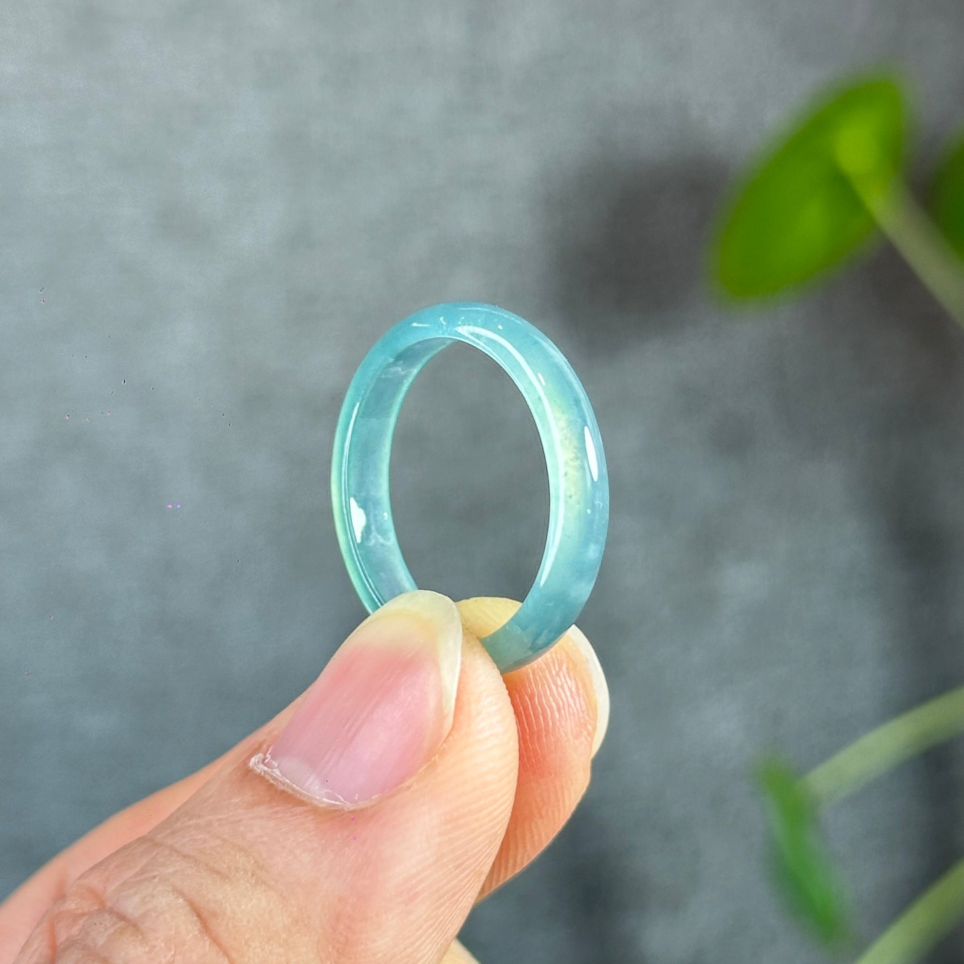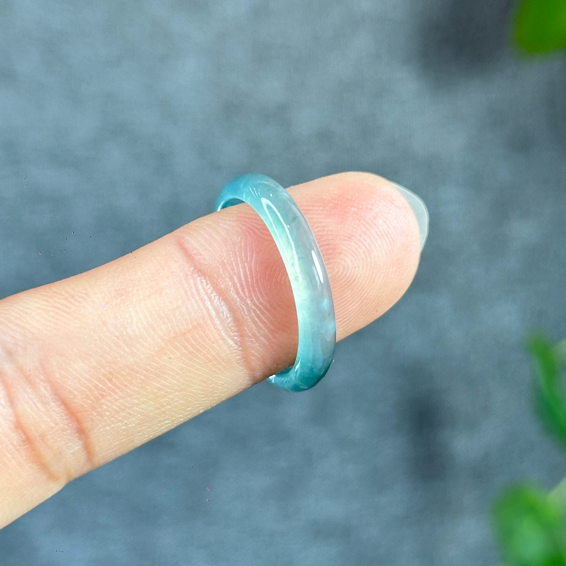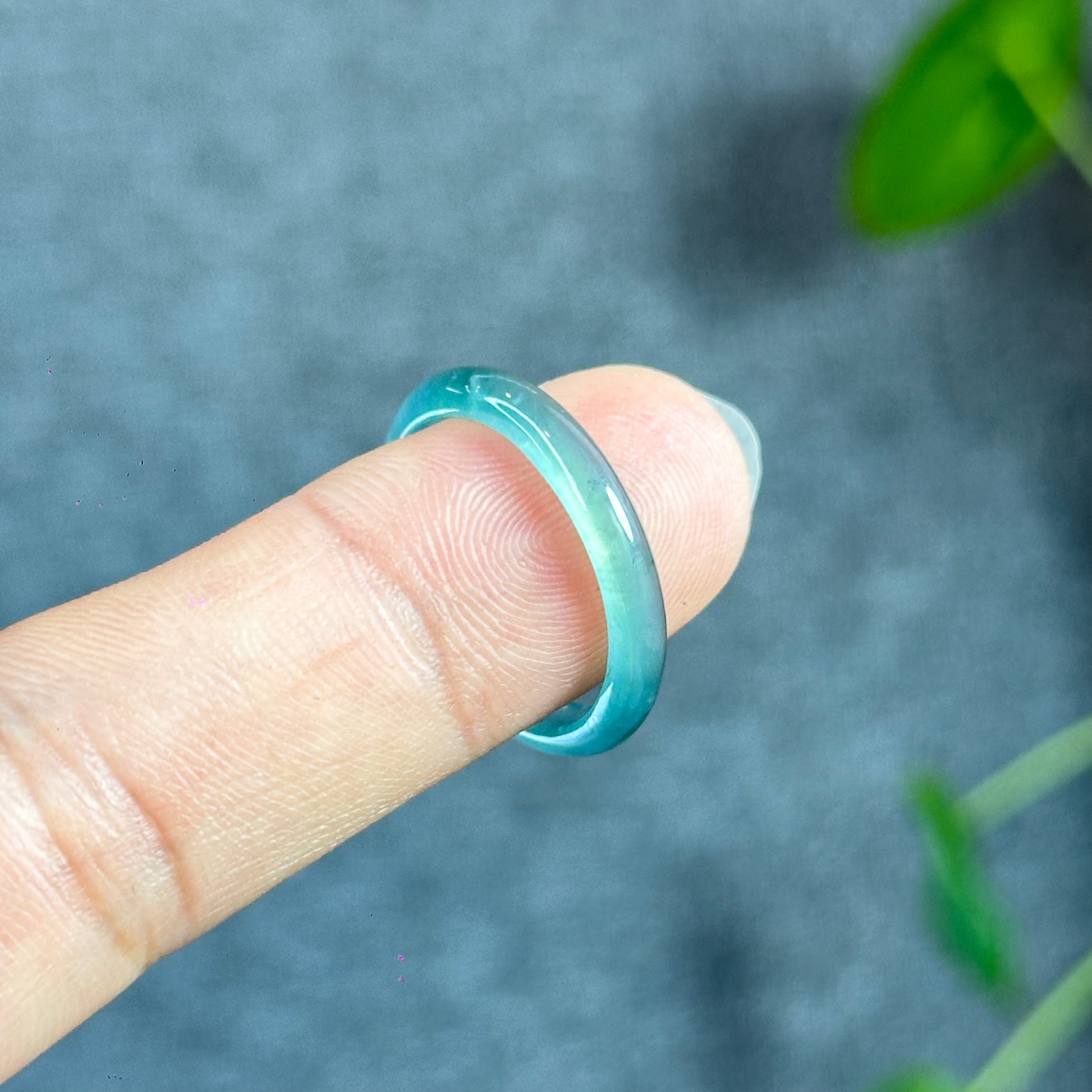 Icy Translucent Water Green Natural Jadeite Jade VIP Ring Size 1.93
