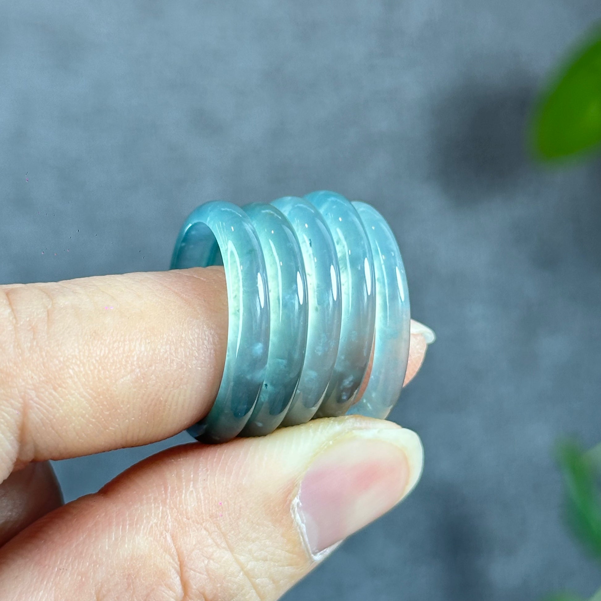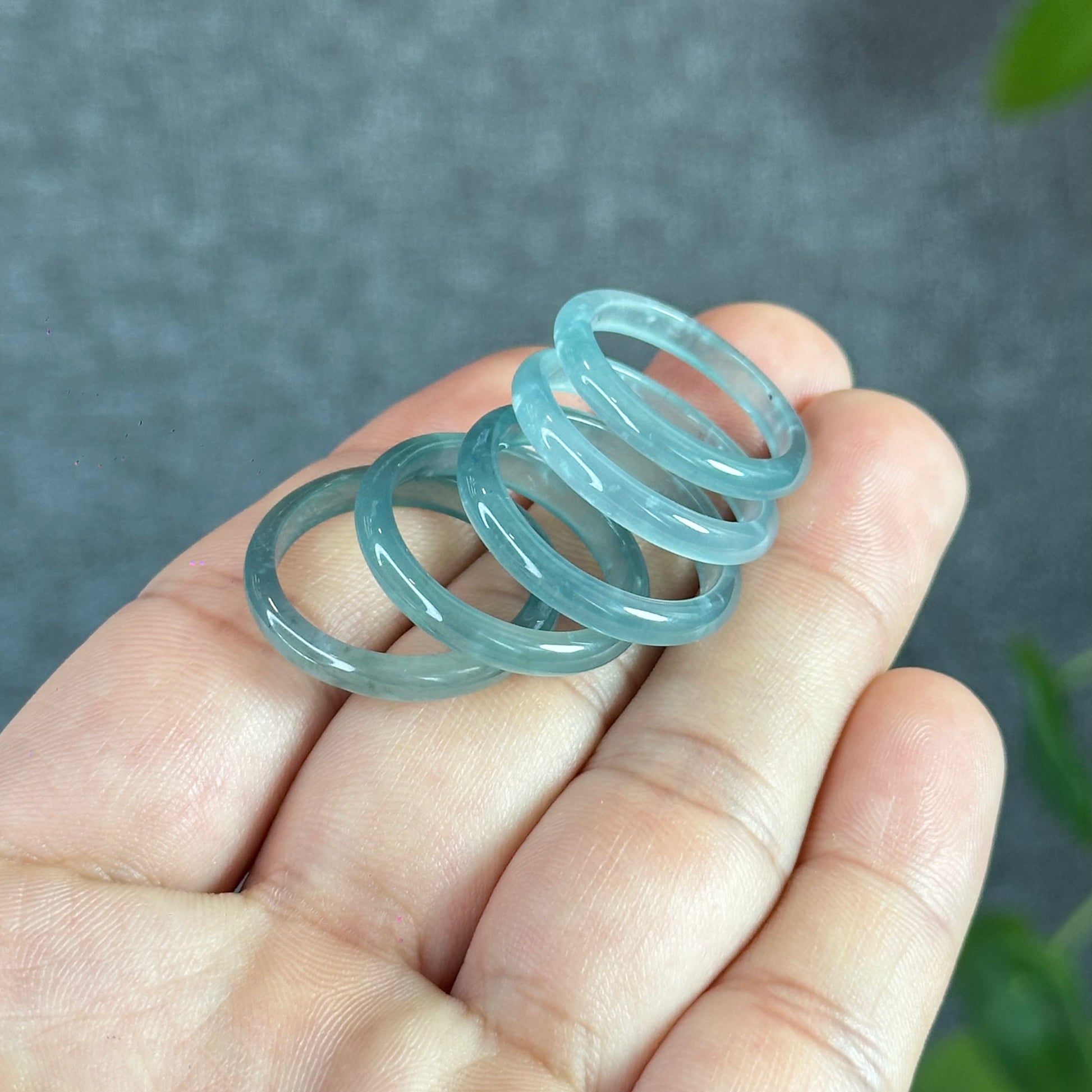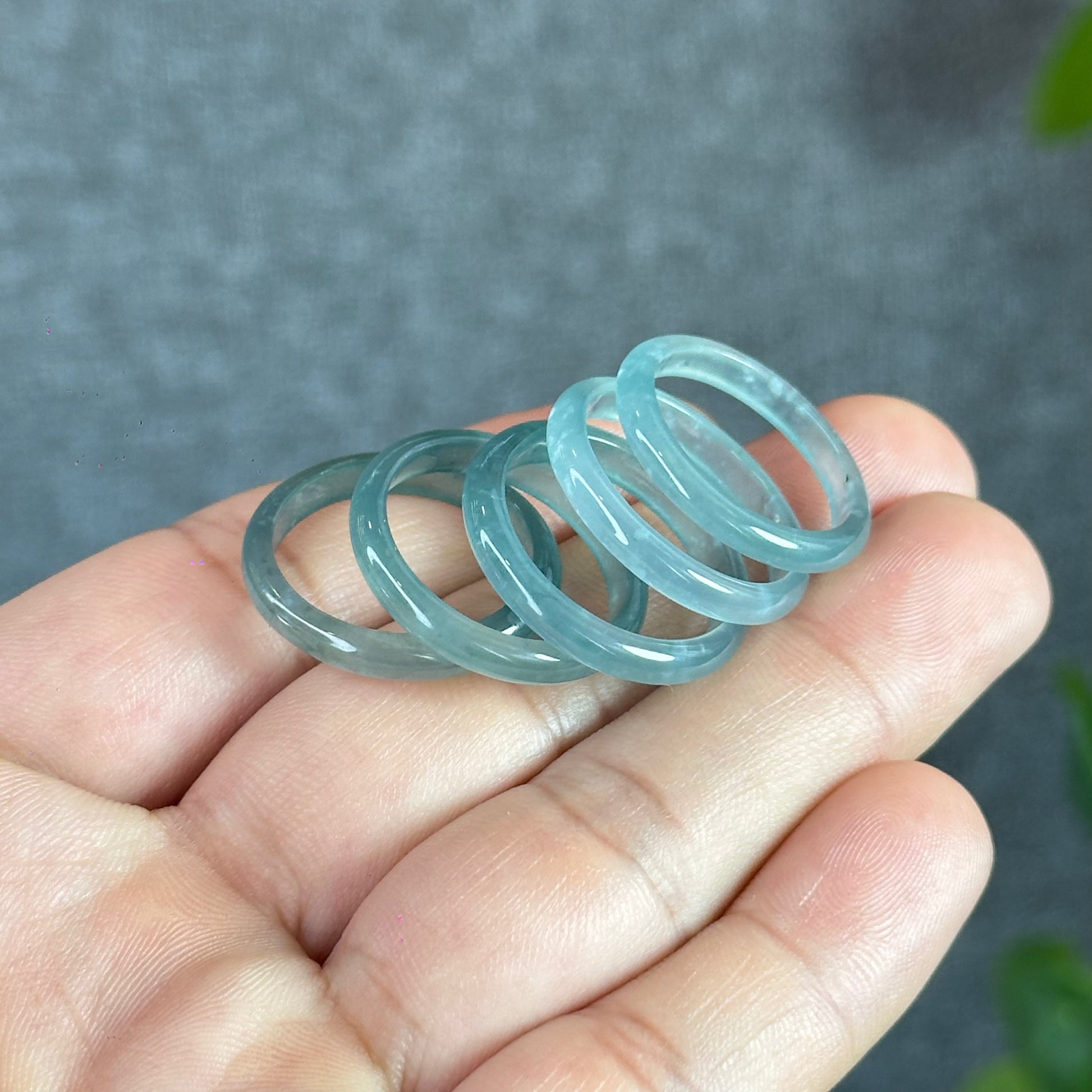 Icy Translucent Water Green Natural Jadeite Jade VIP Ring Size 1.93