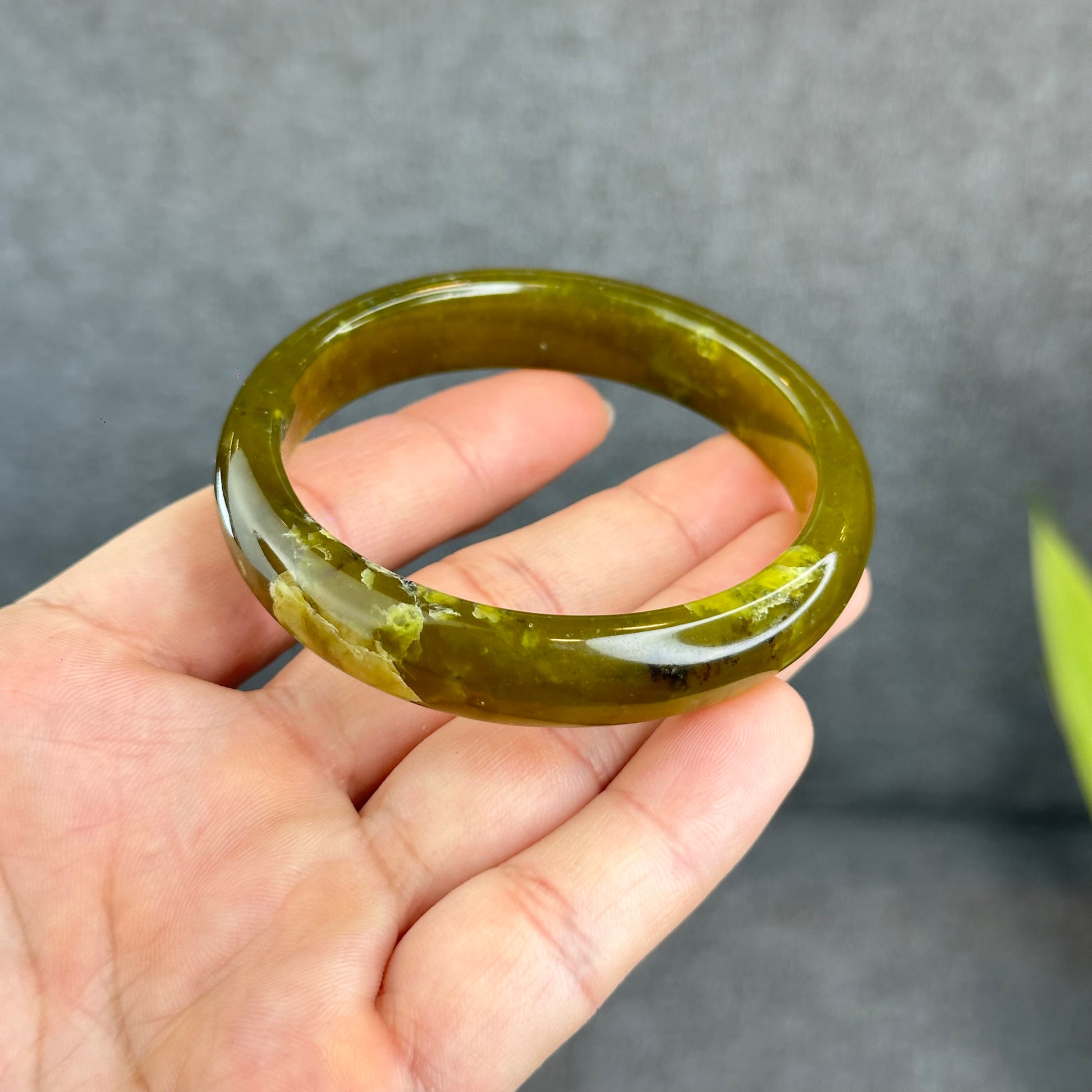 Natural Serpentine Bangle Leaf Style Size 57 mm