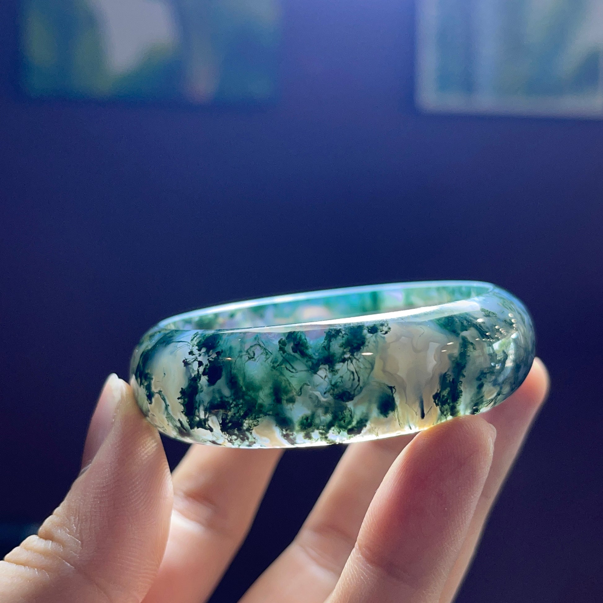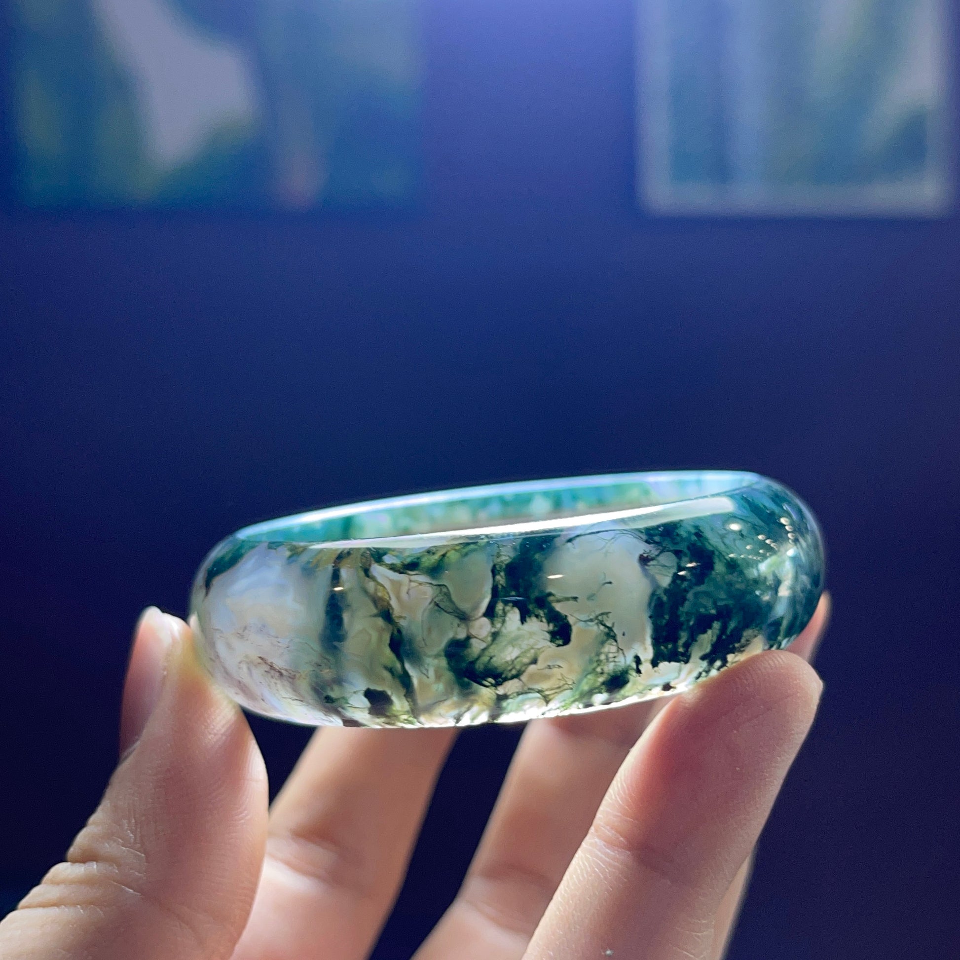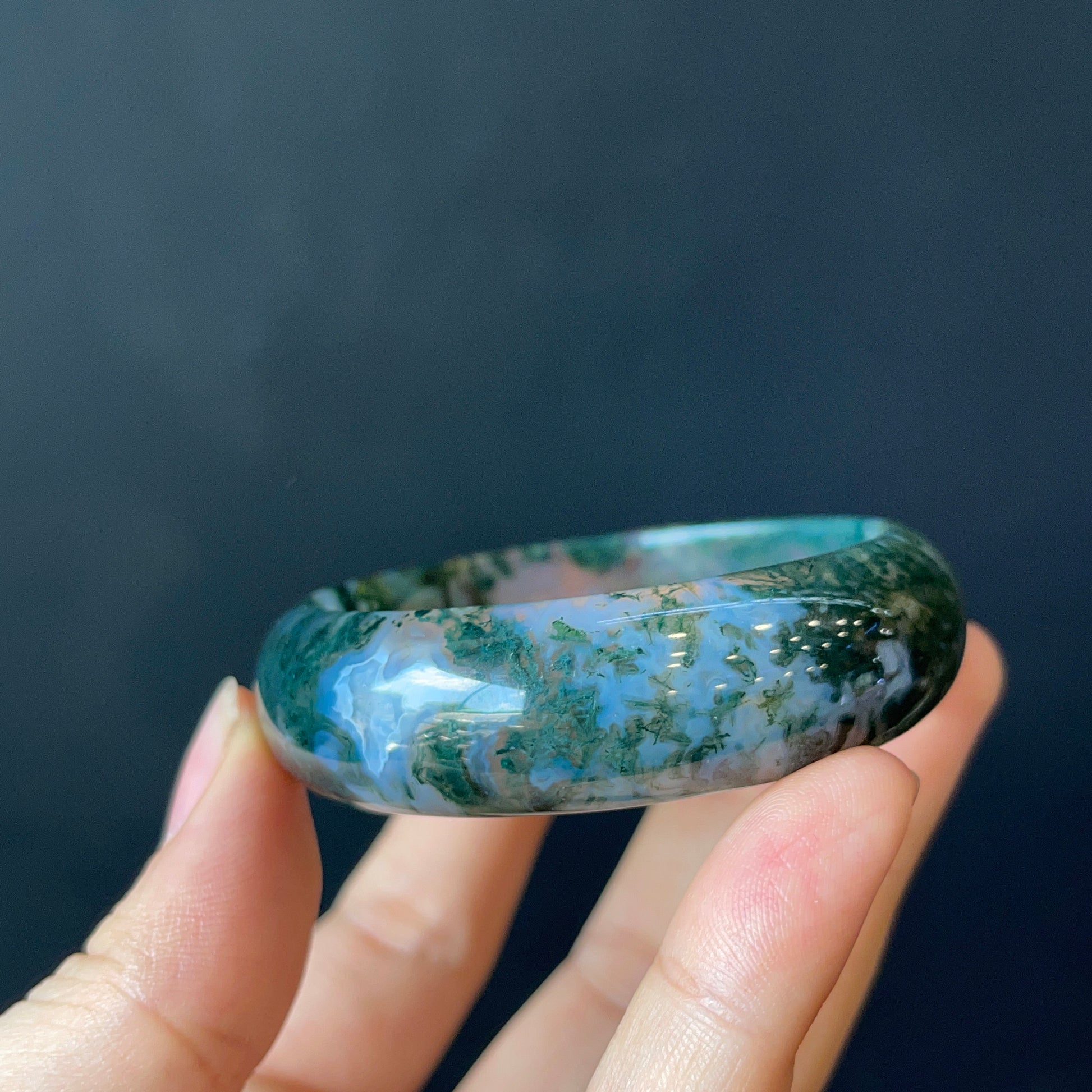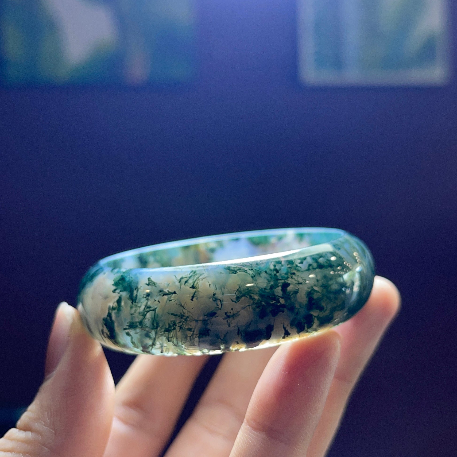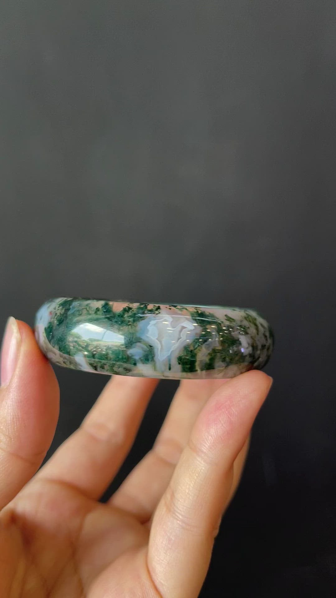 Natural Moss Agate Bangle Leaf Style Size 50 mm