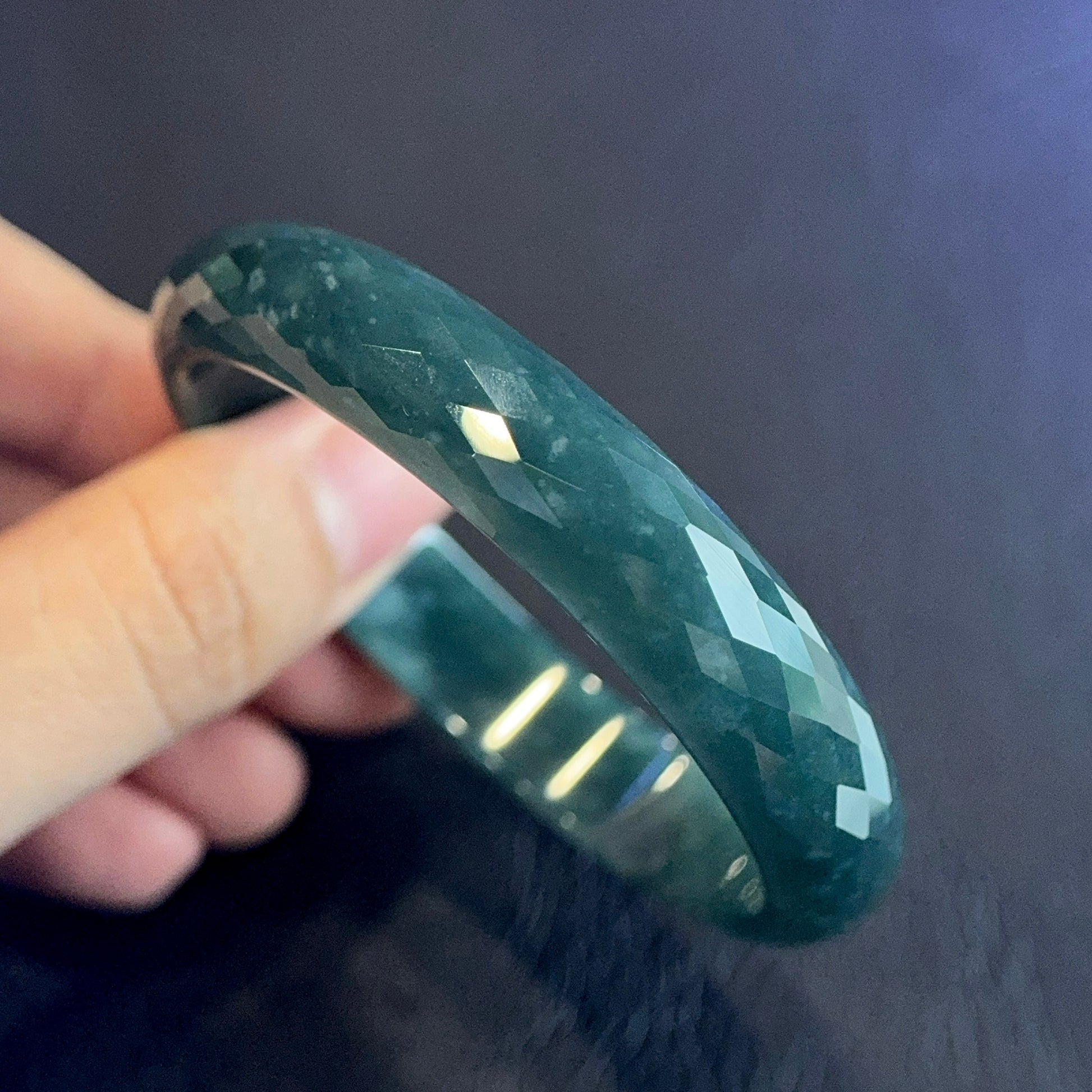 Faceted Natural Jadeite Jade Bangle Leaf Style Size 55 mm