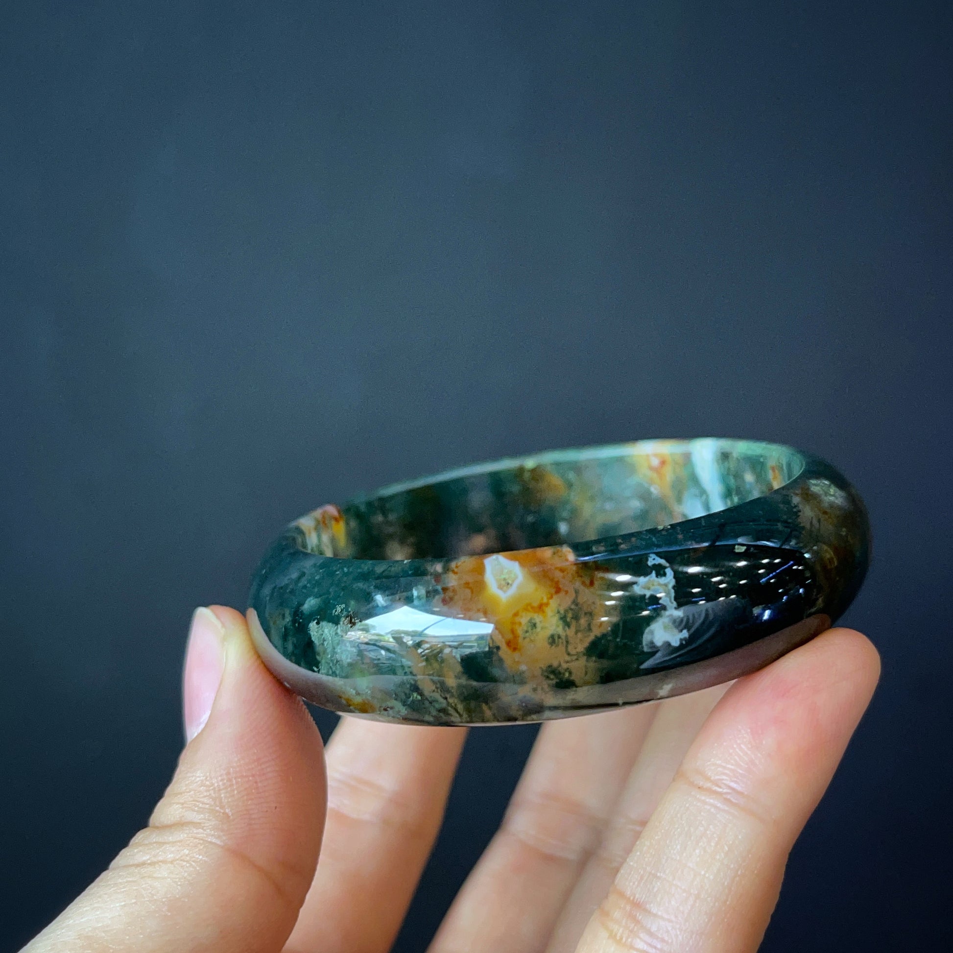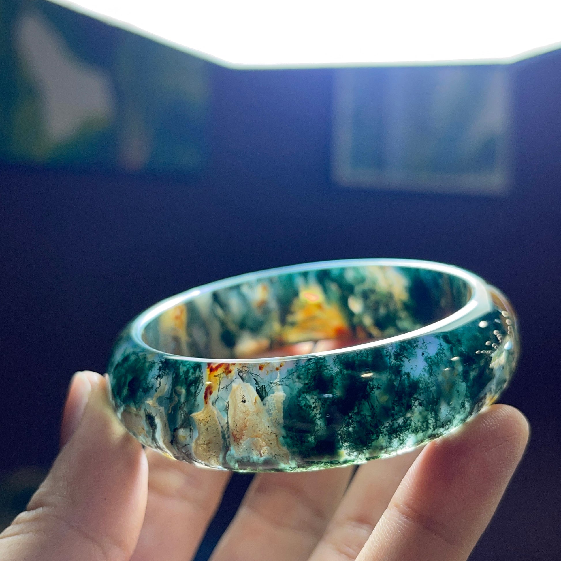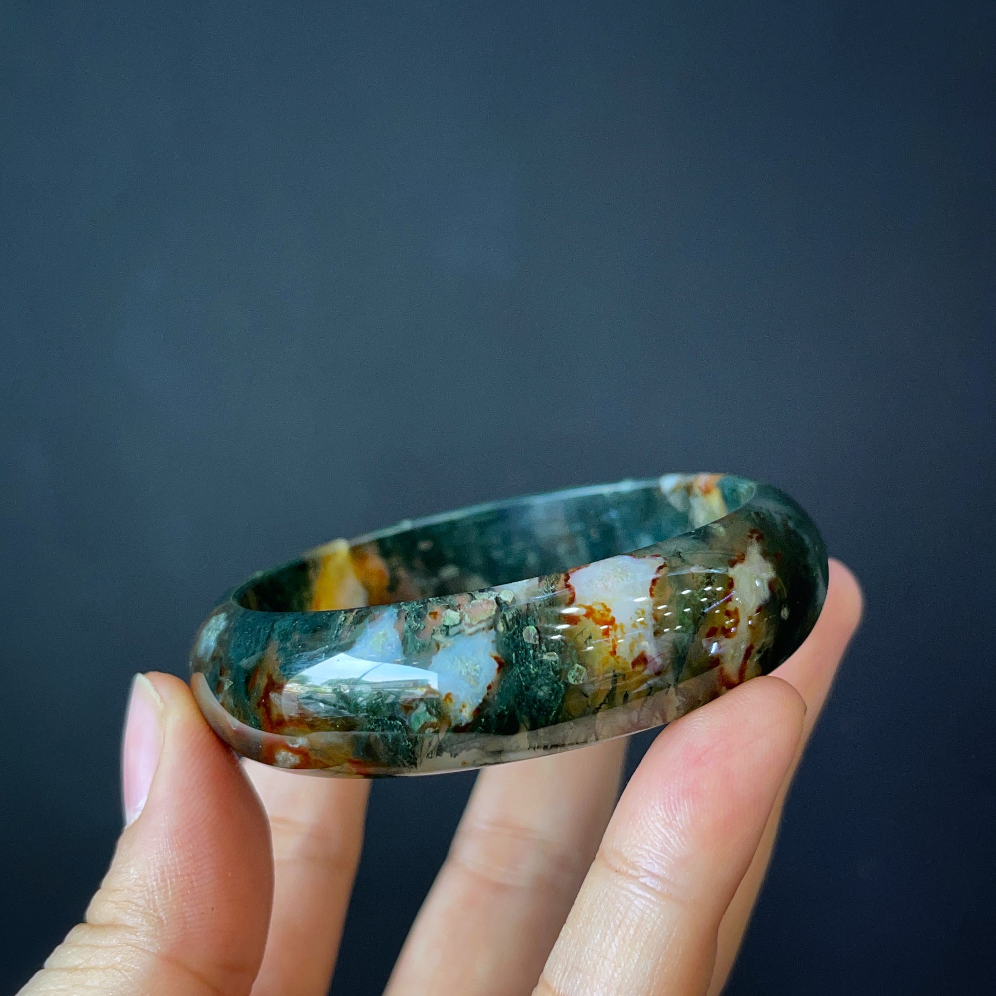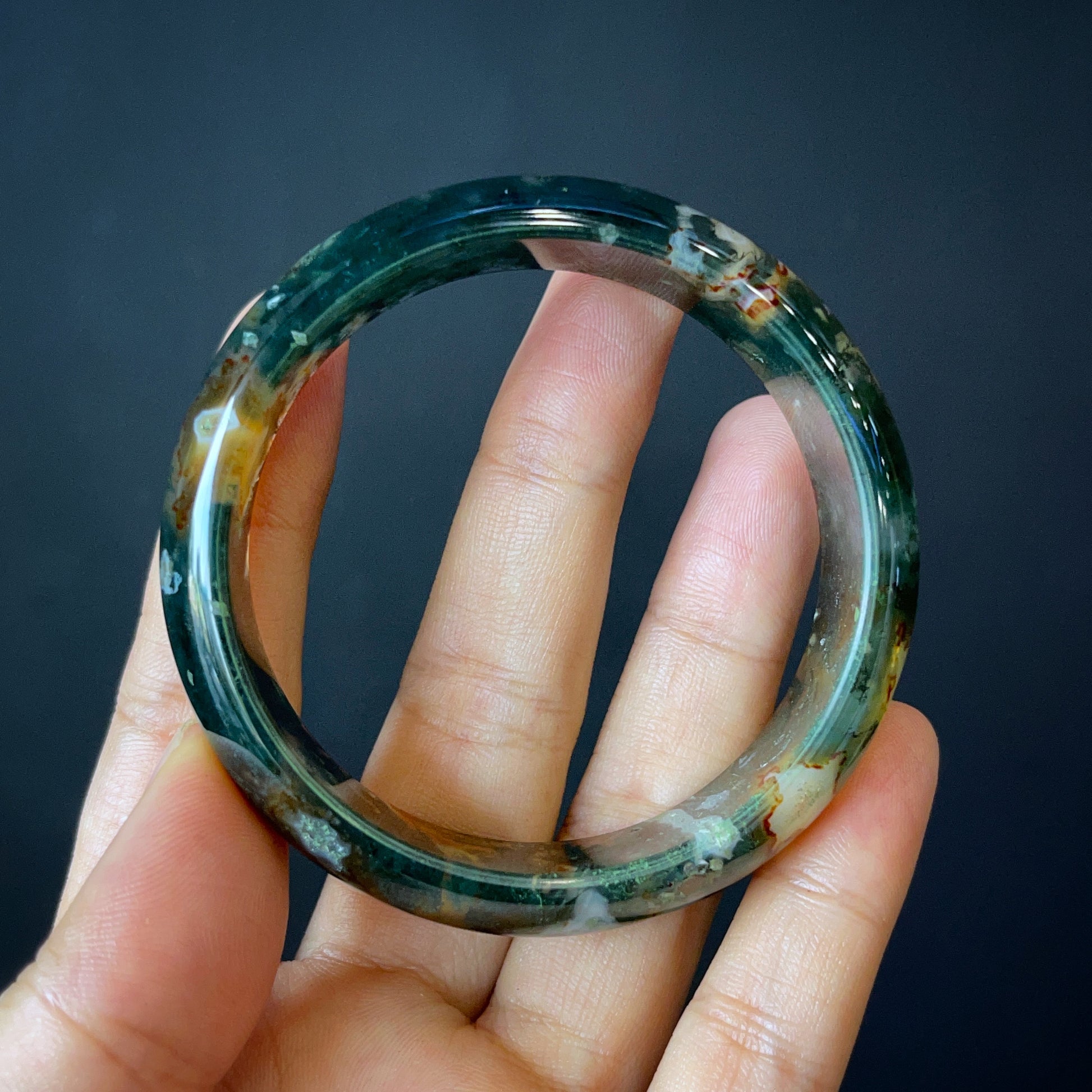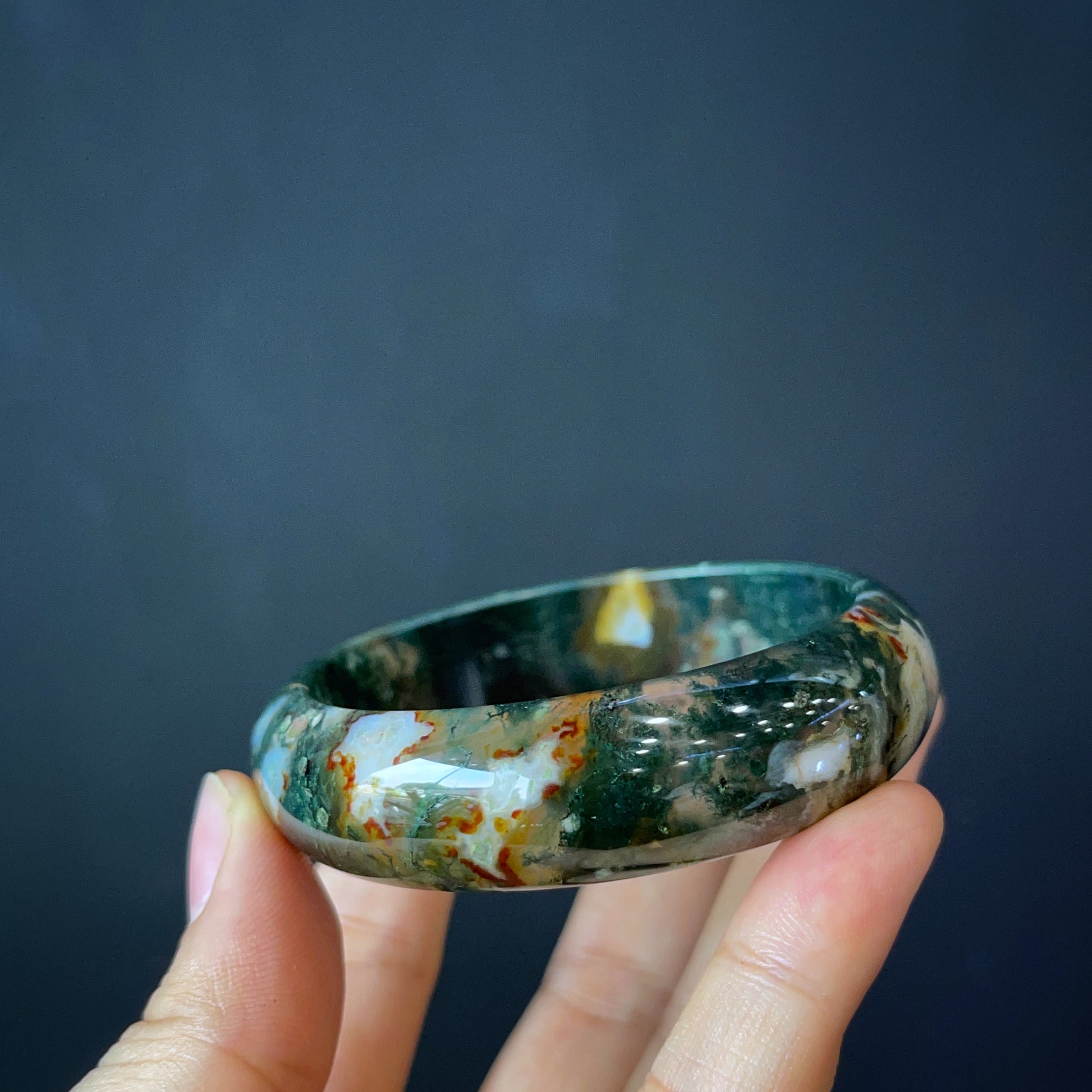 Natural Moss Agate Bangle Leaf Style Size 54 mm