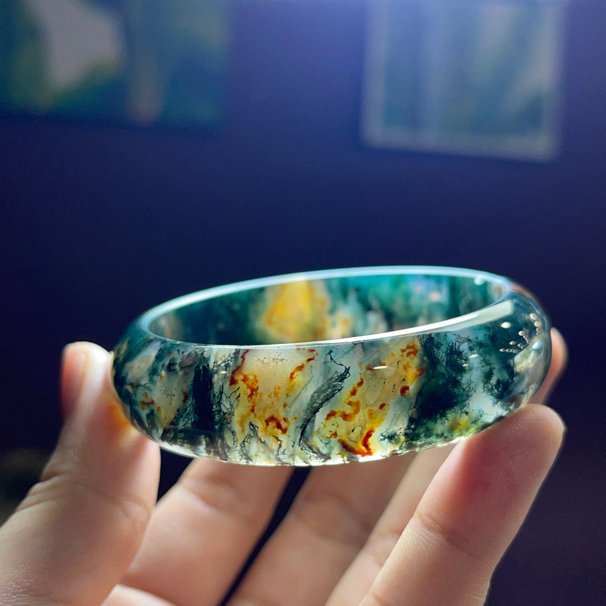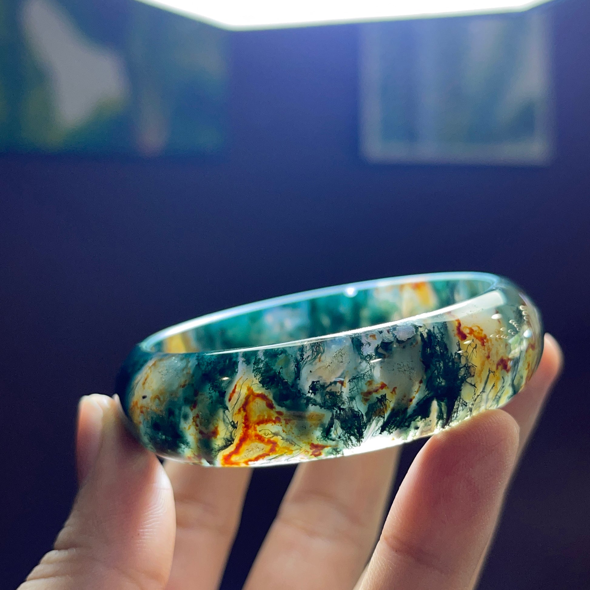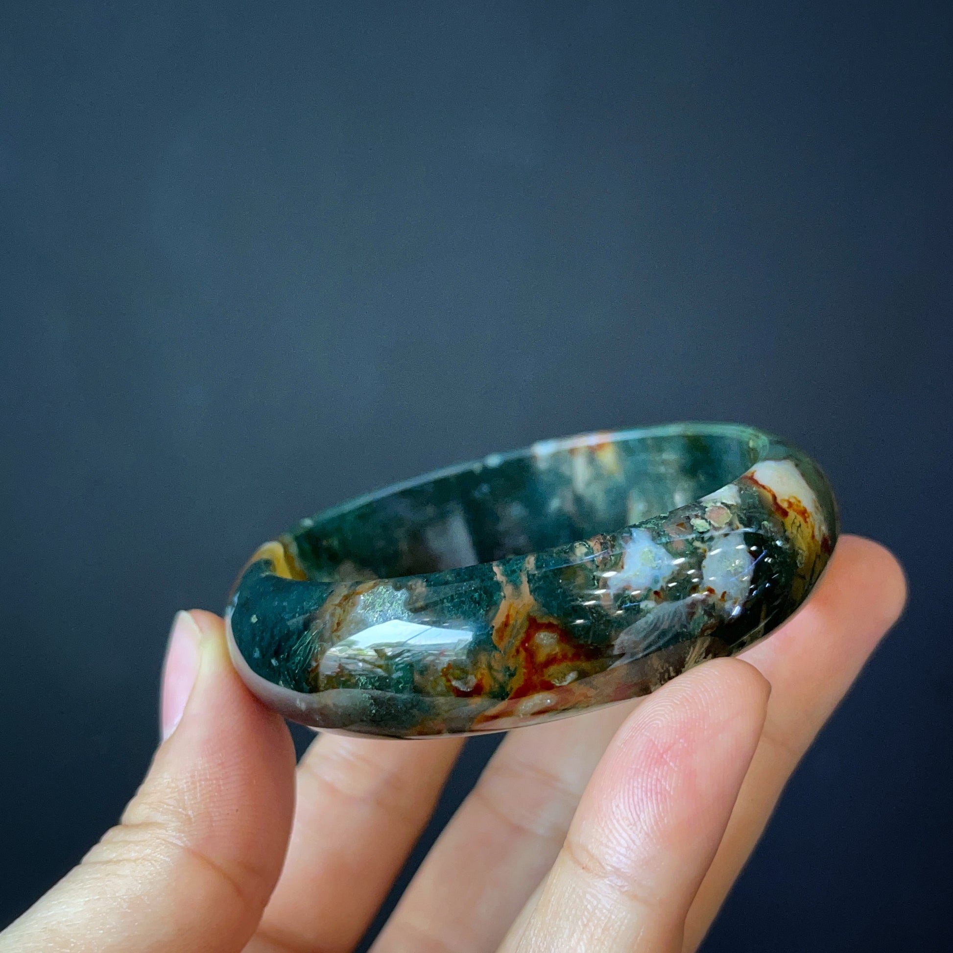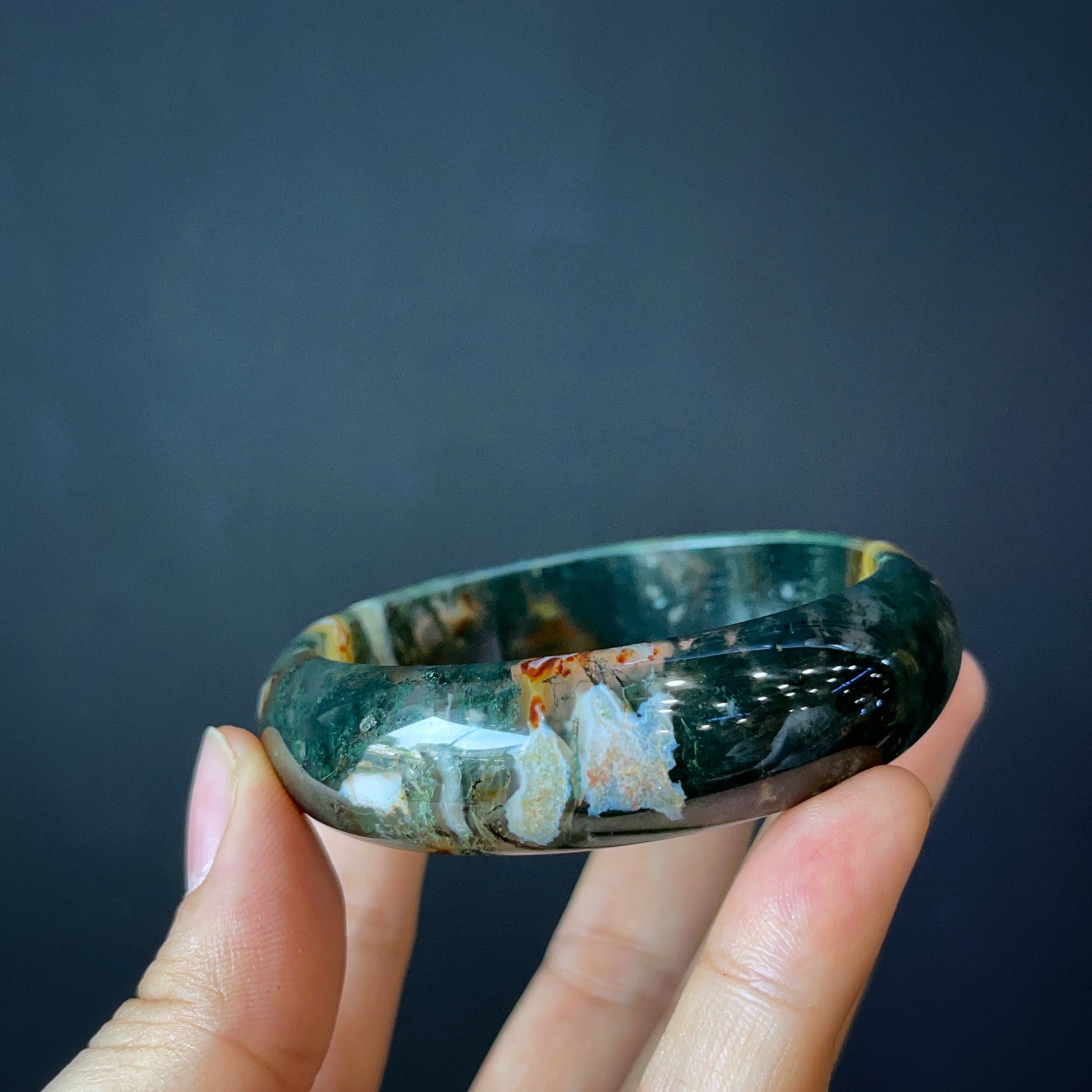 Natural Moss Agate Bangle Leaf Style Size 54 mm