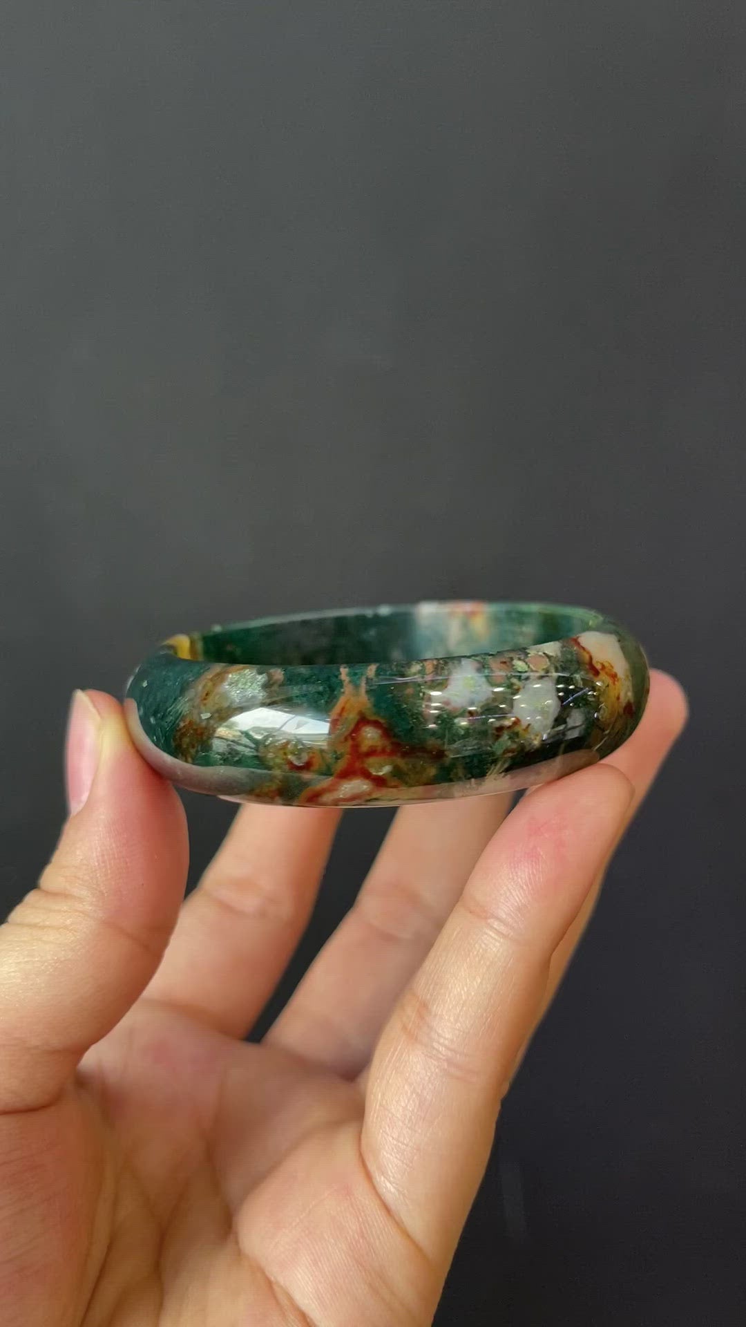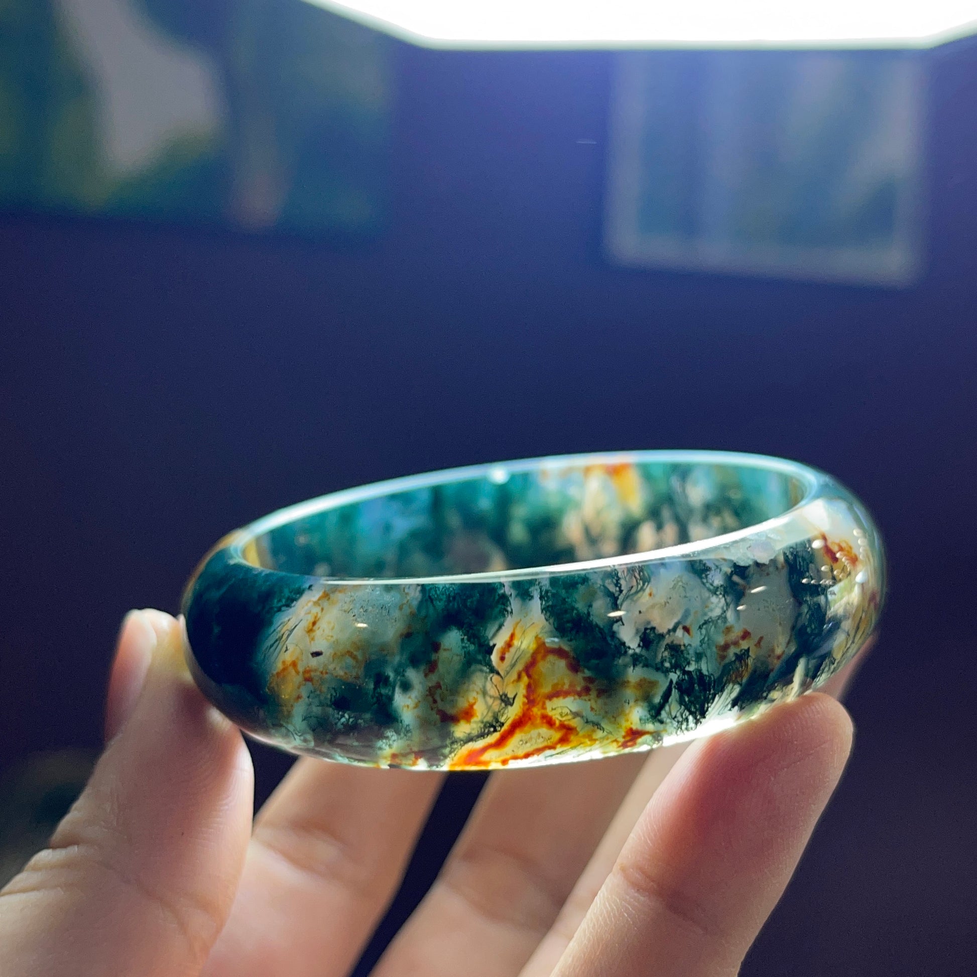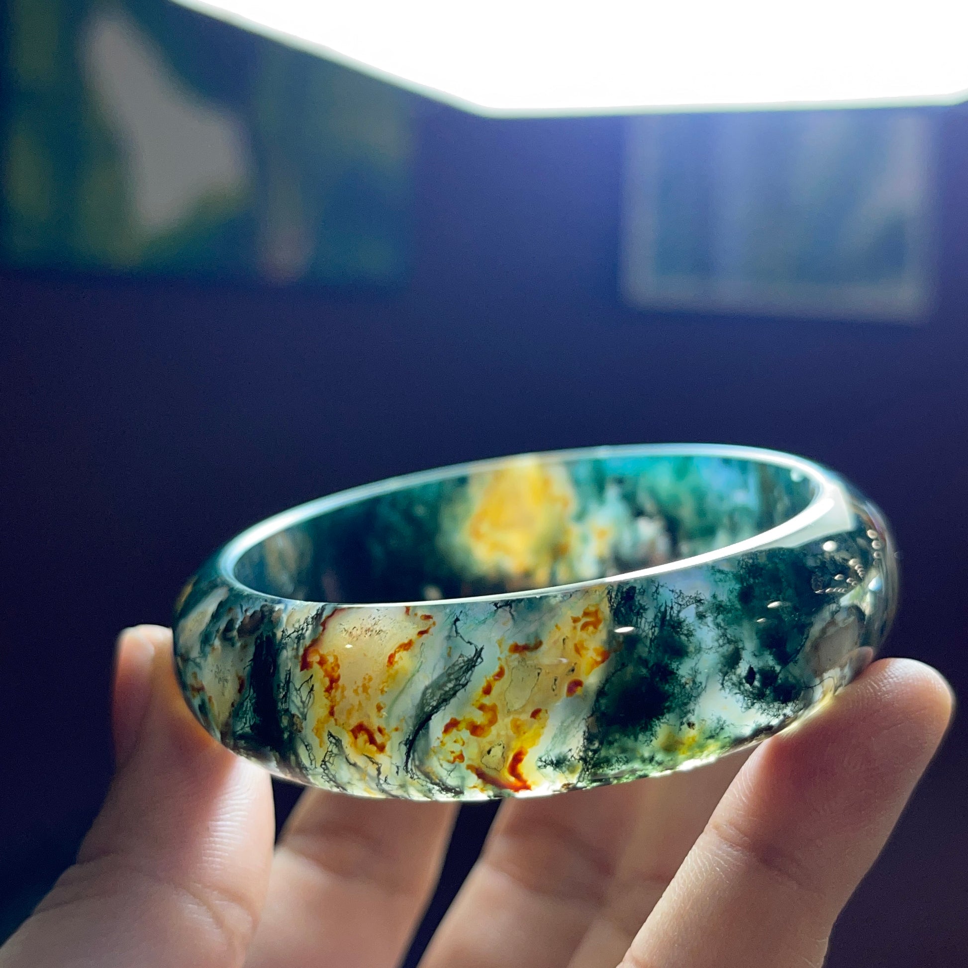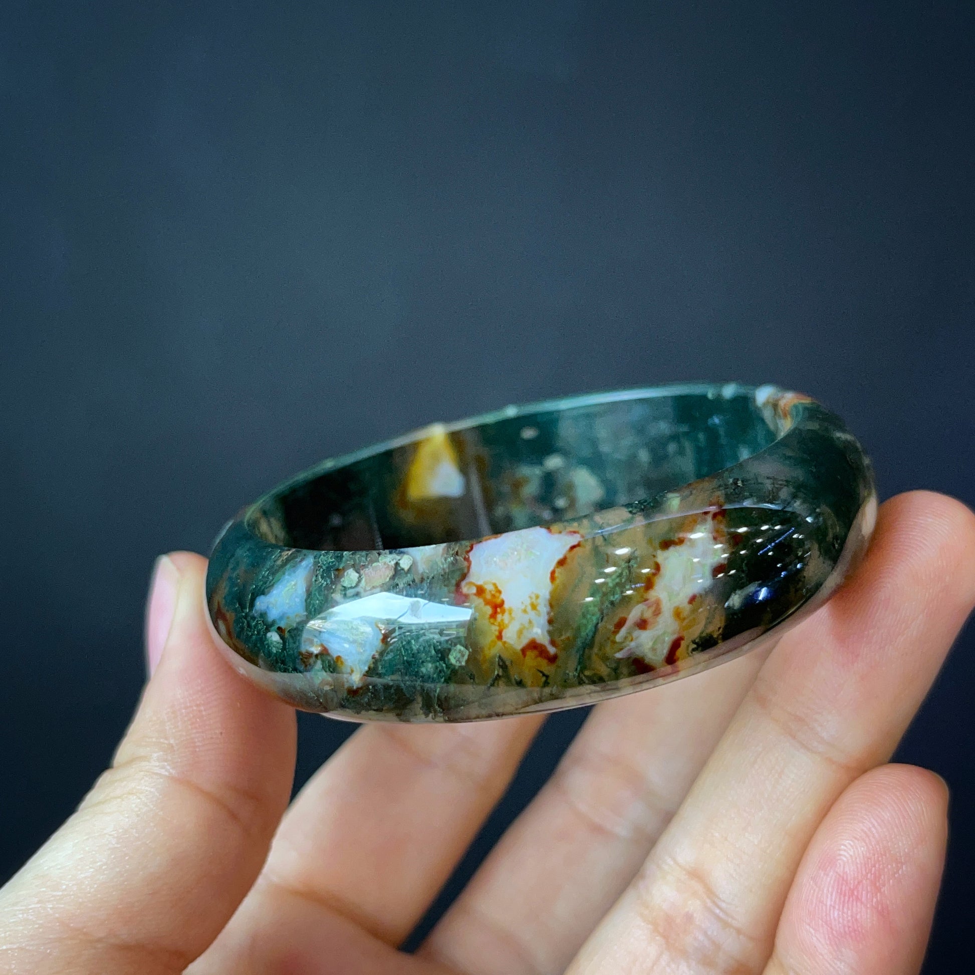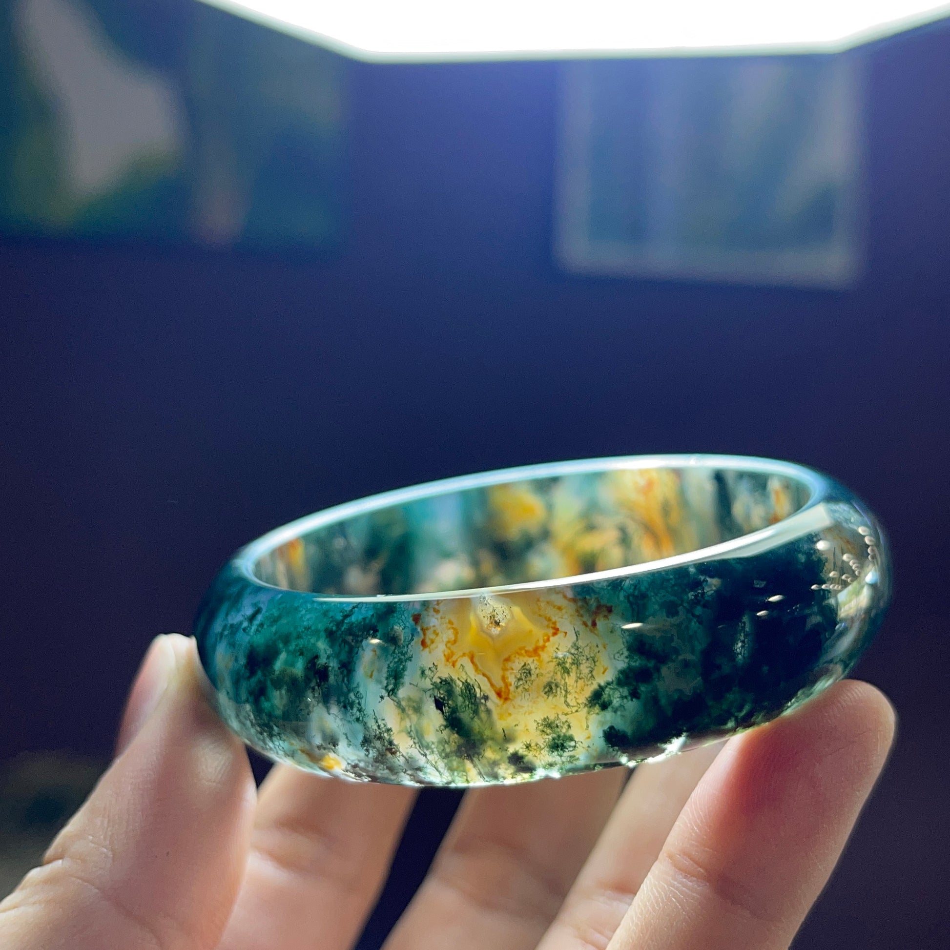 Natural Moss Agate Bangle Leaf Style Size 54 mm