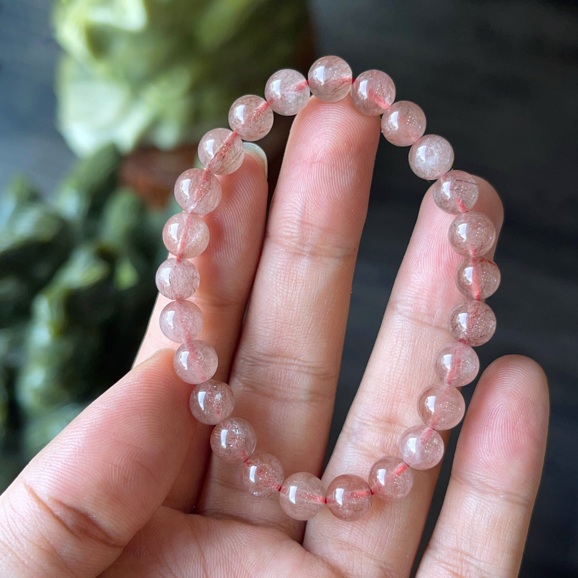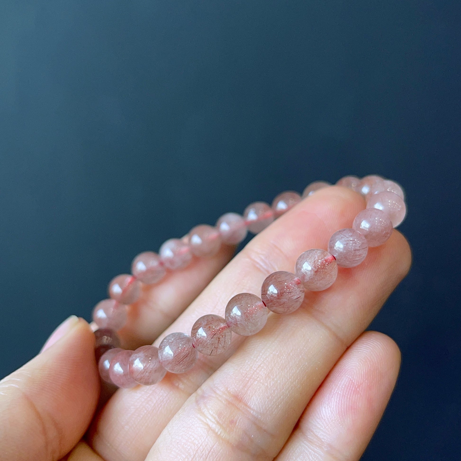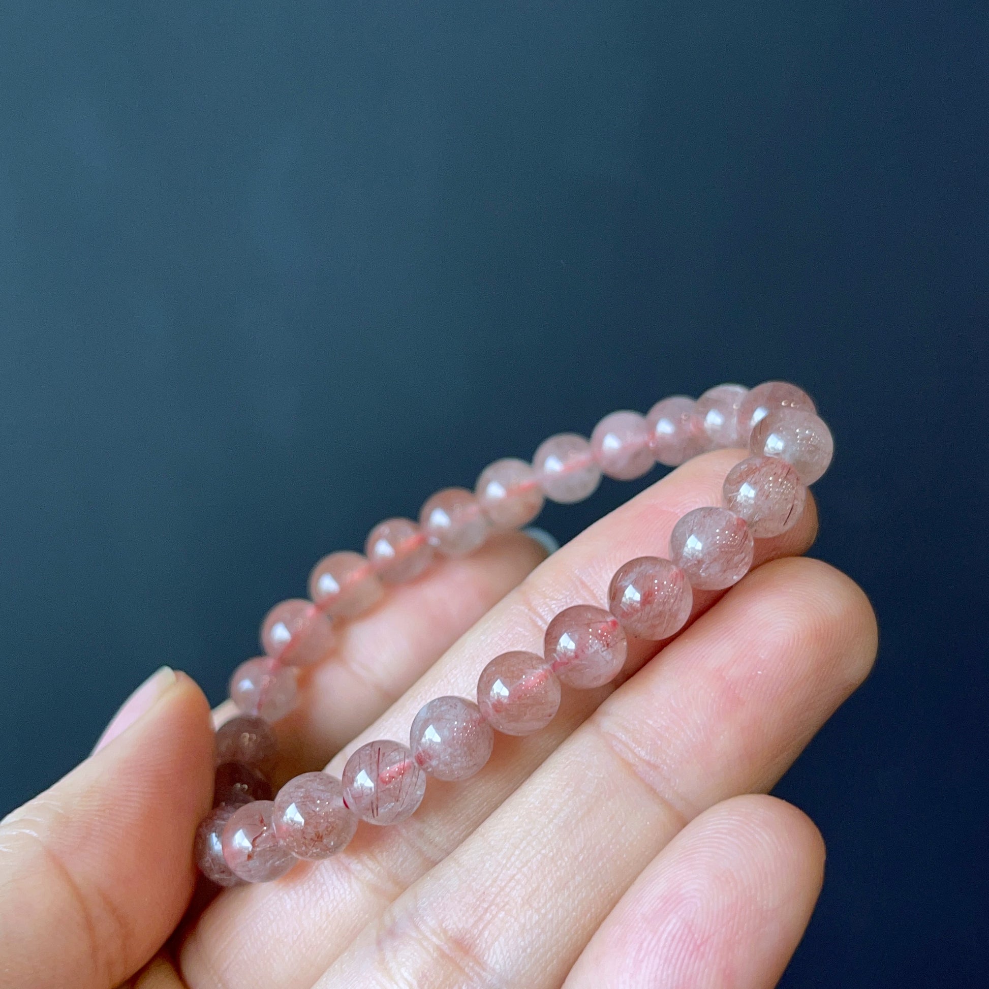 Natural Pink Rutilated Quartz Bracelet Size 7 mm