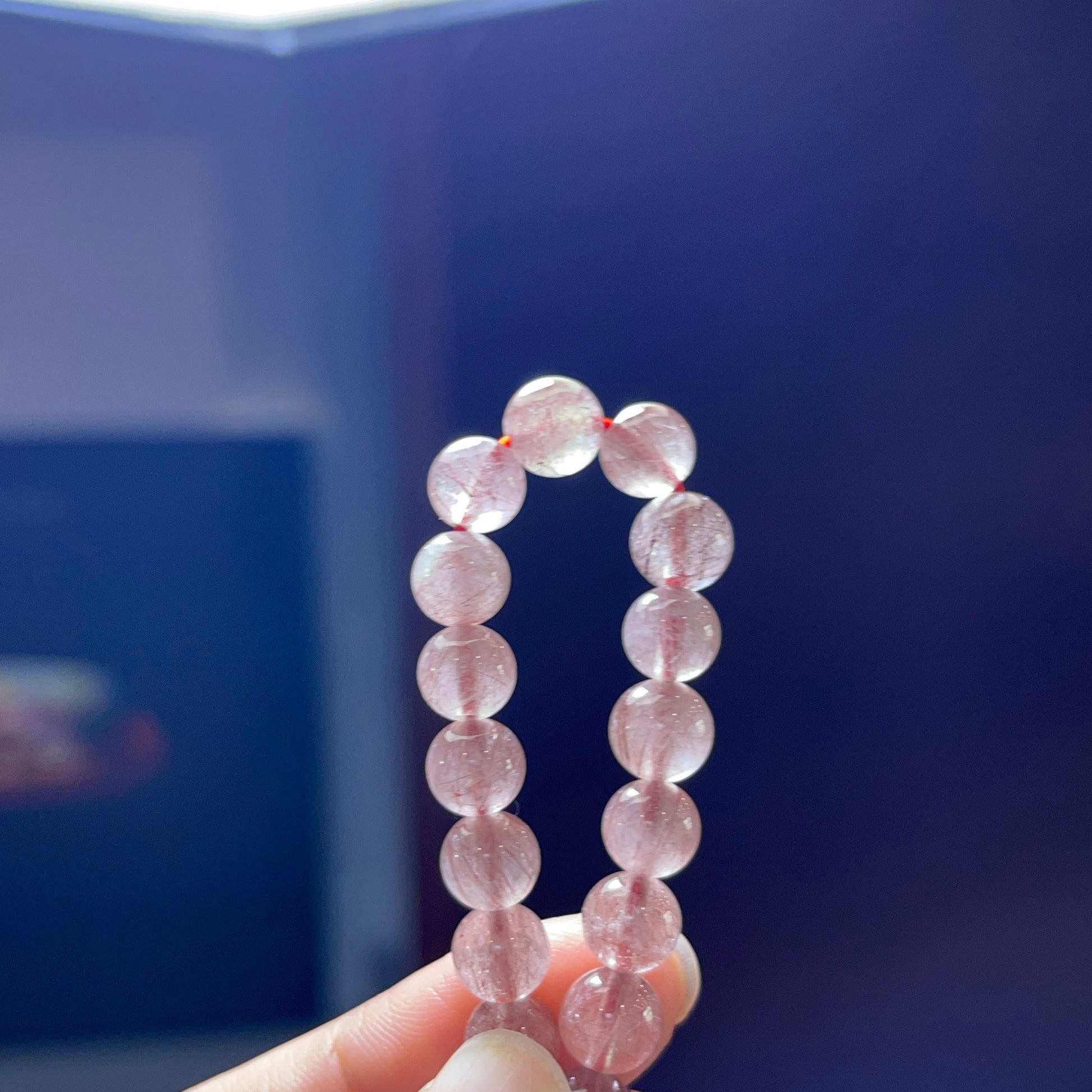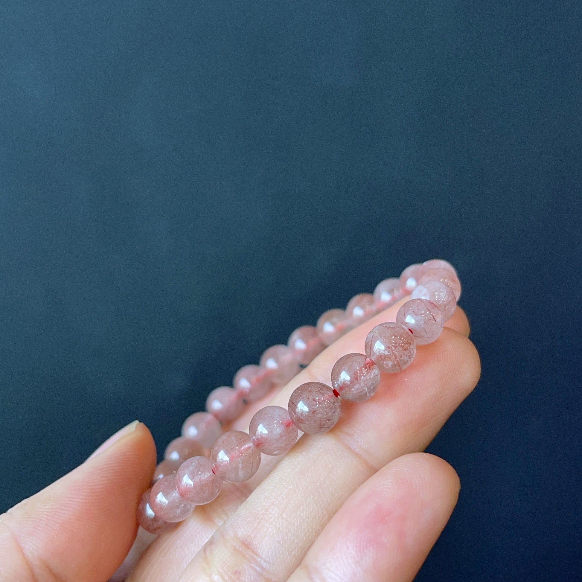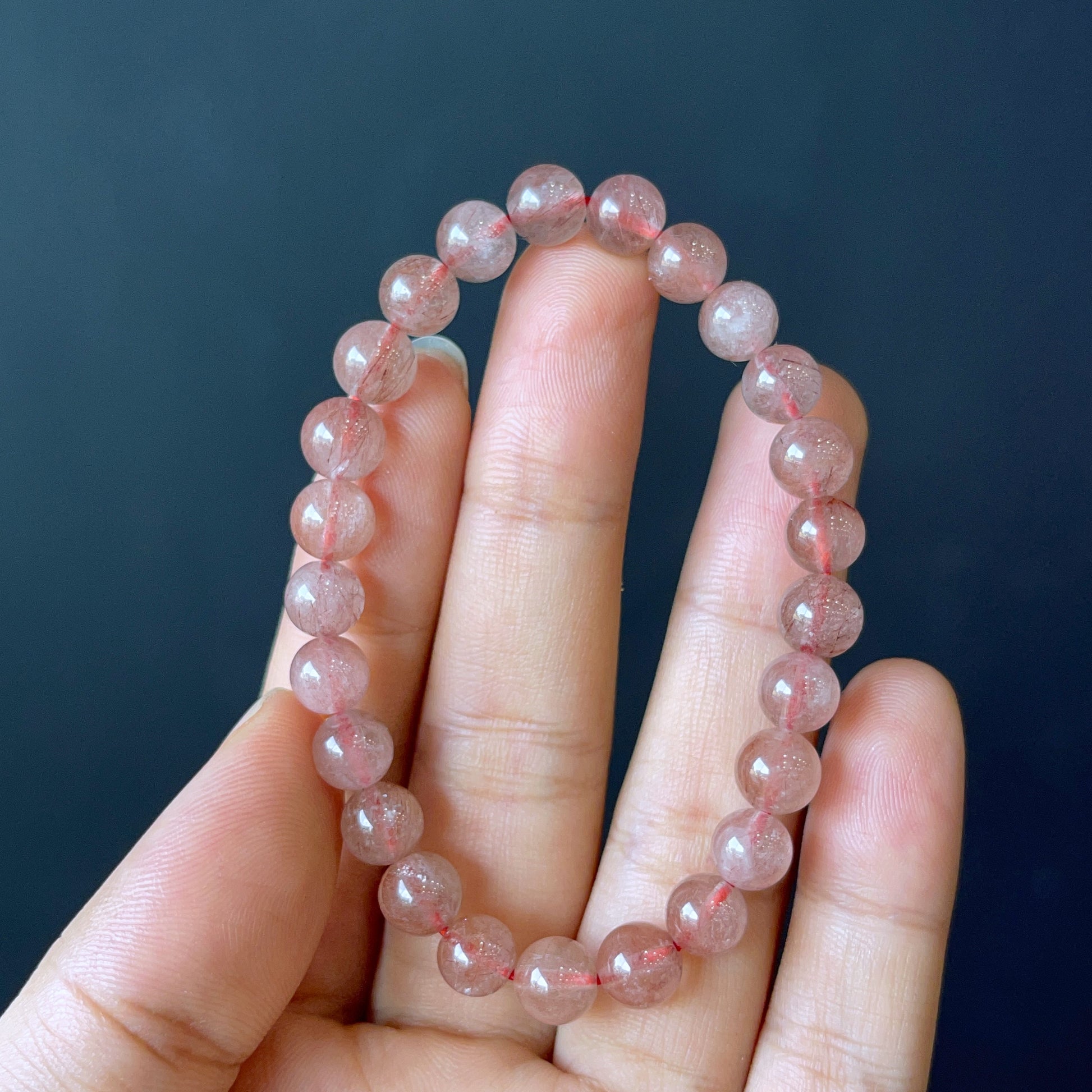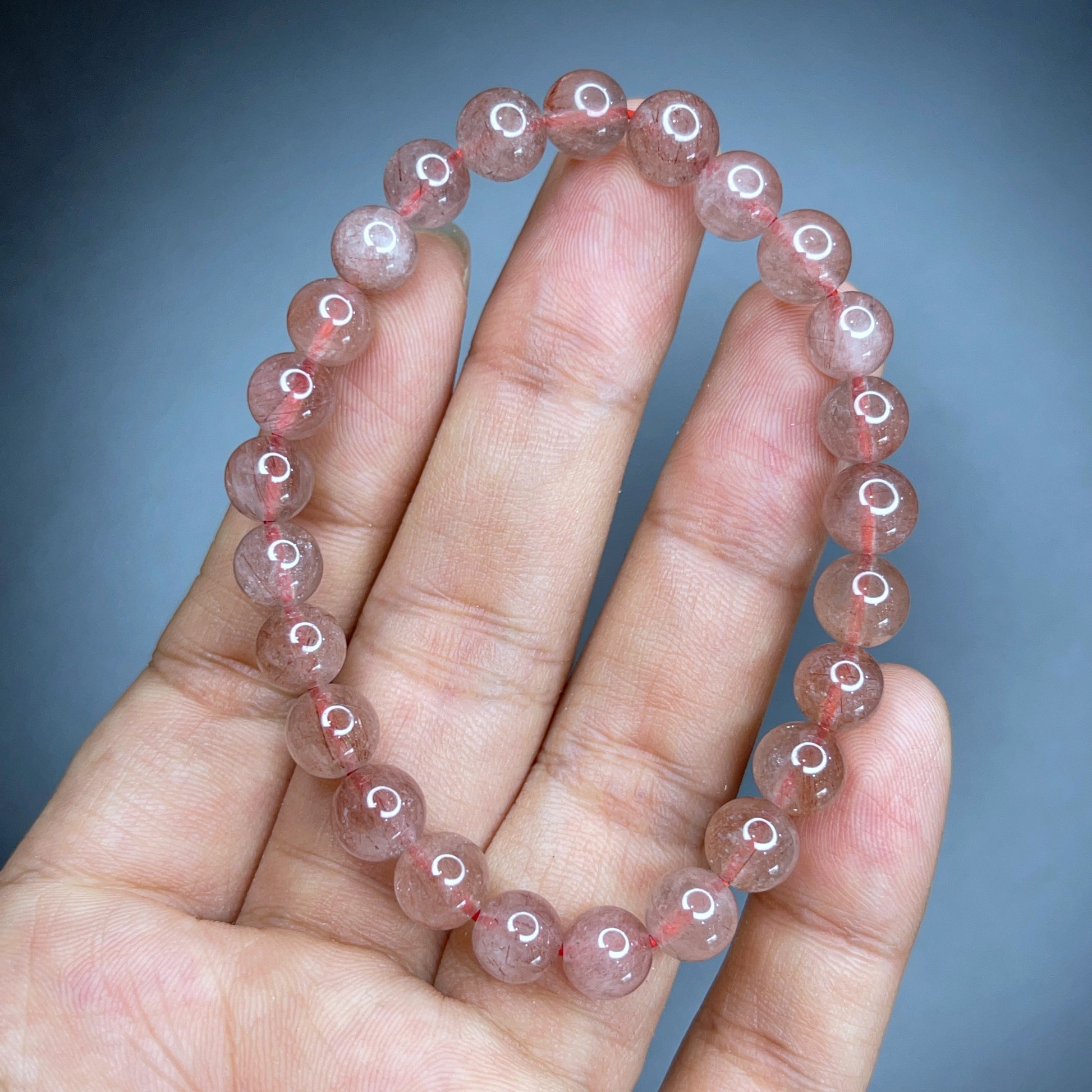 Natural Pink Rutilated Quartz Bracelet Size 7 mm
