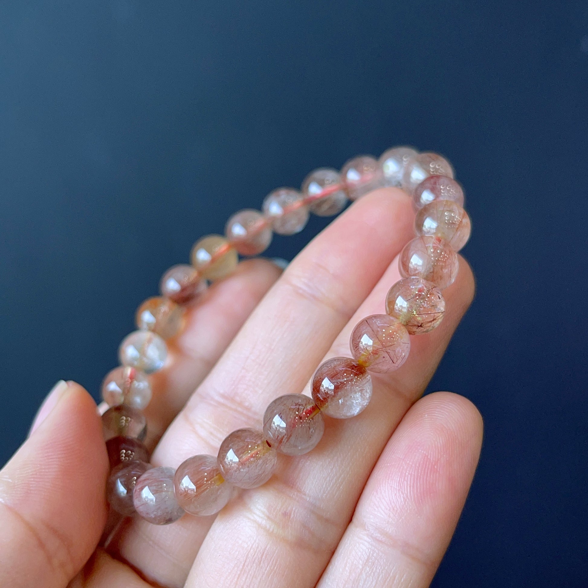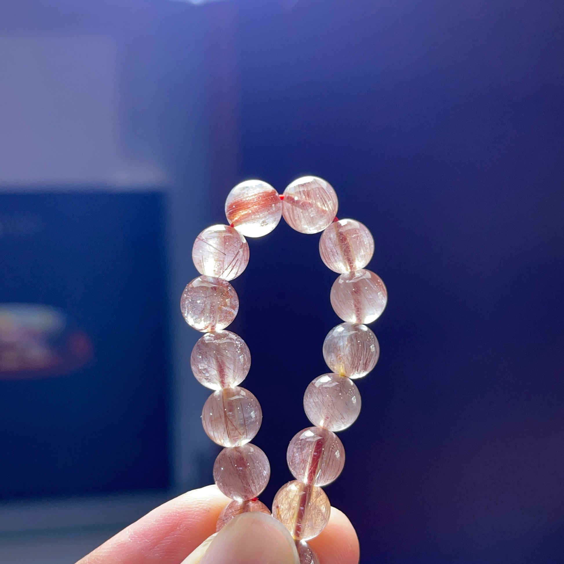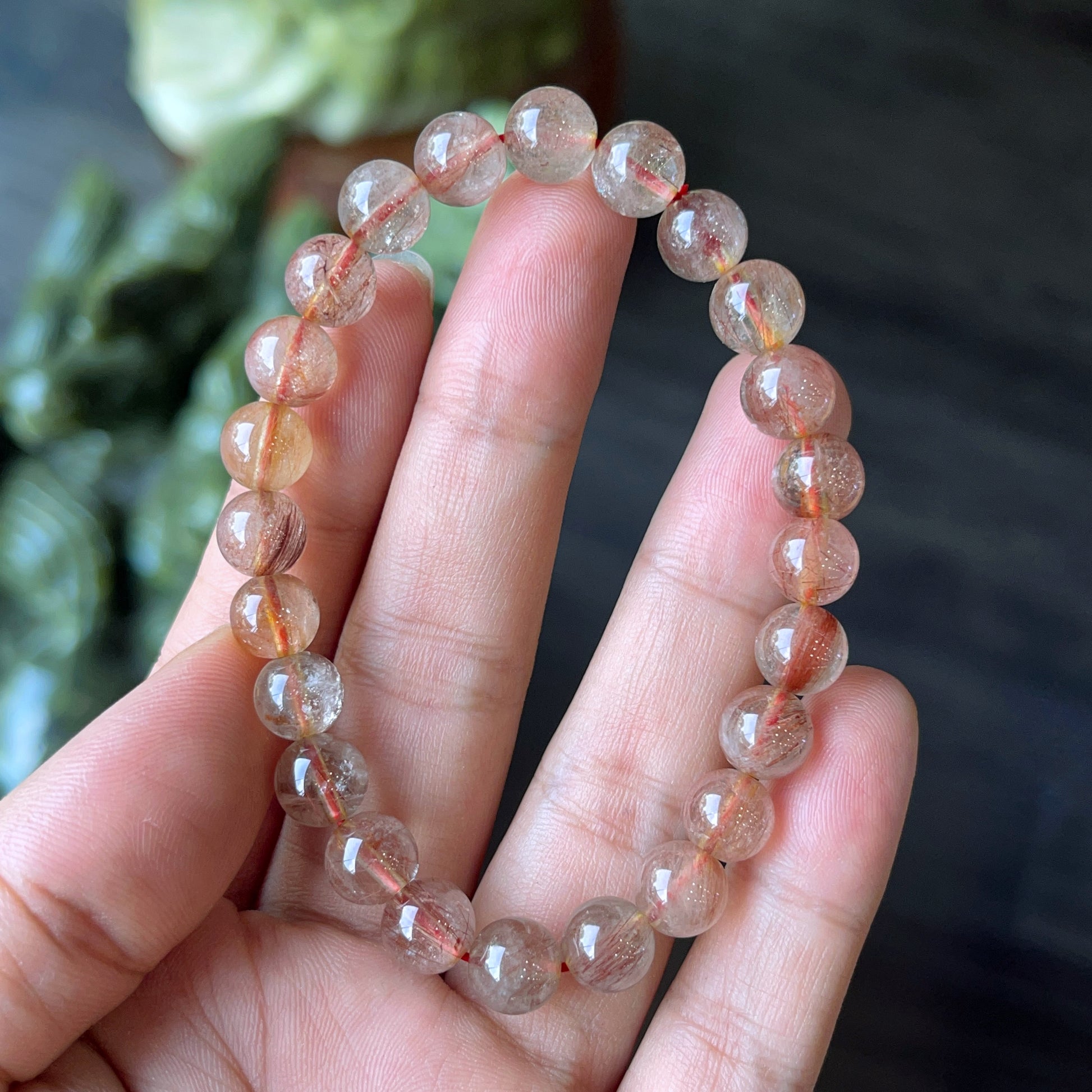 Natural Pink Rutilated Quartz Bracelet Size 8 mm