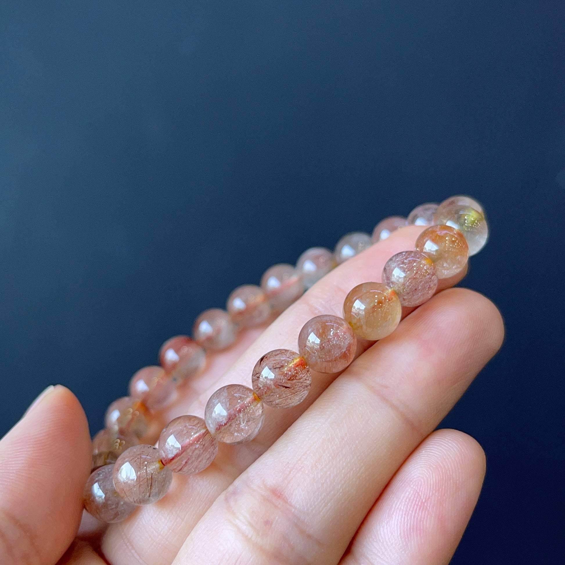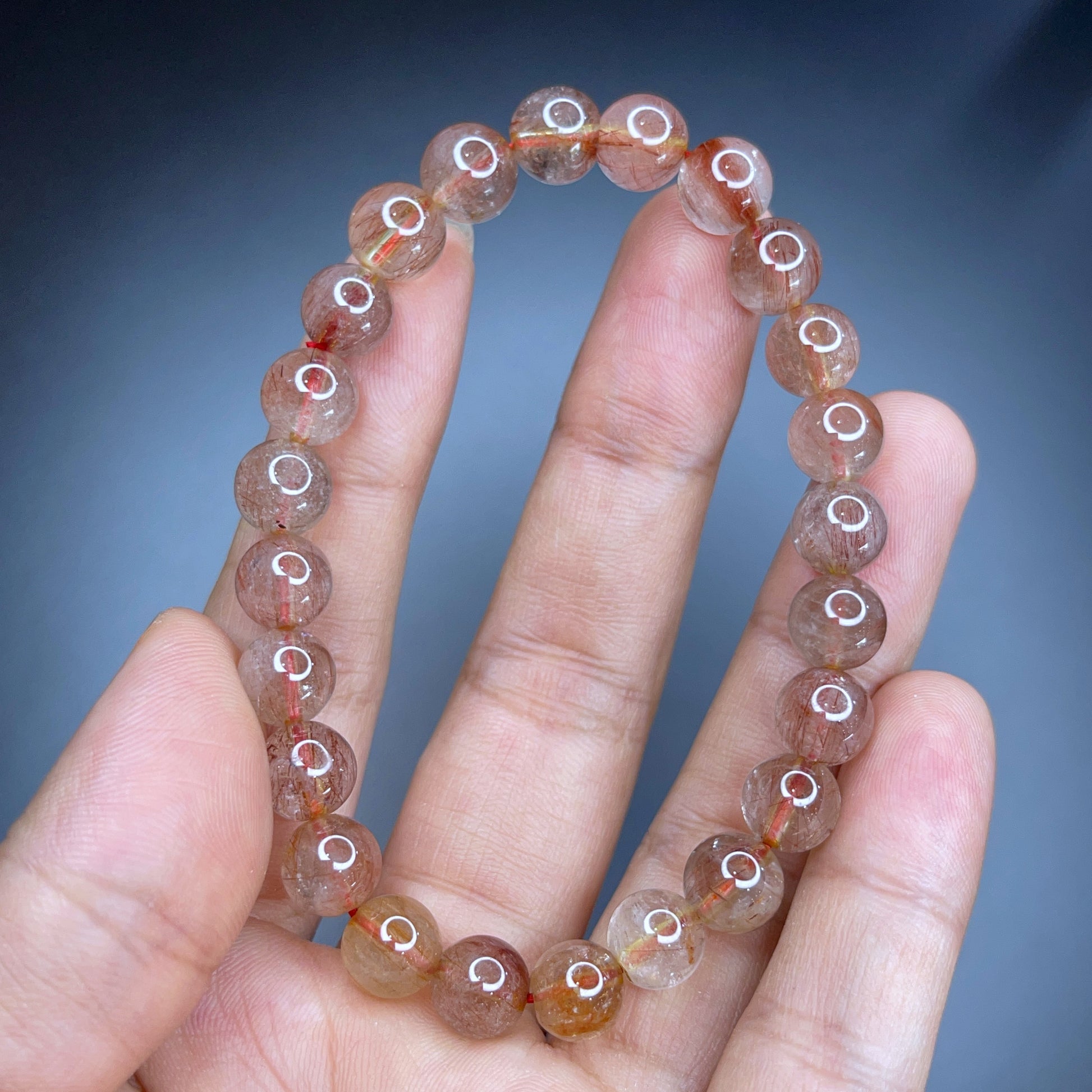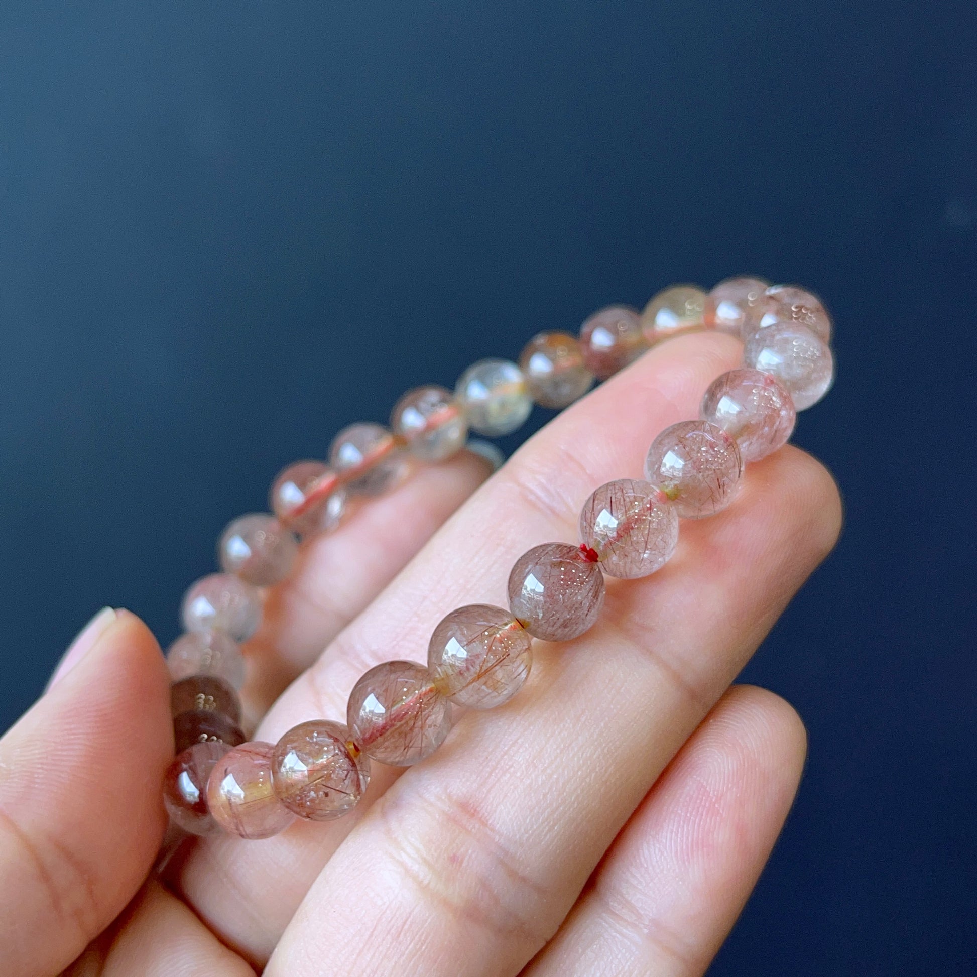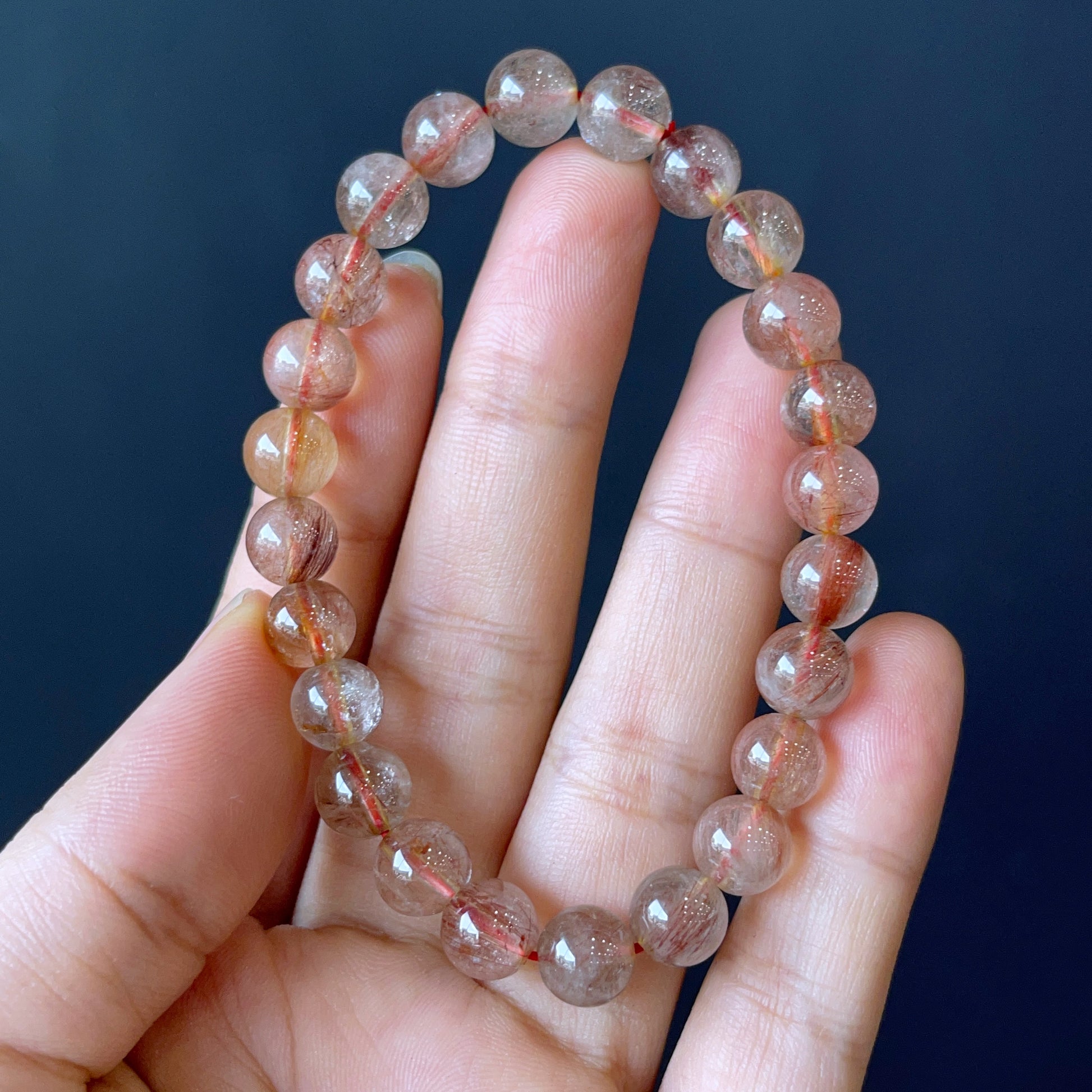 Natural Pink Rutilated Quartz Bracelet Size 8 mm