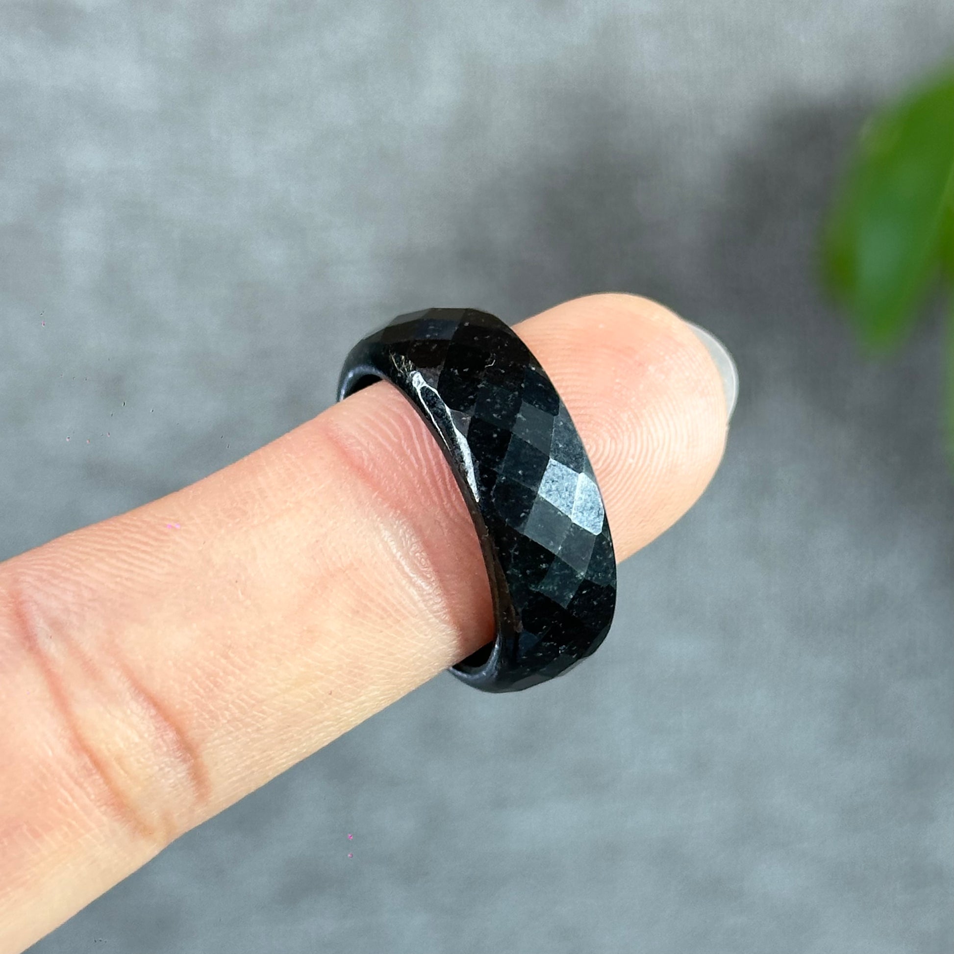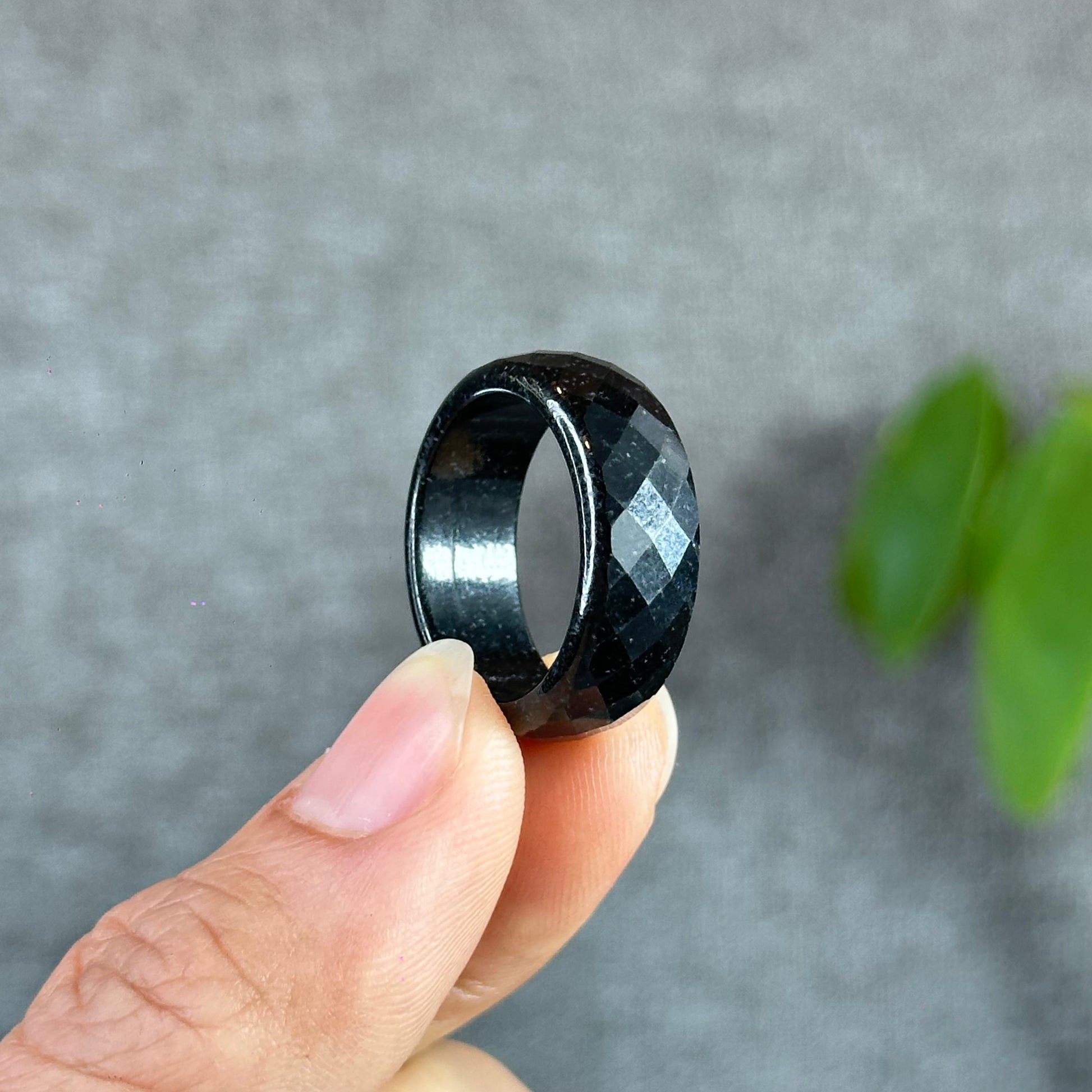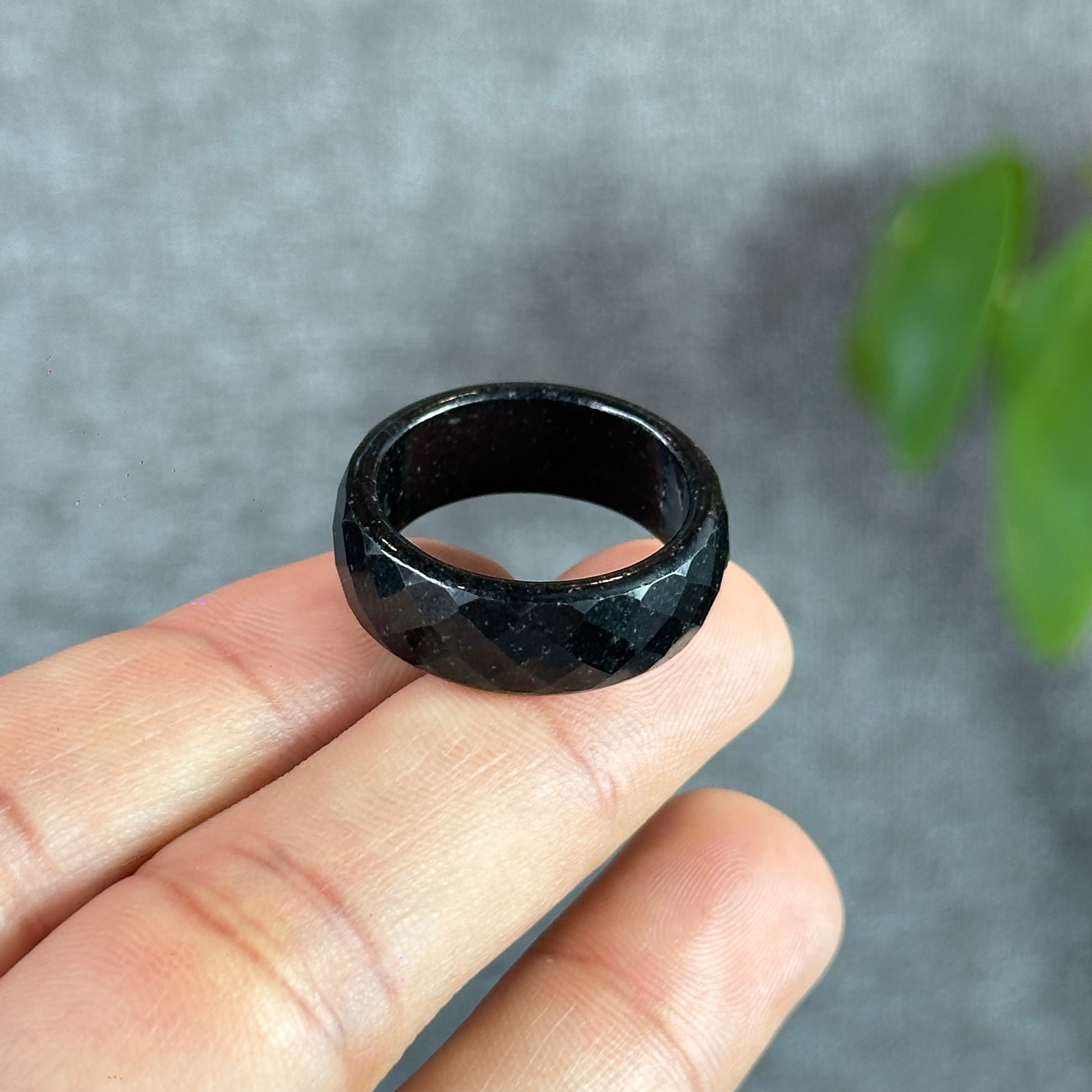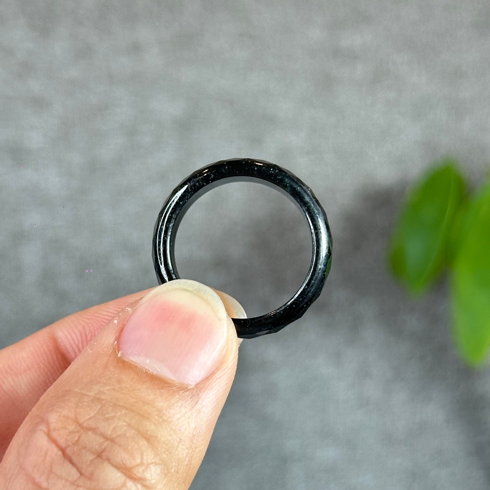 Natural Black Water Facet Jadeite Jade Ring Size 1.95