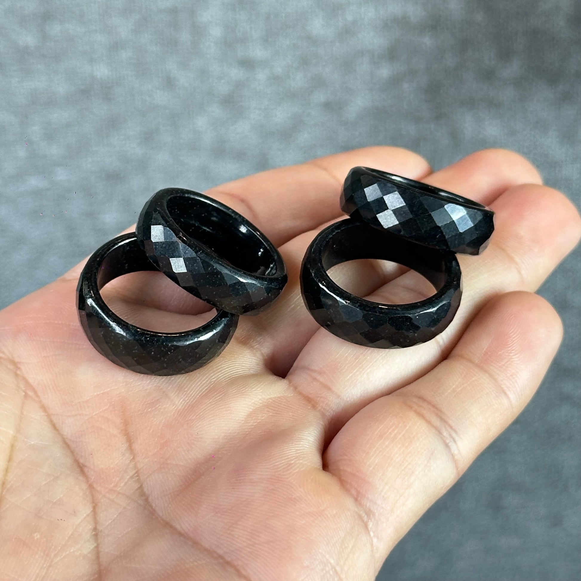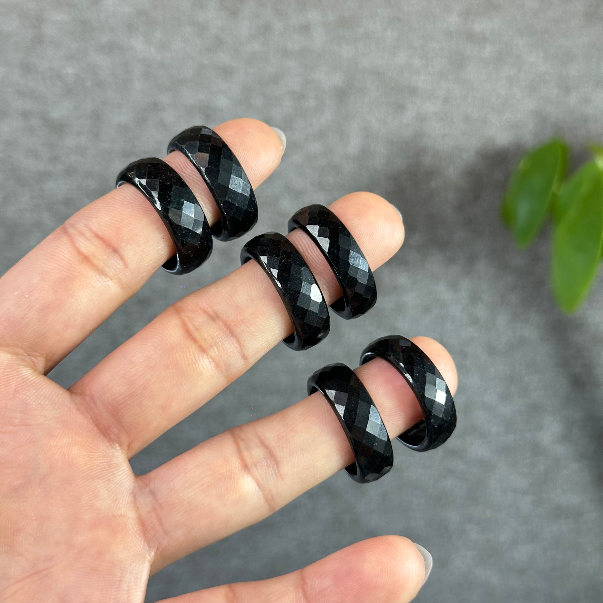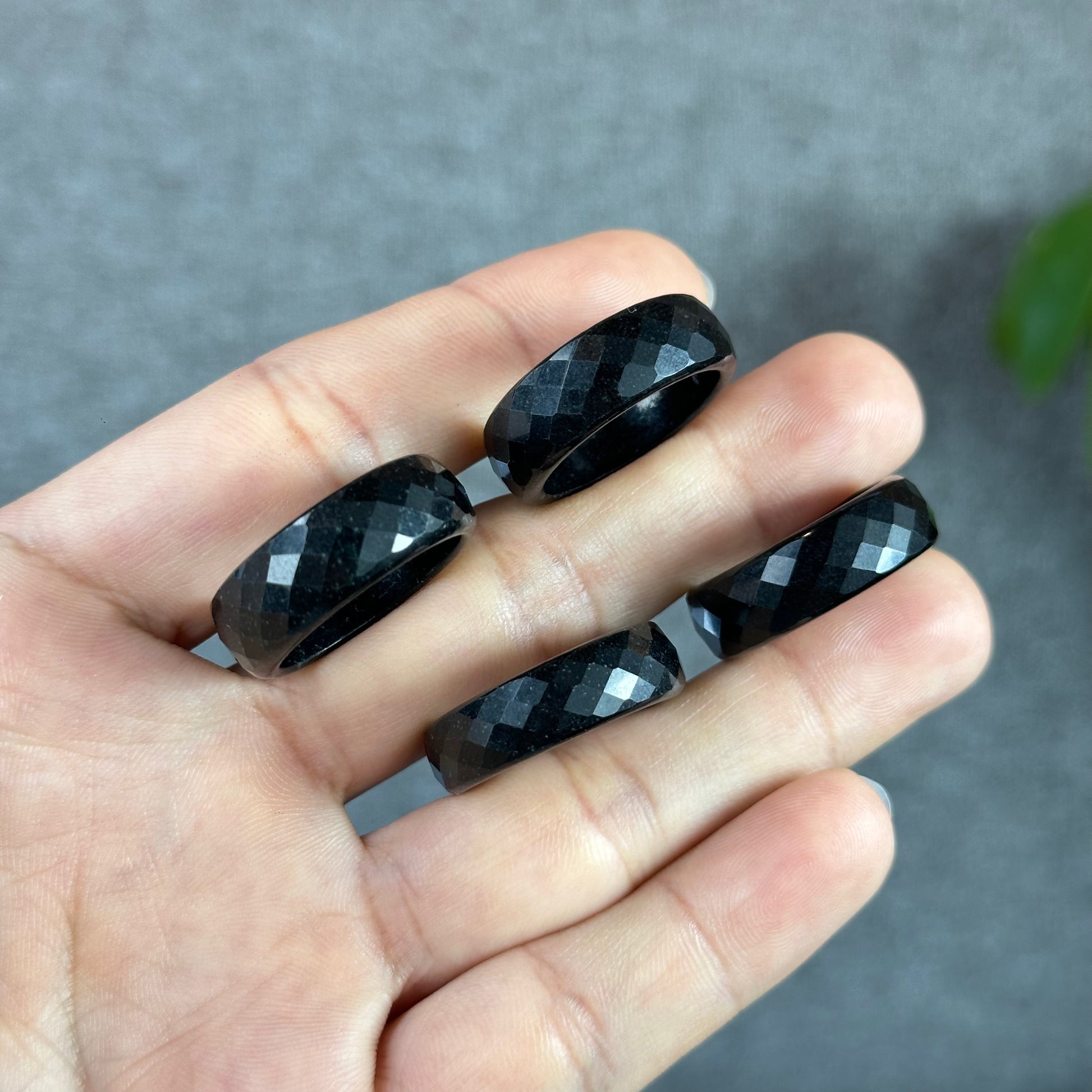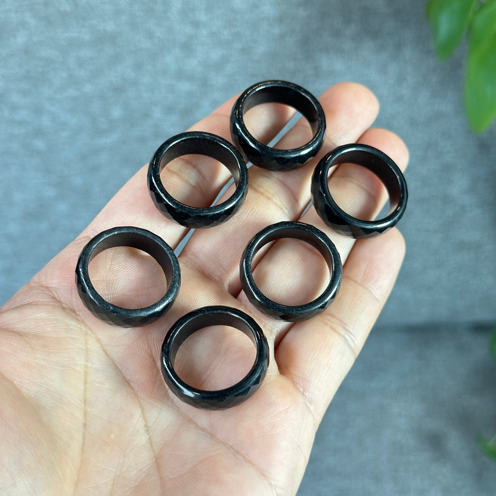 Natural Black Water Facet Jadeite Jade Ring Size 1.95