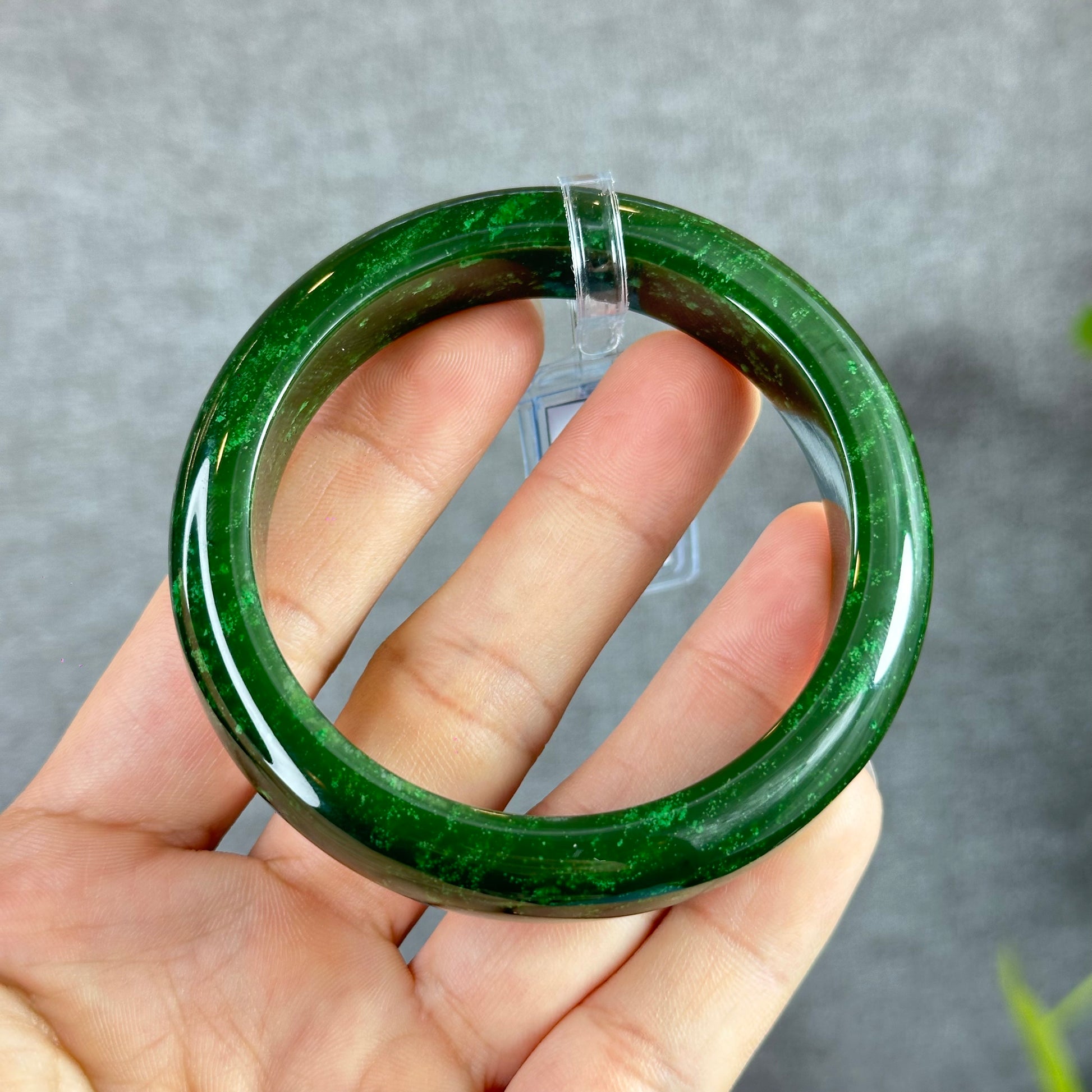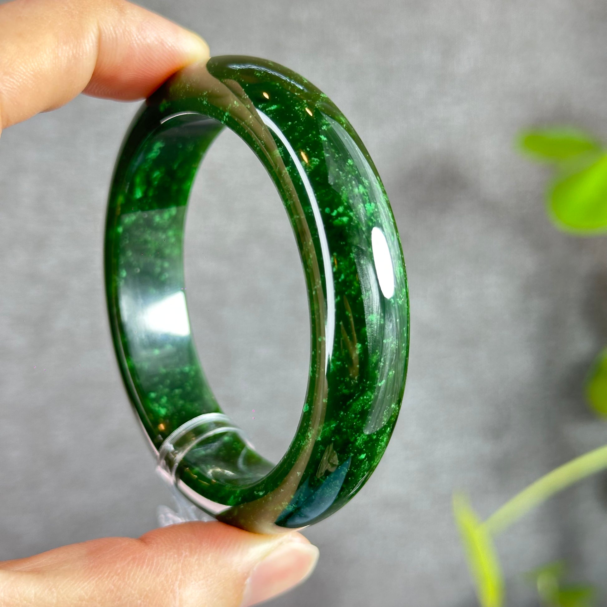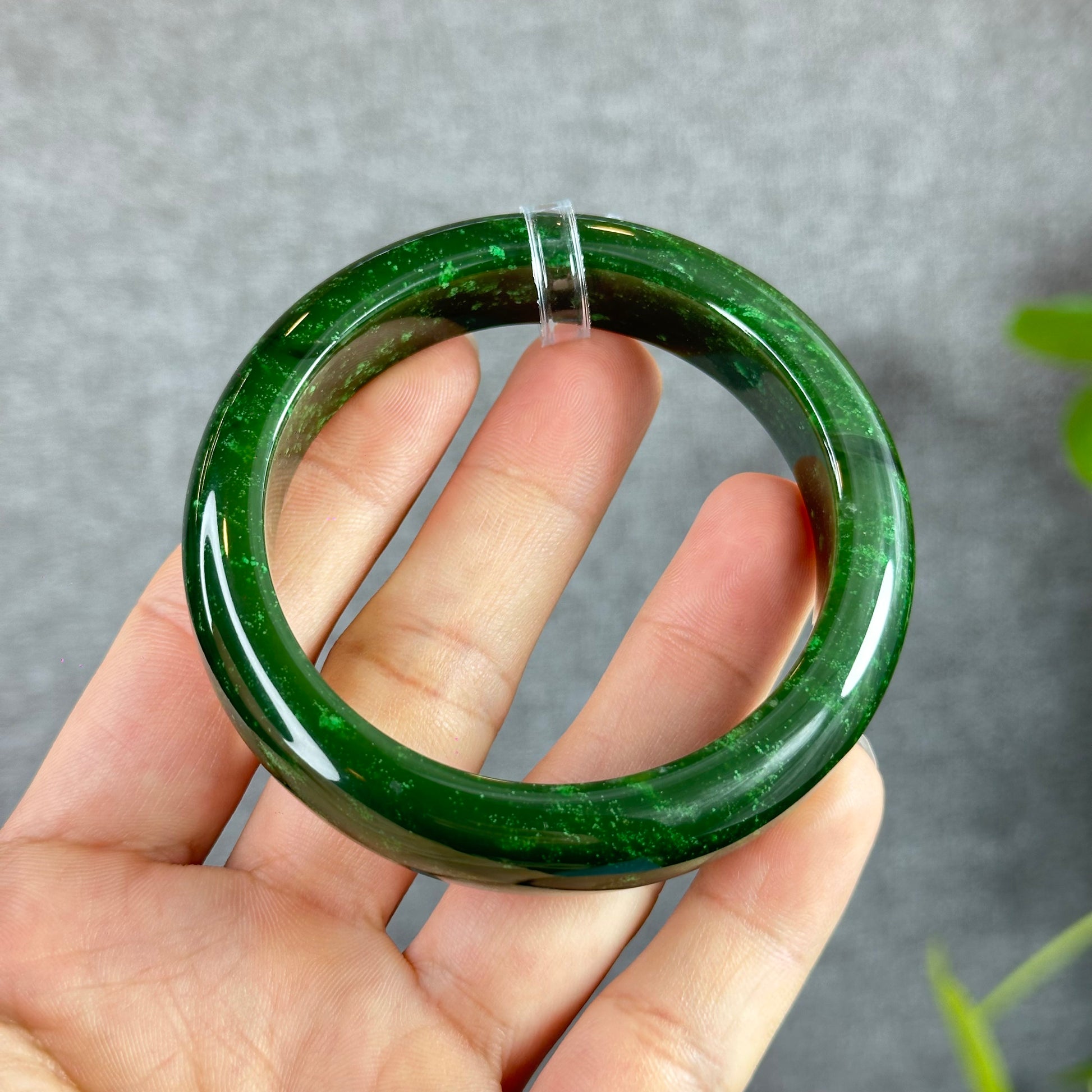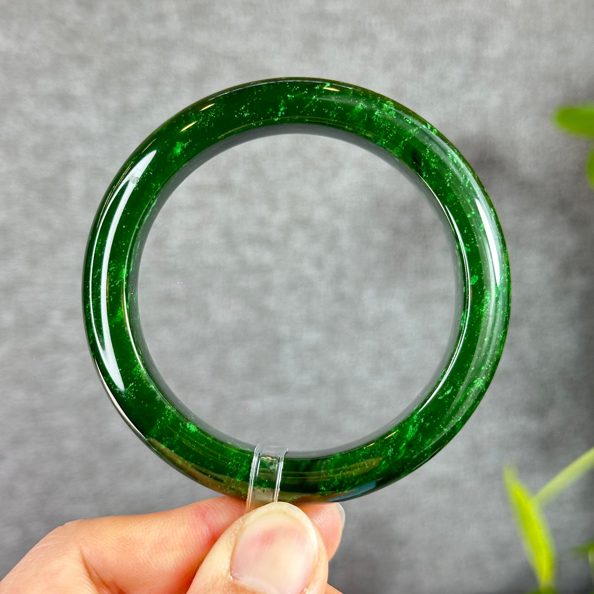 Natural Nephrite Jade Bangle Leaf Style Size 57 mm