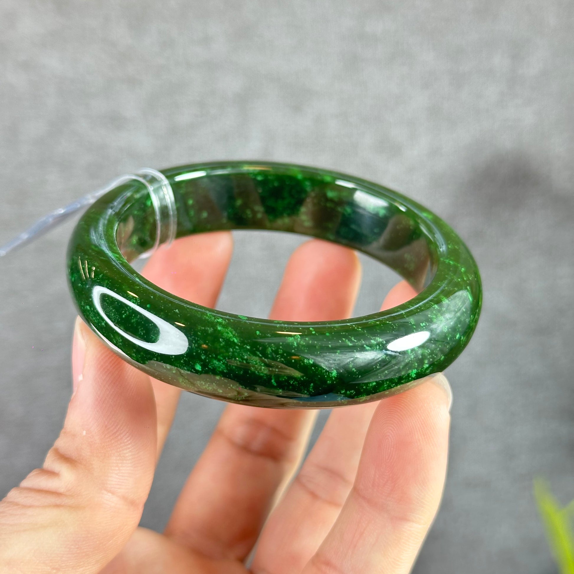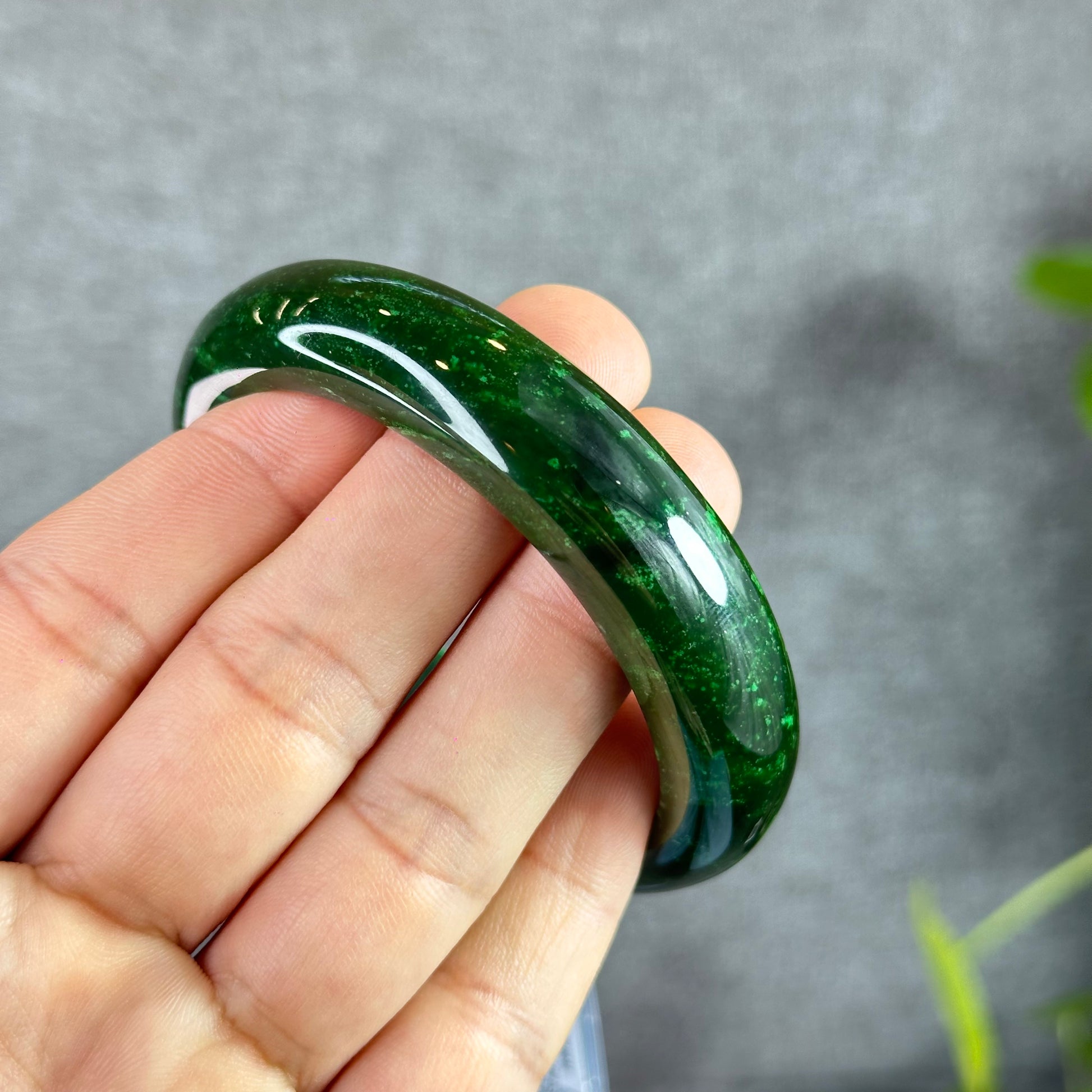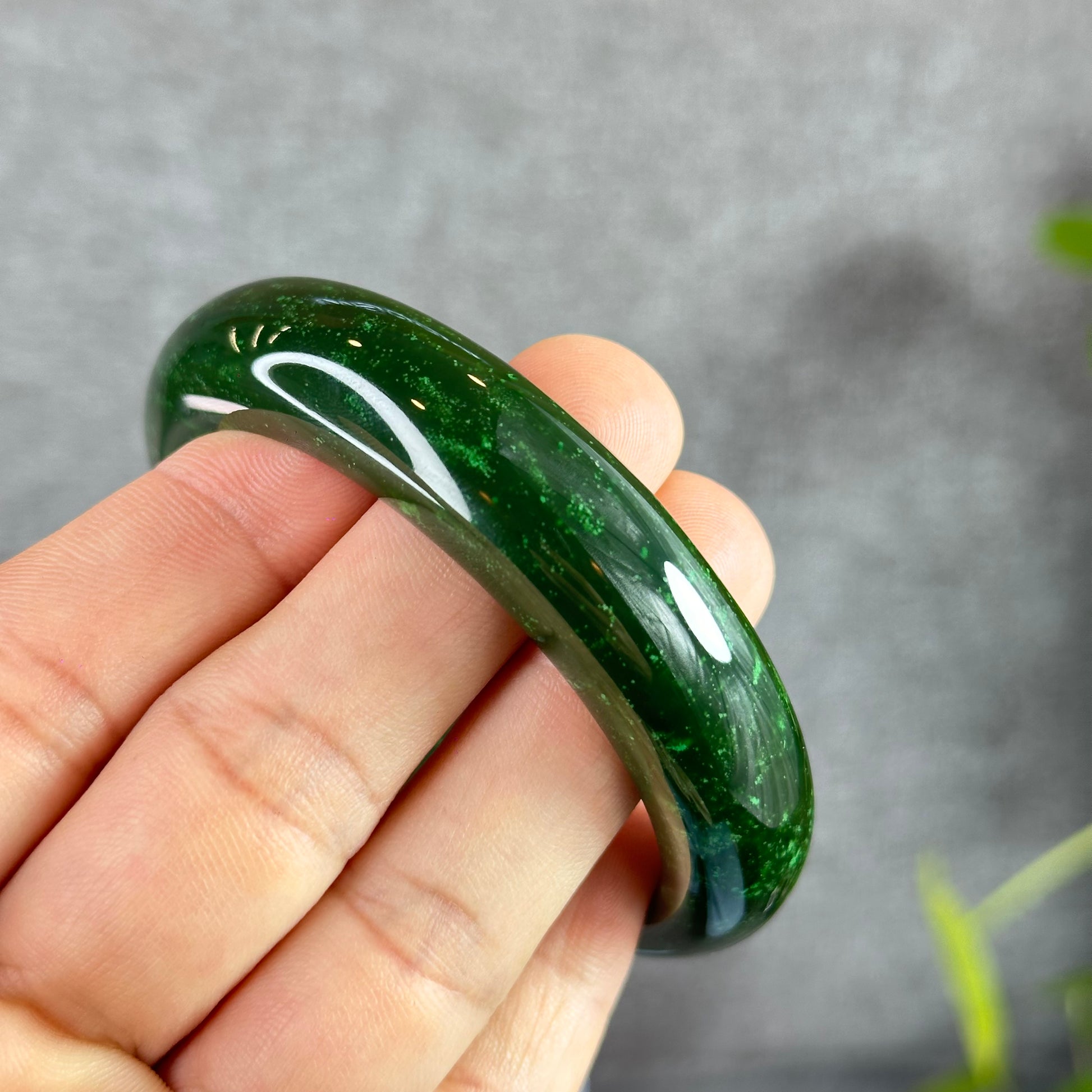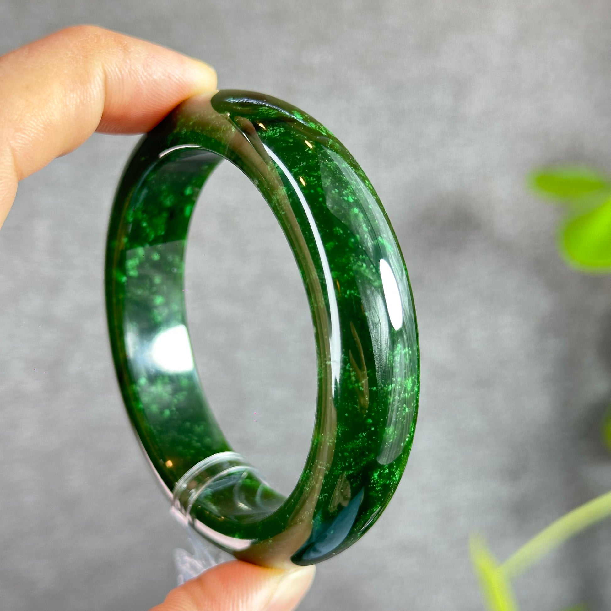 Natural Nephrite Jade Bangle Leaf Style Size 57 mm