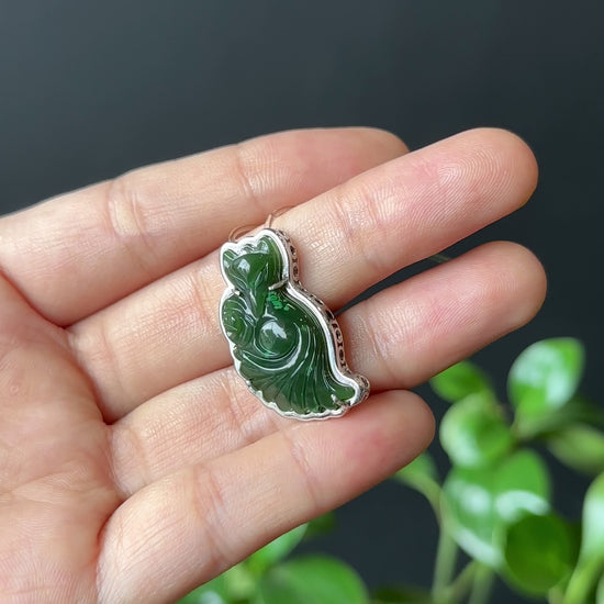 - Long Ho Ly Natural Nephrite Jade Pendant In Silver Setting