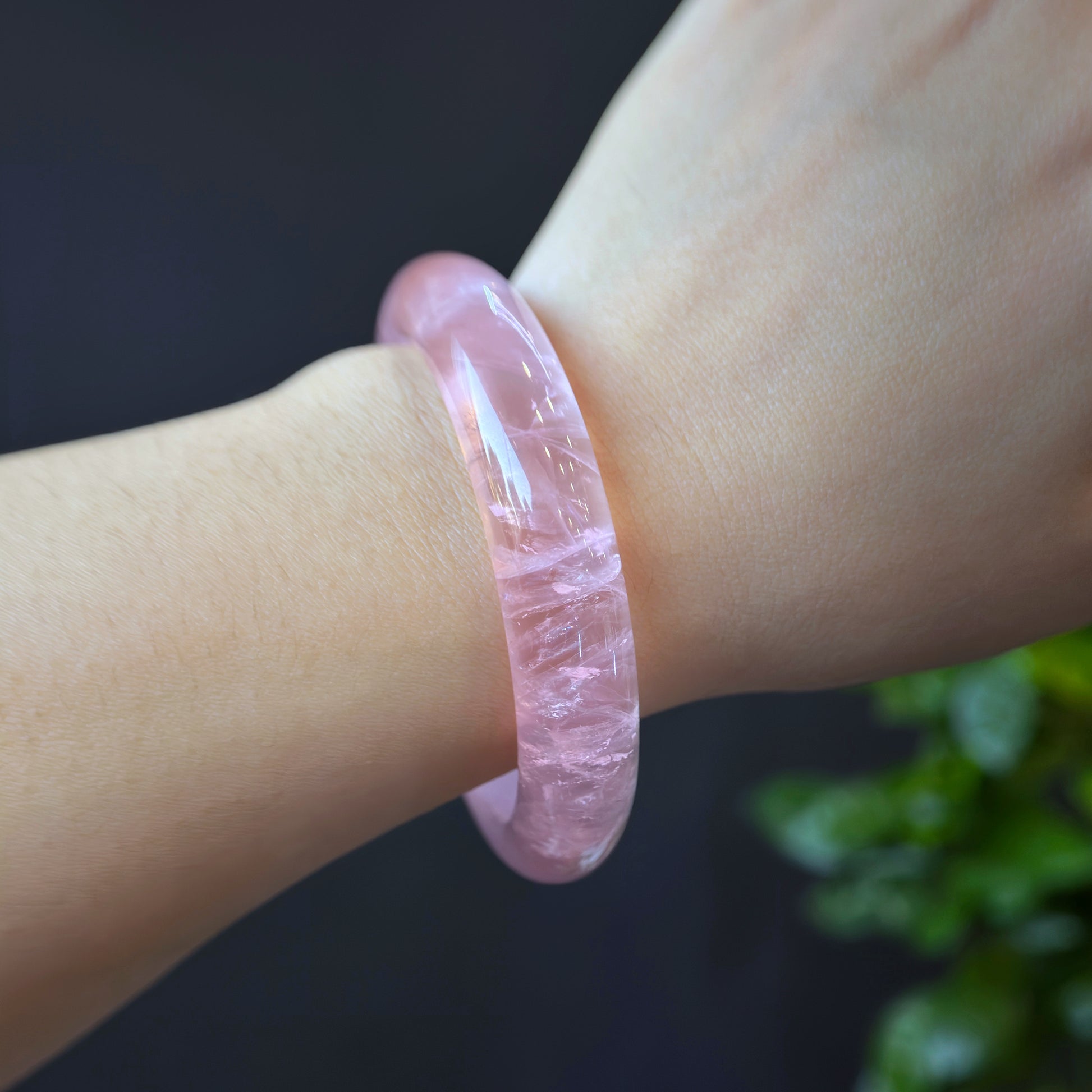 Clear Natural Rose Quartz Bangle Leaf Style Size 57 mm