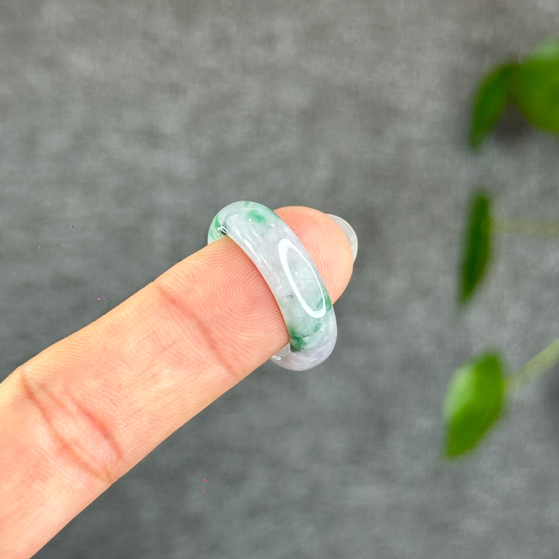 Natural Apple Green Ivory White Jadeite Jade Ring Size 1.85