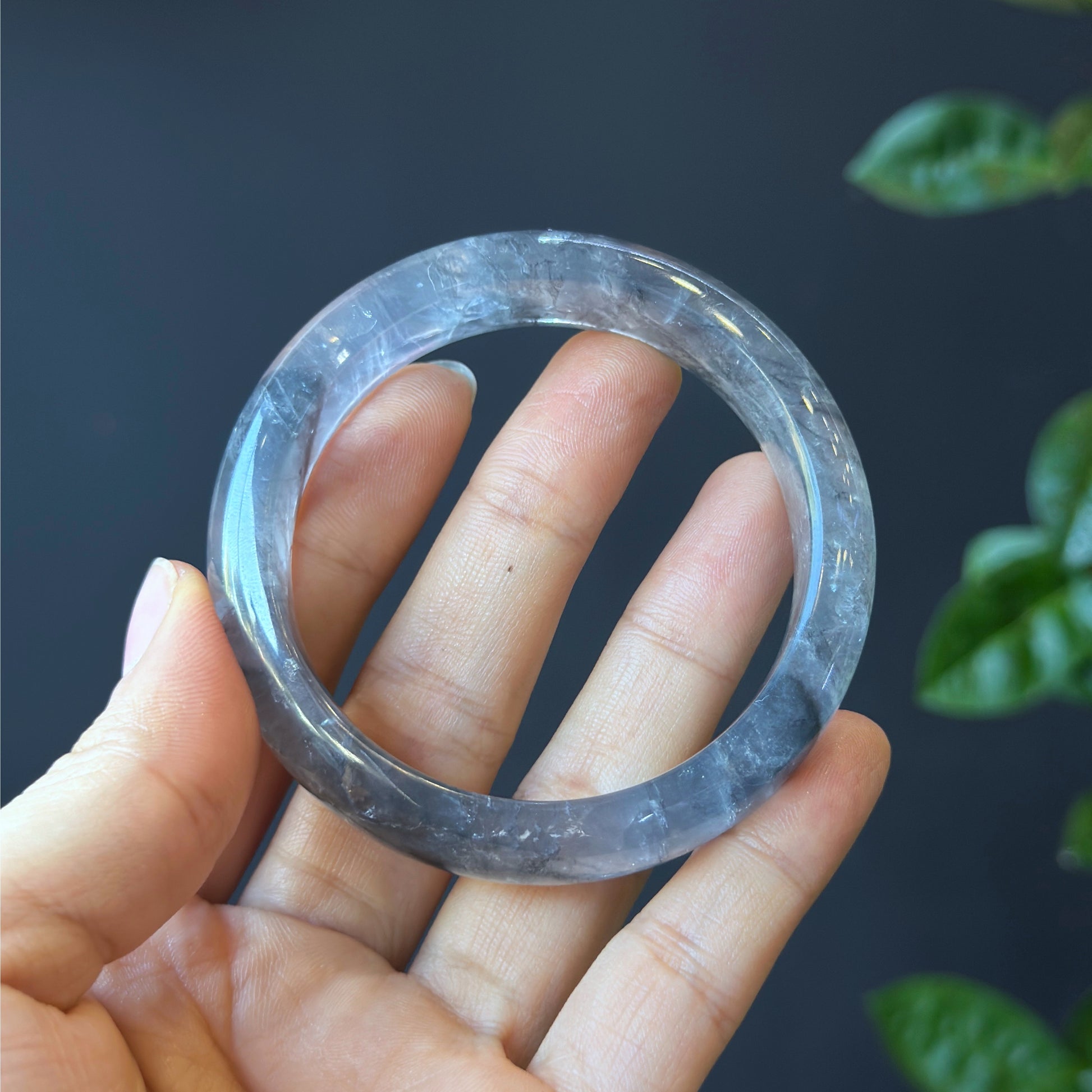 Natural Smokey Quartz Bangle Leaf Style Size 54 mm