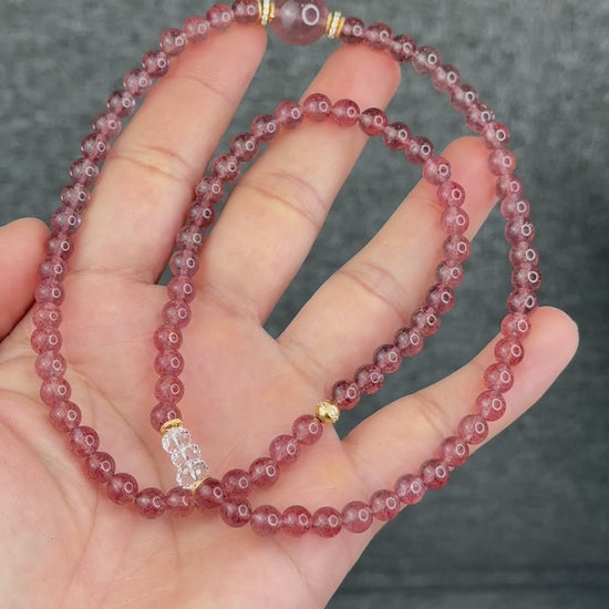 - Strawberry Quartz is the stone of Universal love. It helps you to express your feelings, love, and generosity. When worn in a stressful environment, it can alleviate stress and calm you down. In addition, Strawberry Quartz will bring balance to your emotions and psyche. In career, it will always keep you motivated. This stone will help you better understand your personality and provide you with inspiration.