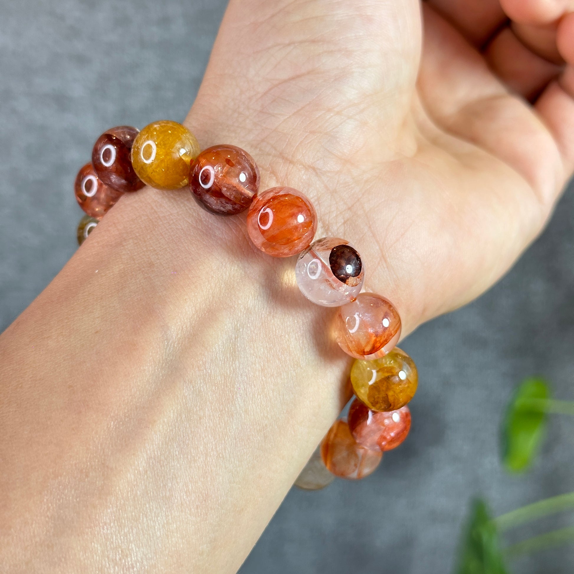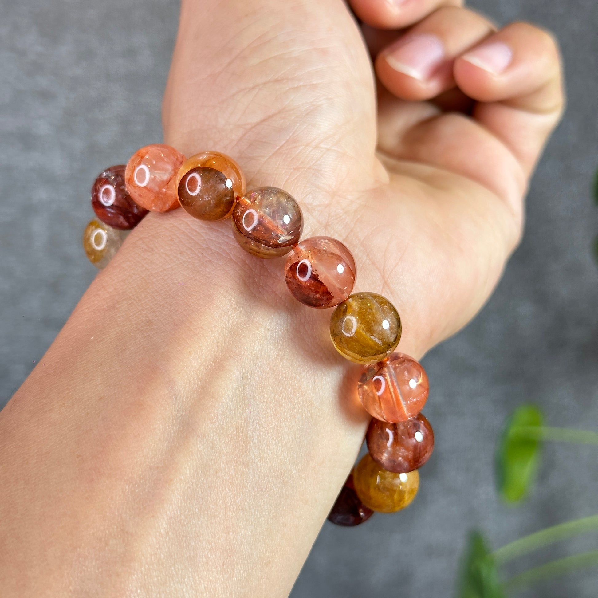 Natural Fire Quartz with Golden Healer Bracelet Size 12 mm
