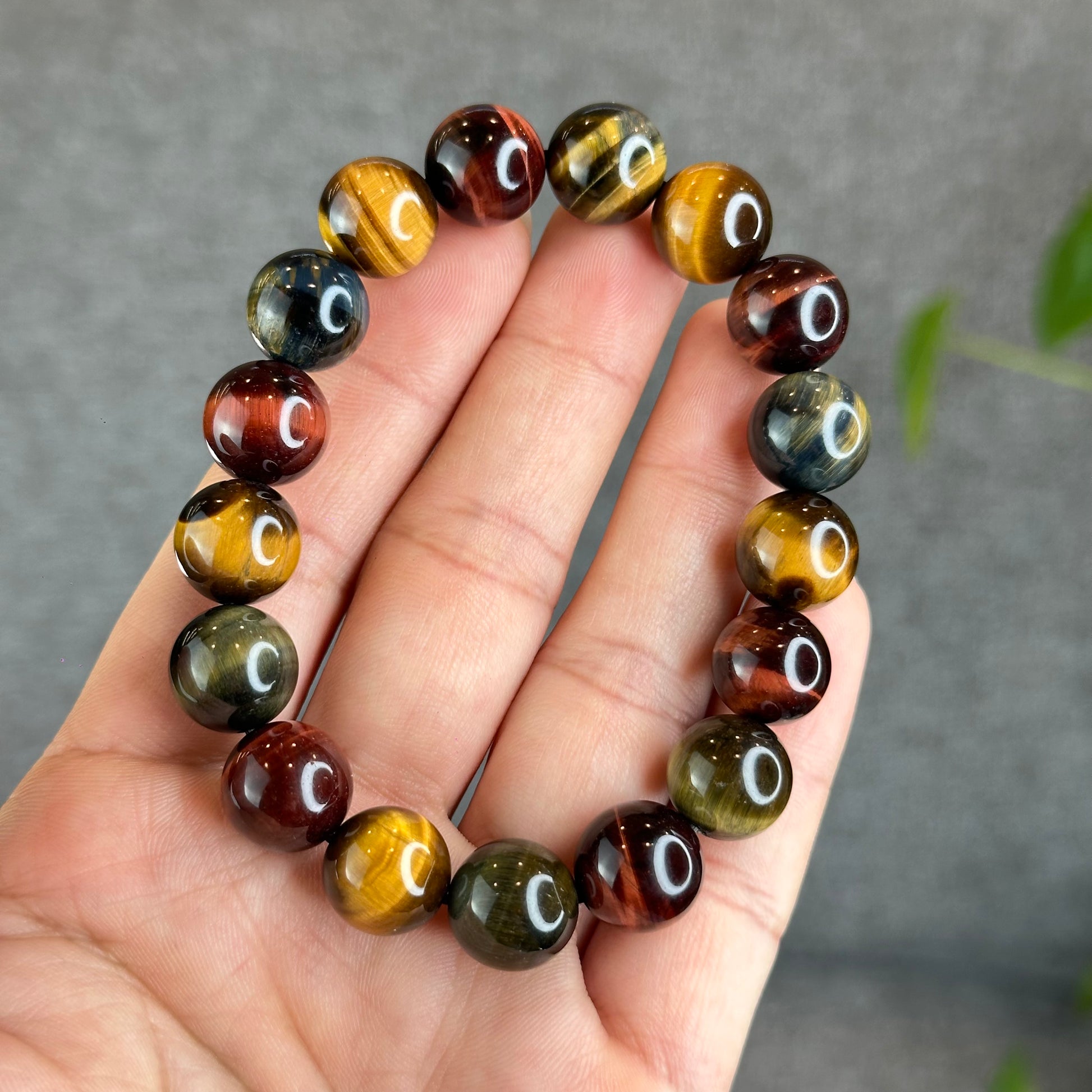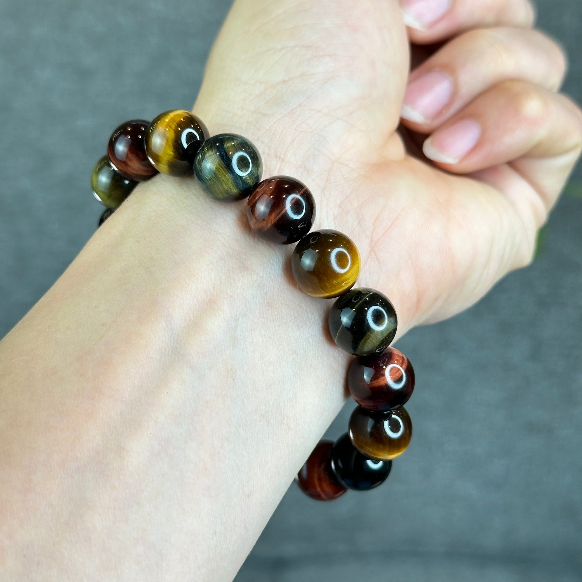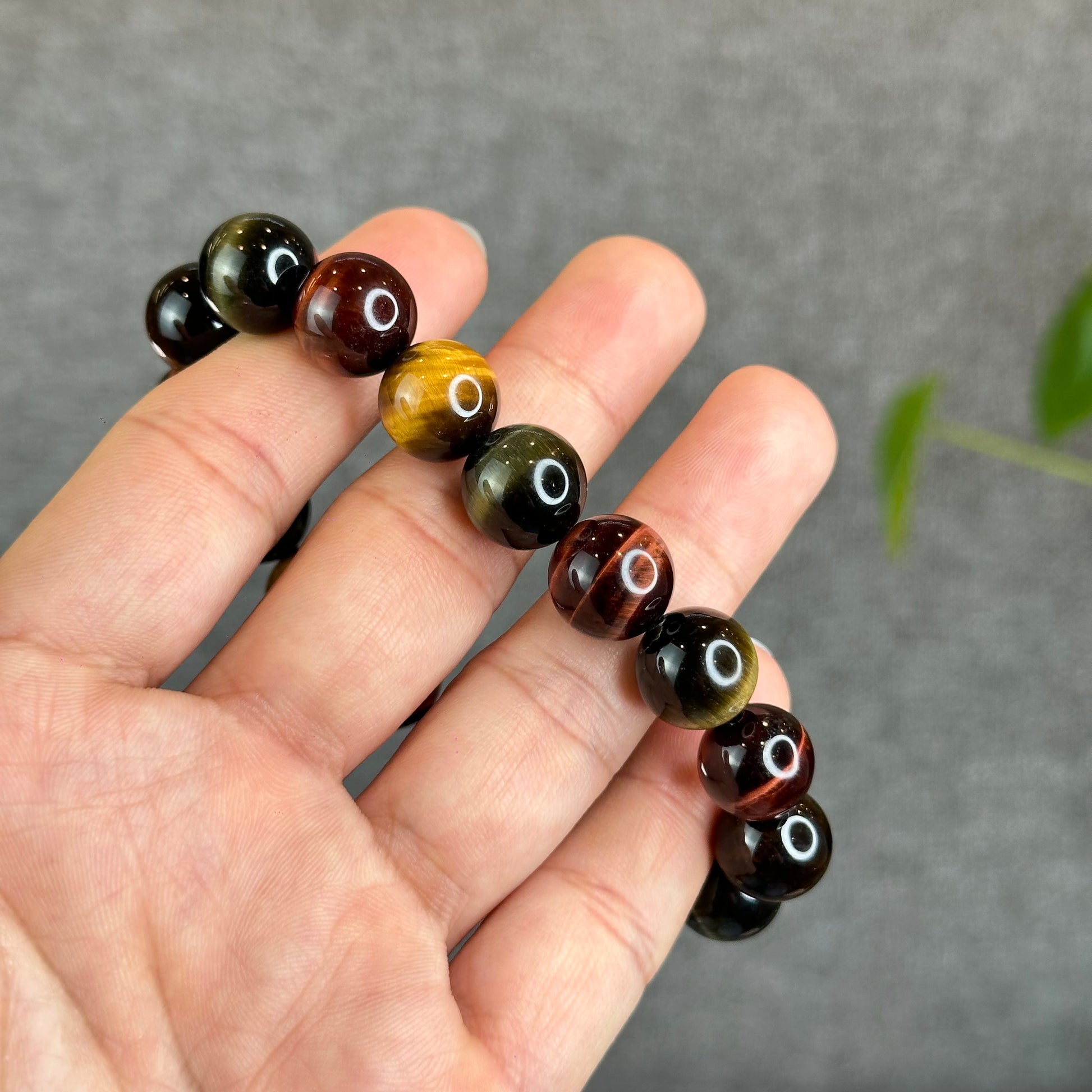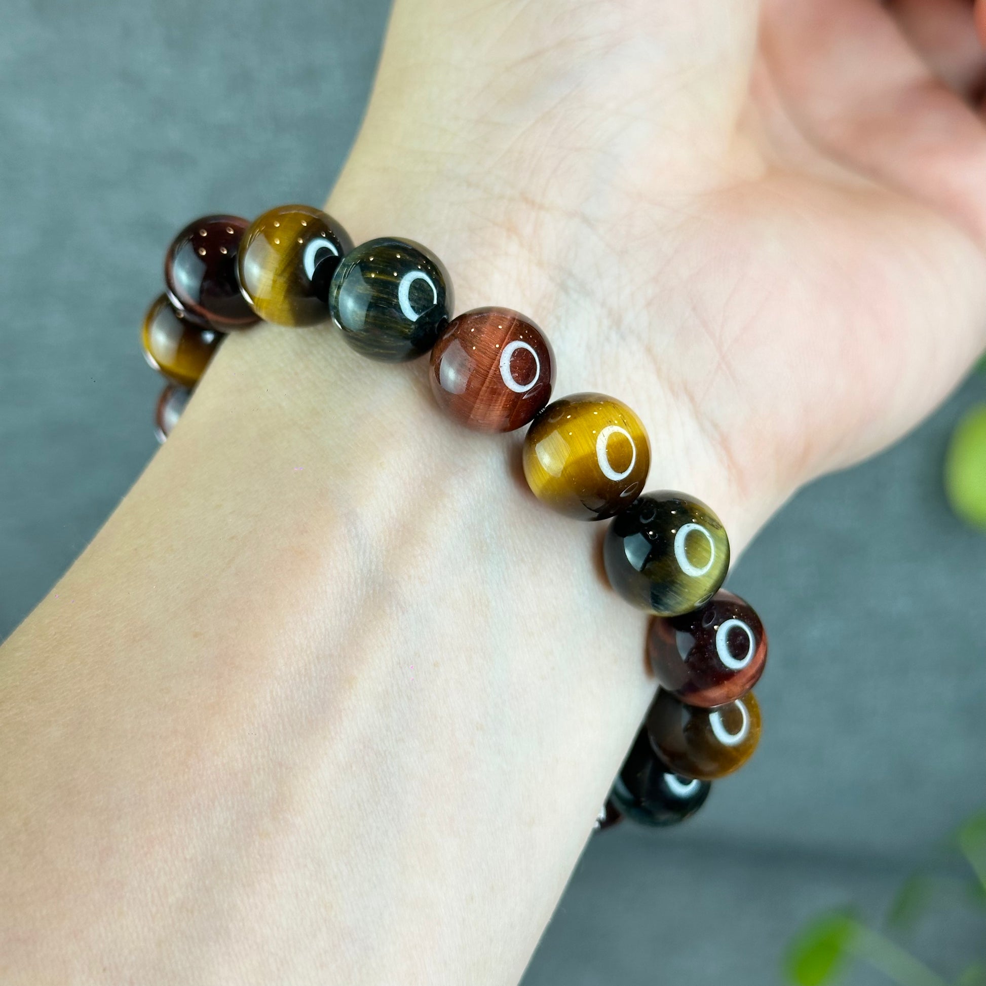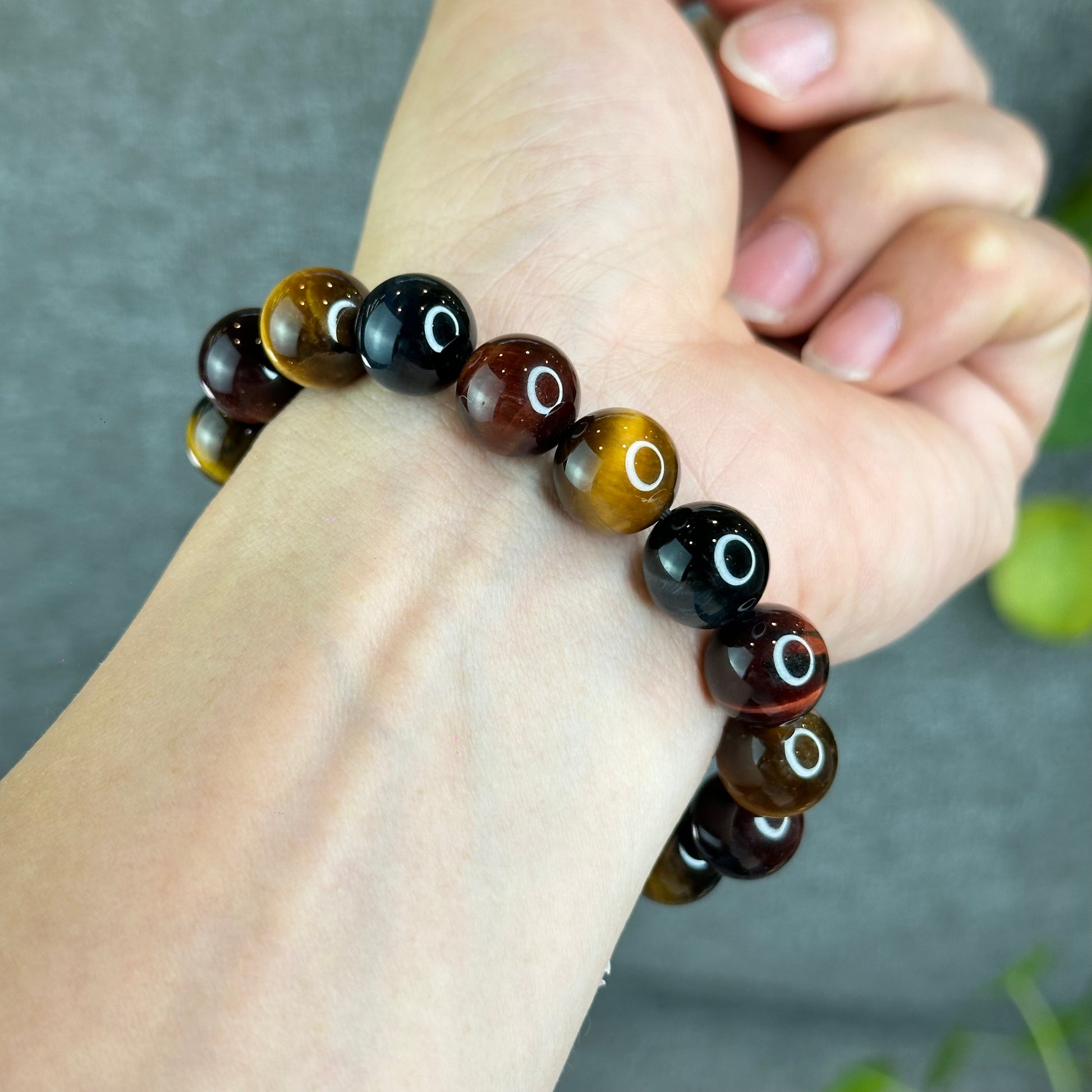 Tri Colour Natural Tiger Eye Bracelet Size 12 mm