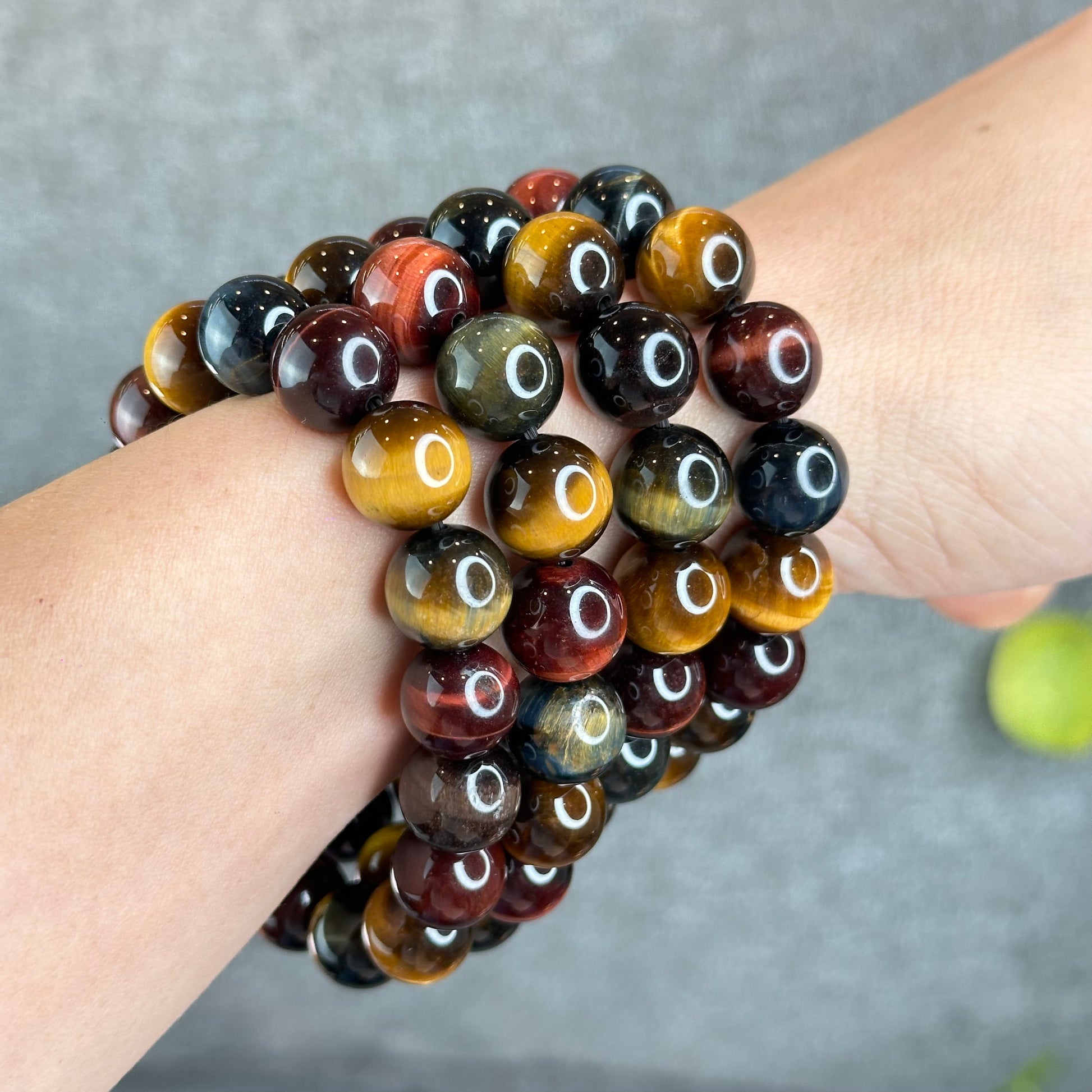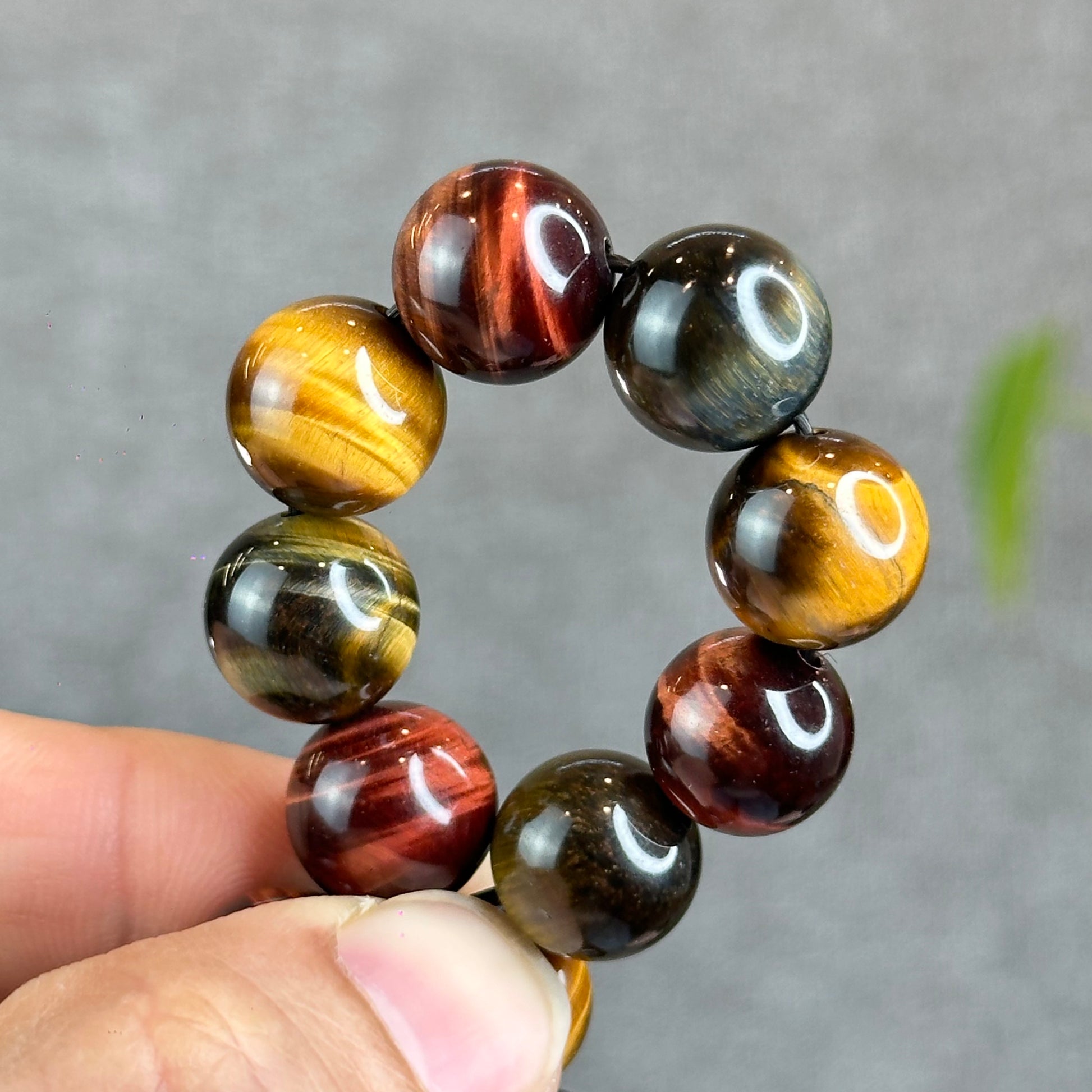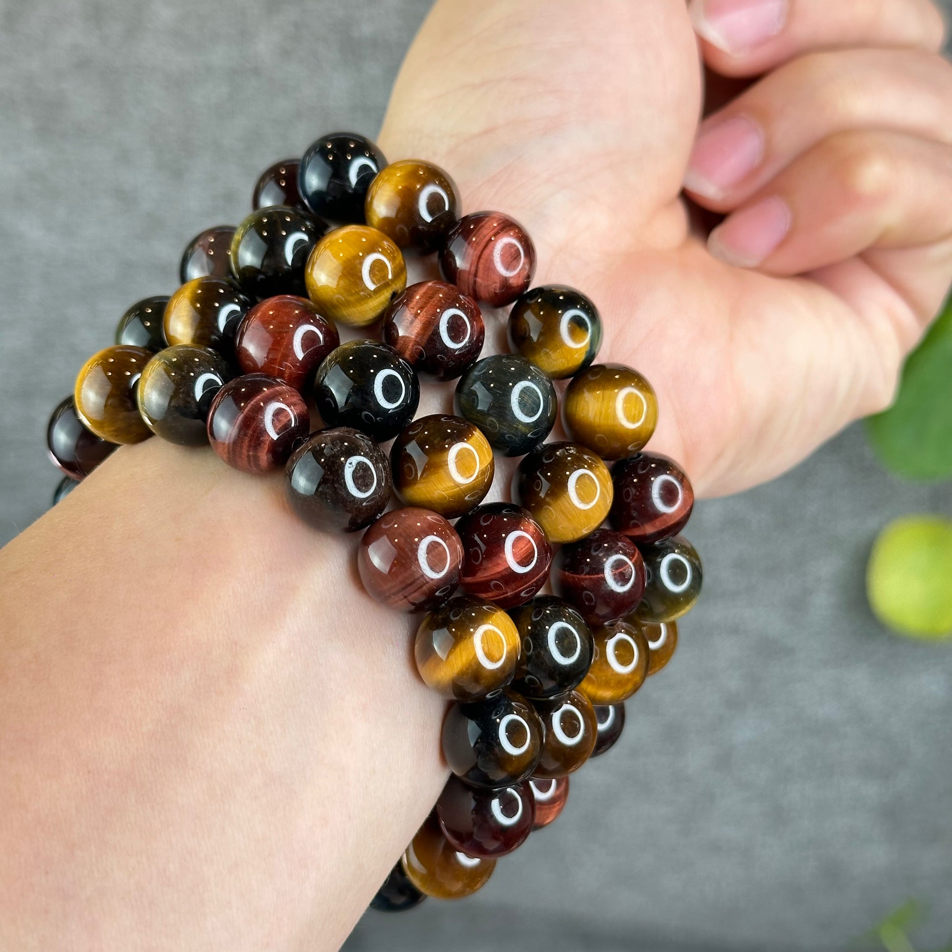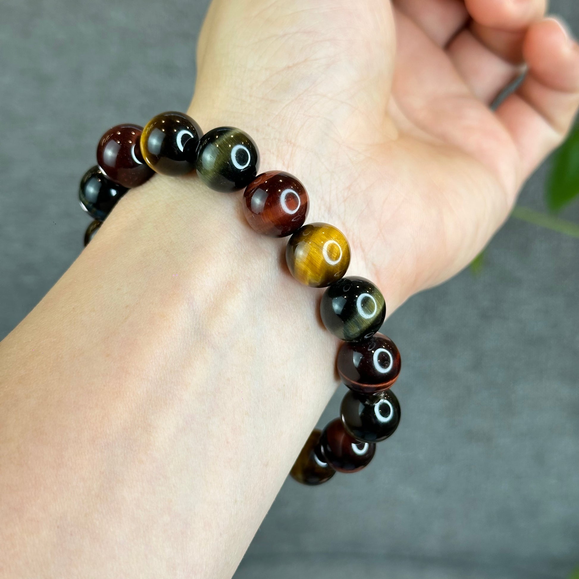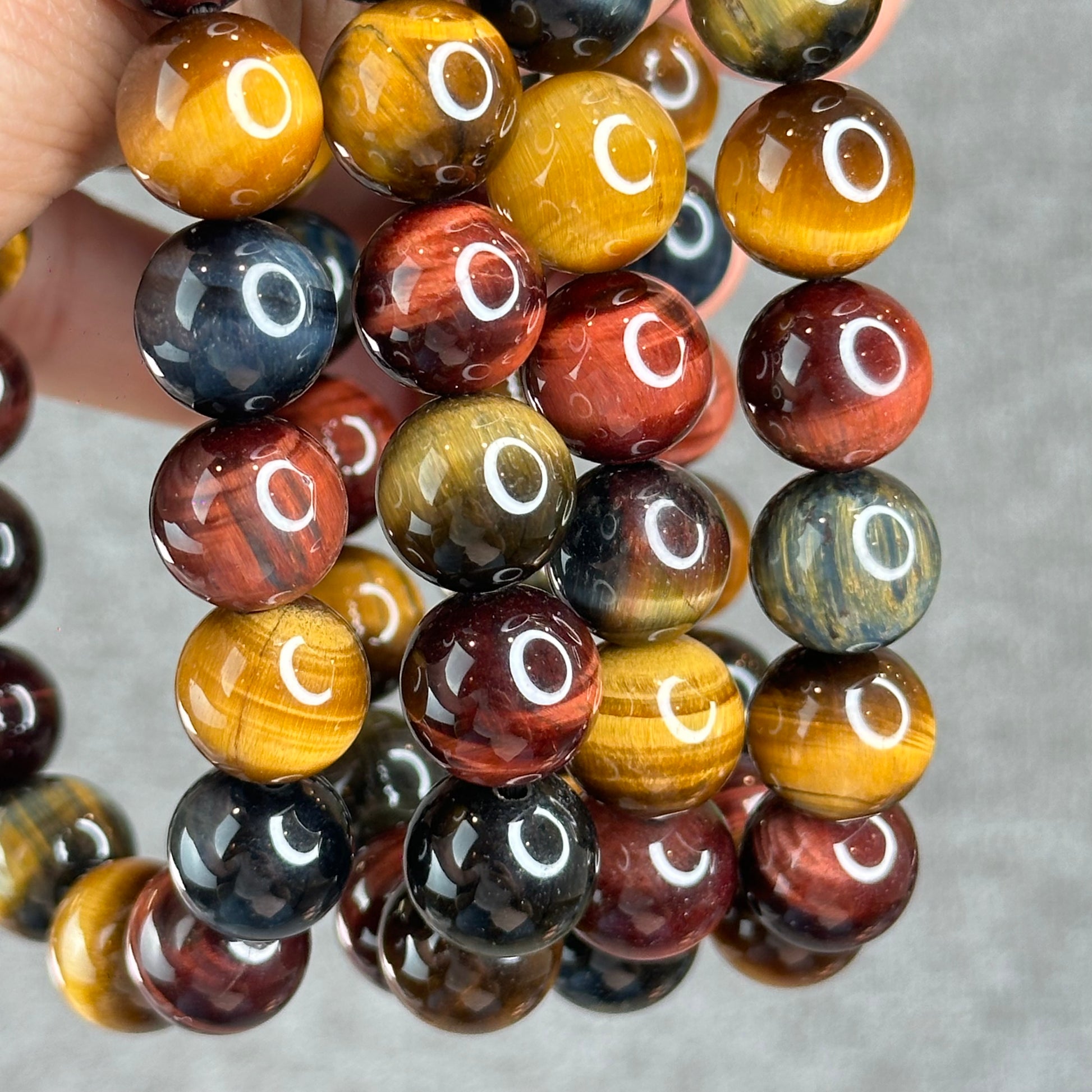 Tri Colour Natural Tiger Eye Bracelet Size 12 mm