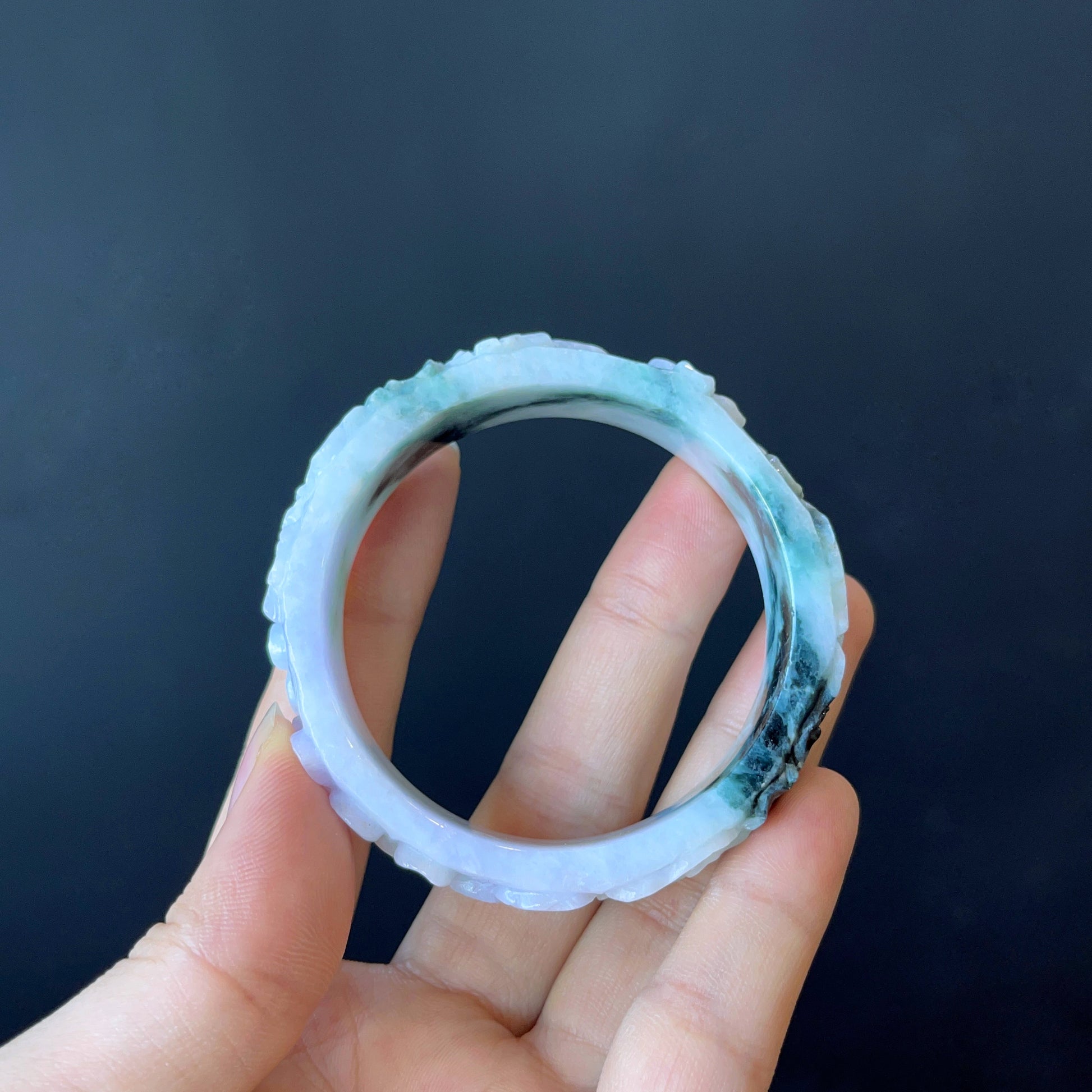 Natural Jadeite Jade Banlge Leaf Style Size 51 mm