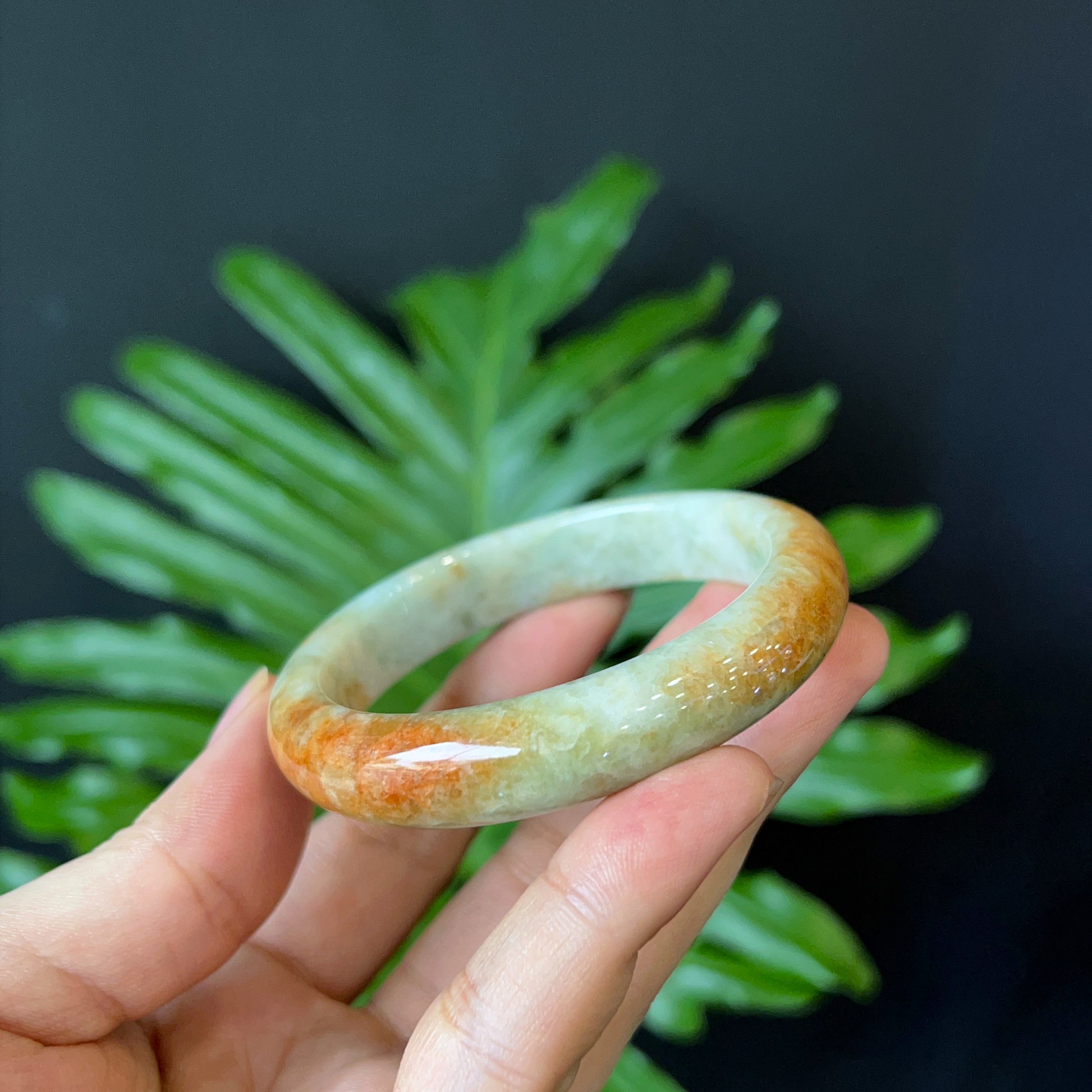 Natural Jadeite Jade Bangle Leaf Style Size 52 mm