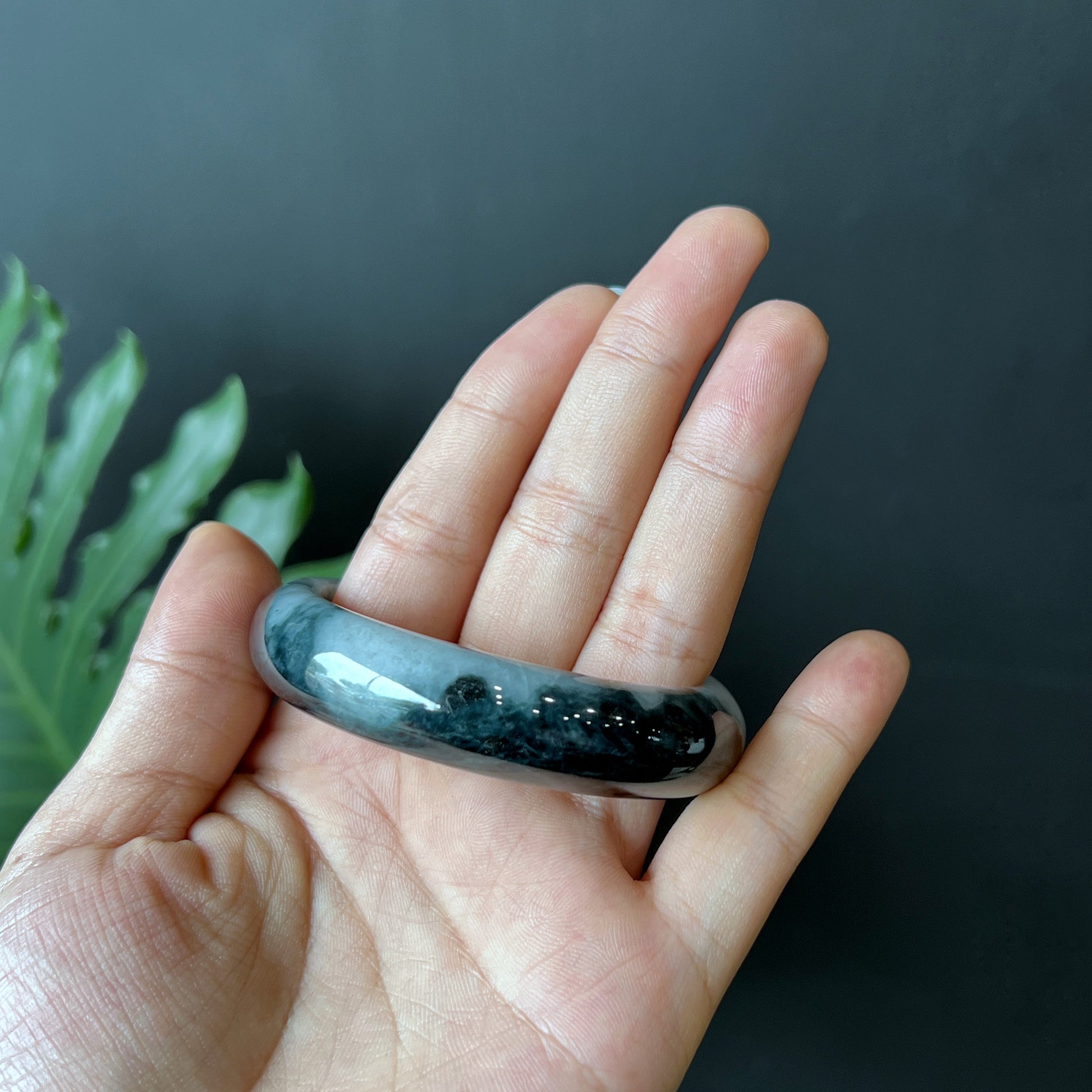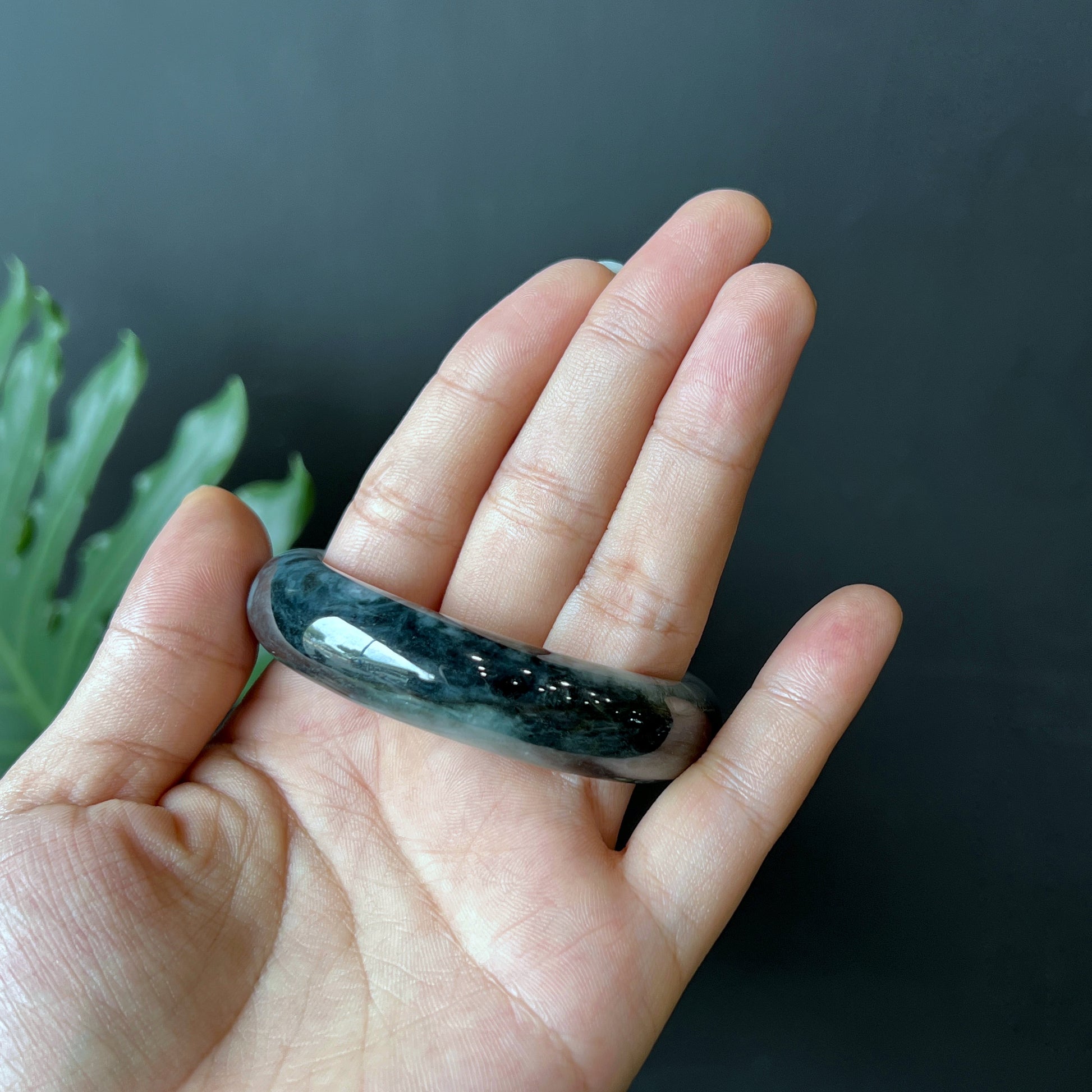 Natural Jadeite Jade Son Thuy Bangle Leaf Style Size 53 mm