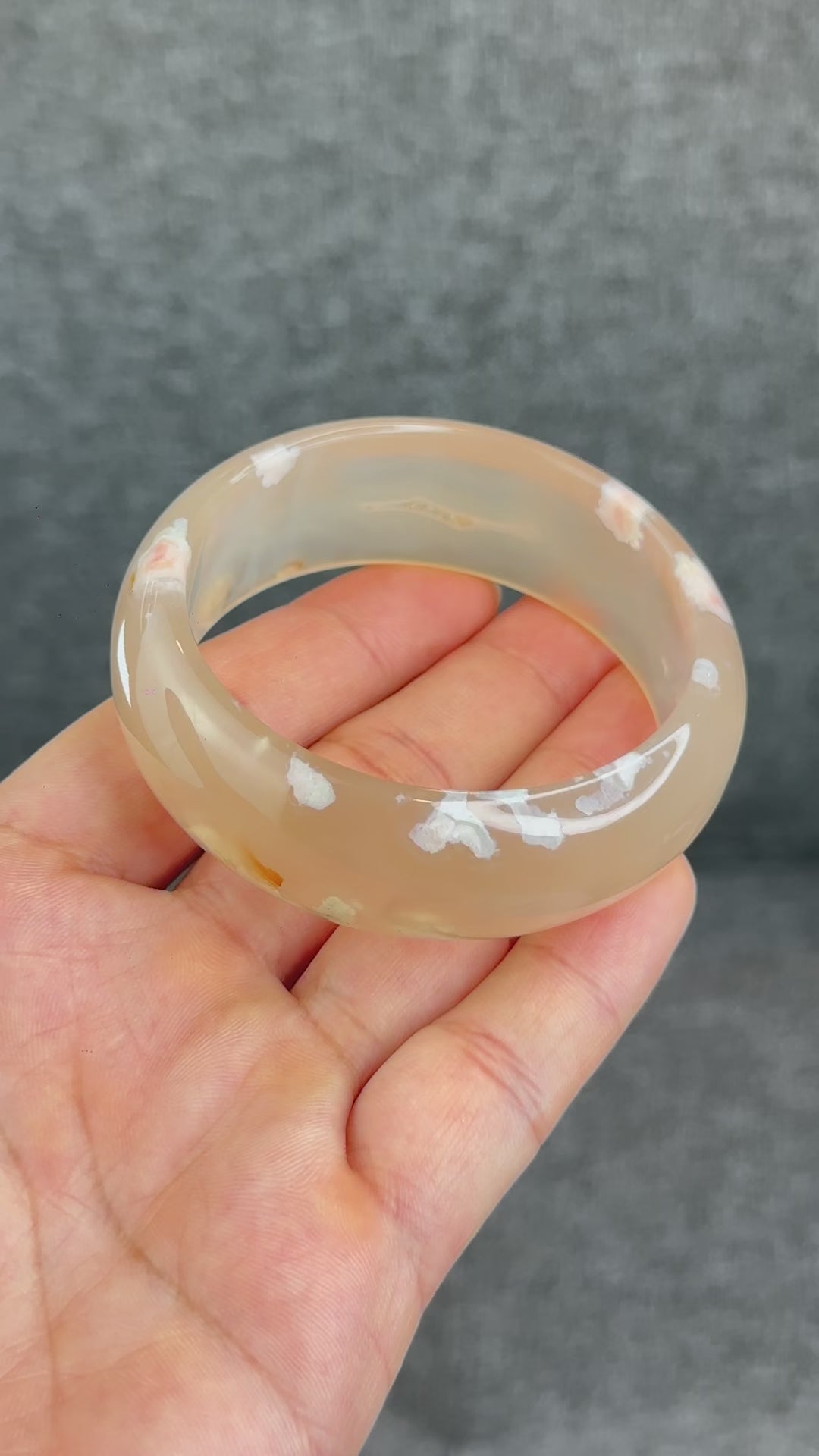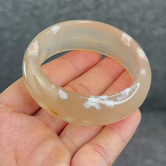 Flower Agate Bangle Leaf Style Size 55.5 mm