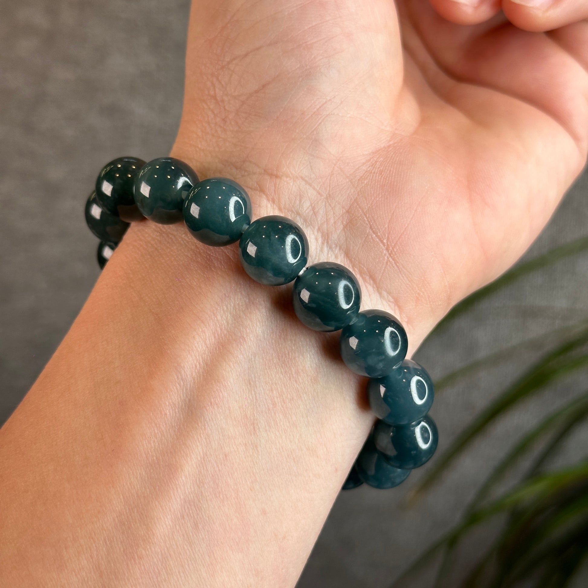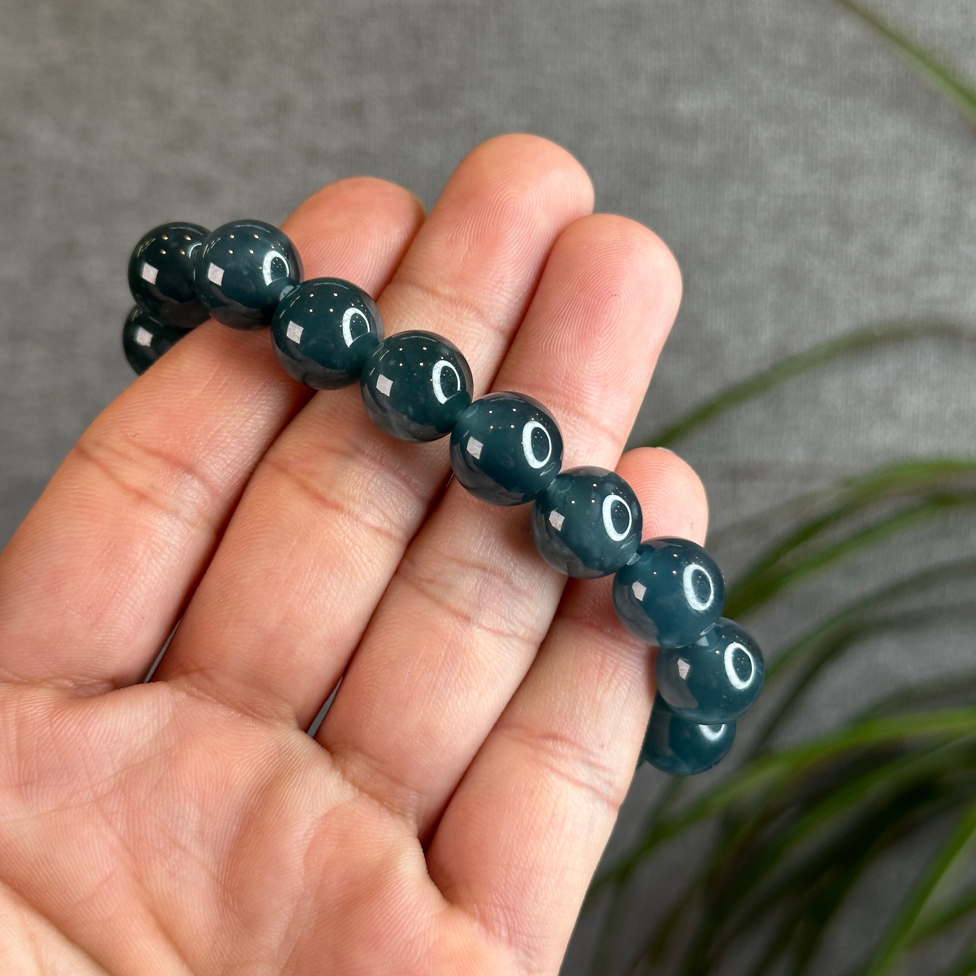Natural Dark Blue Water Jadeite Jade Bracelet Size 11.8 mm