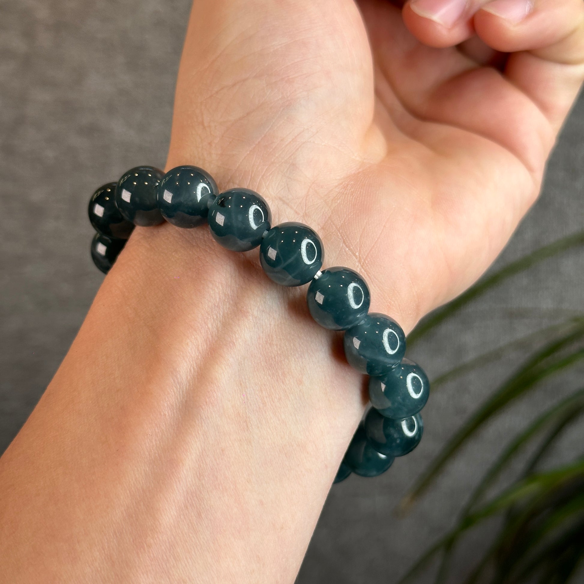 Natural Blue Water Natural Jadeite Jade Bracelet 11.8 mm