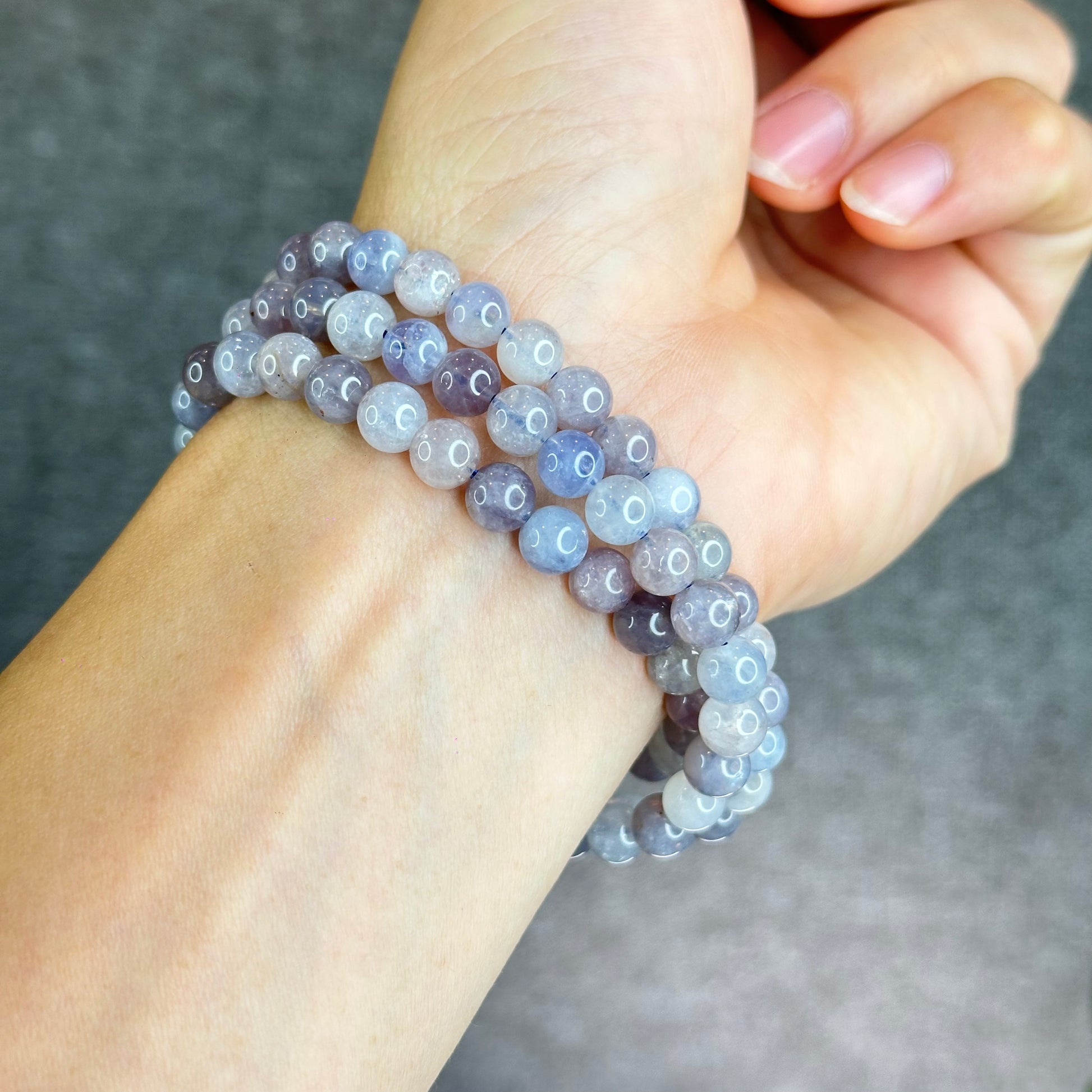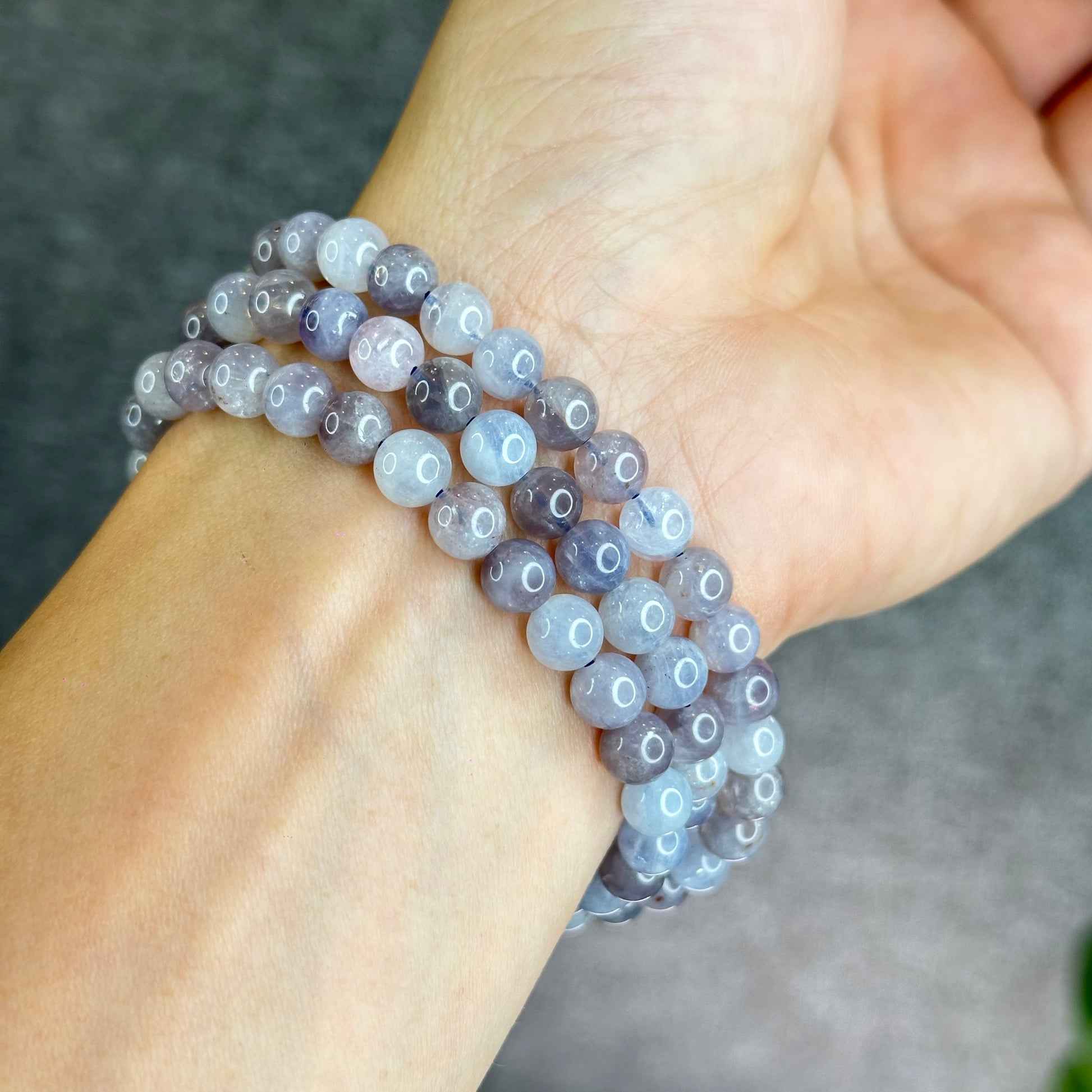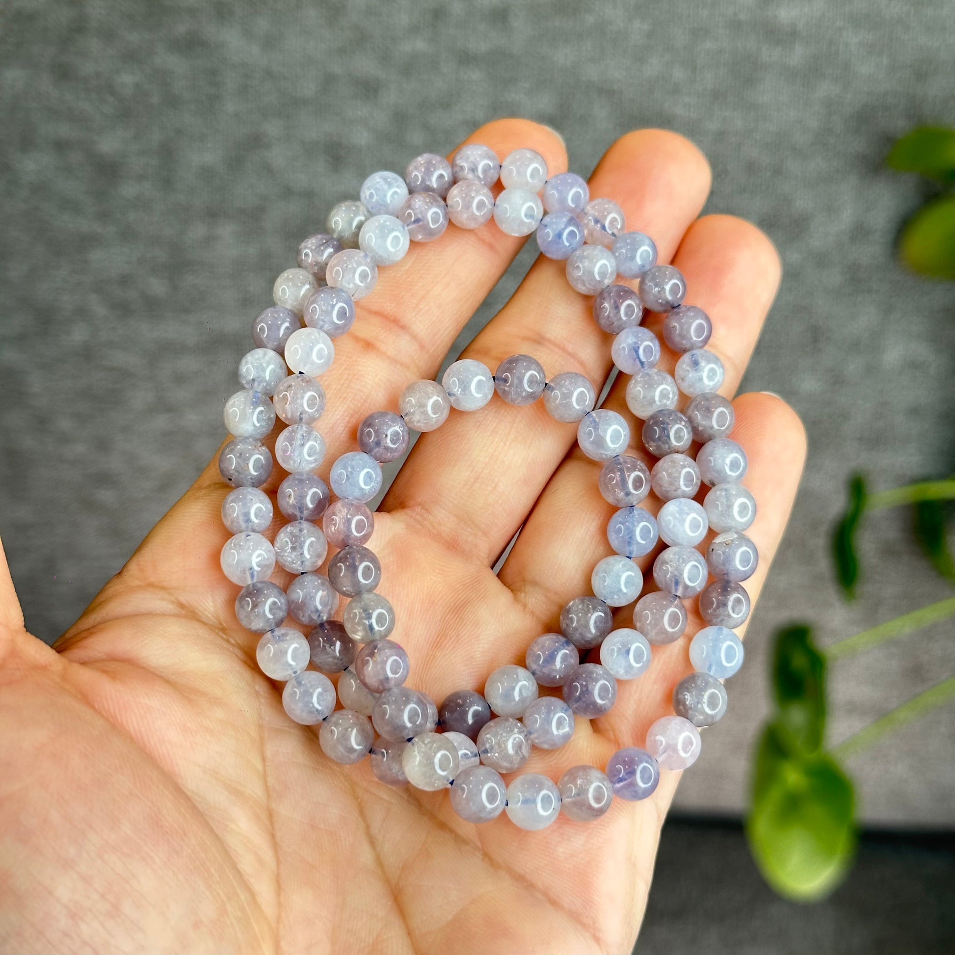 Natural Blue Rose Quartz Triple Wrap Bracelet Size 6.5 mm