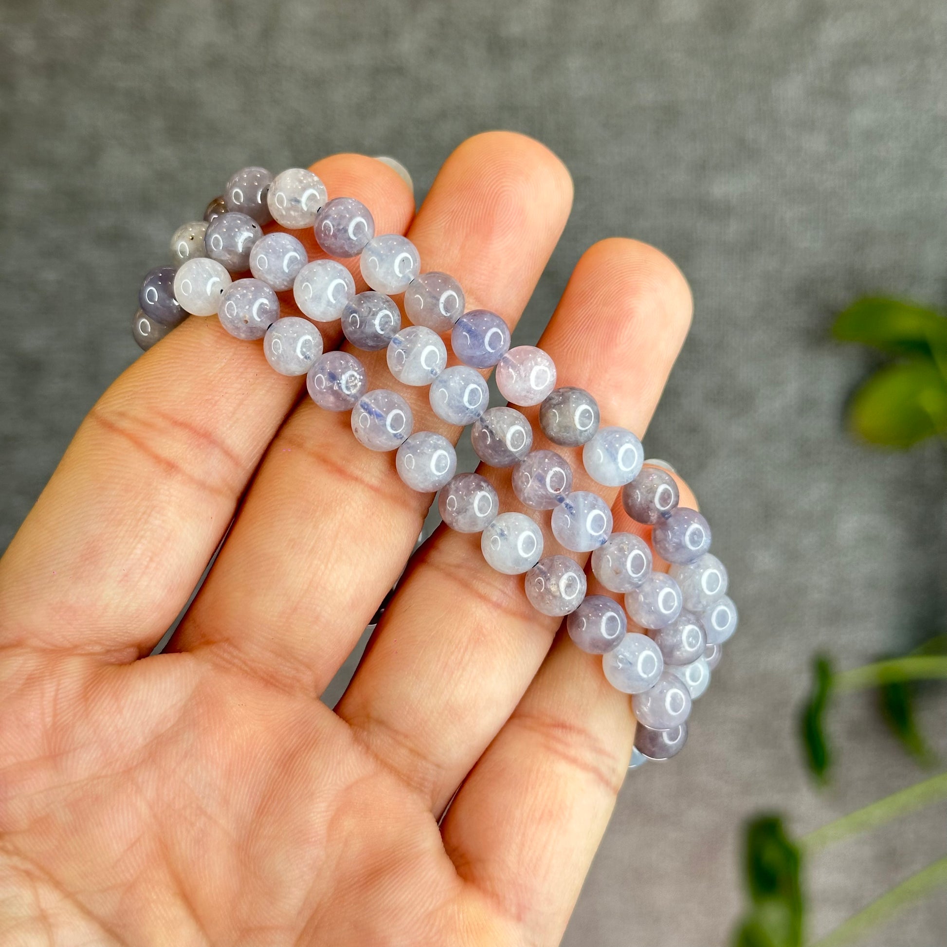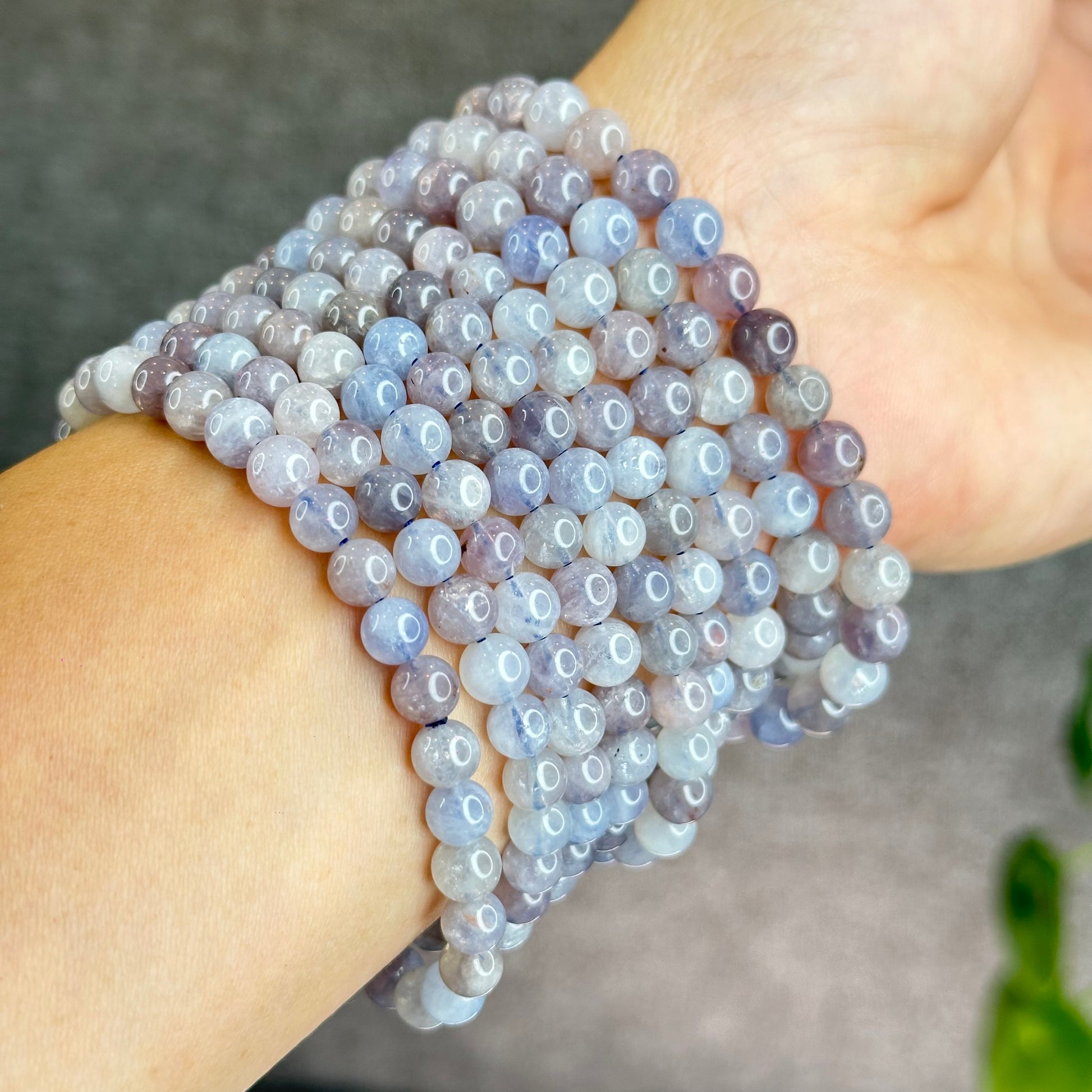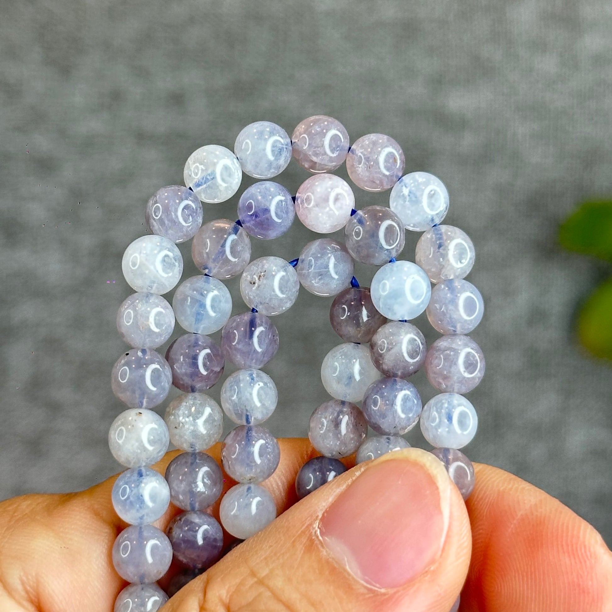 Natural Blue Rose Quartz Triple Wrap Bracelet Size 6.5 mm