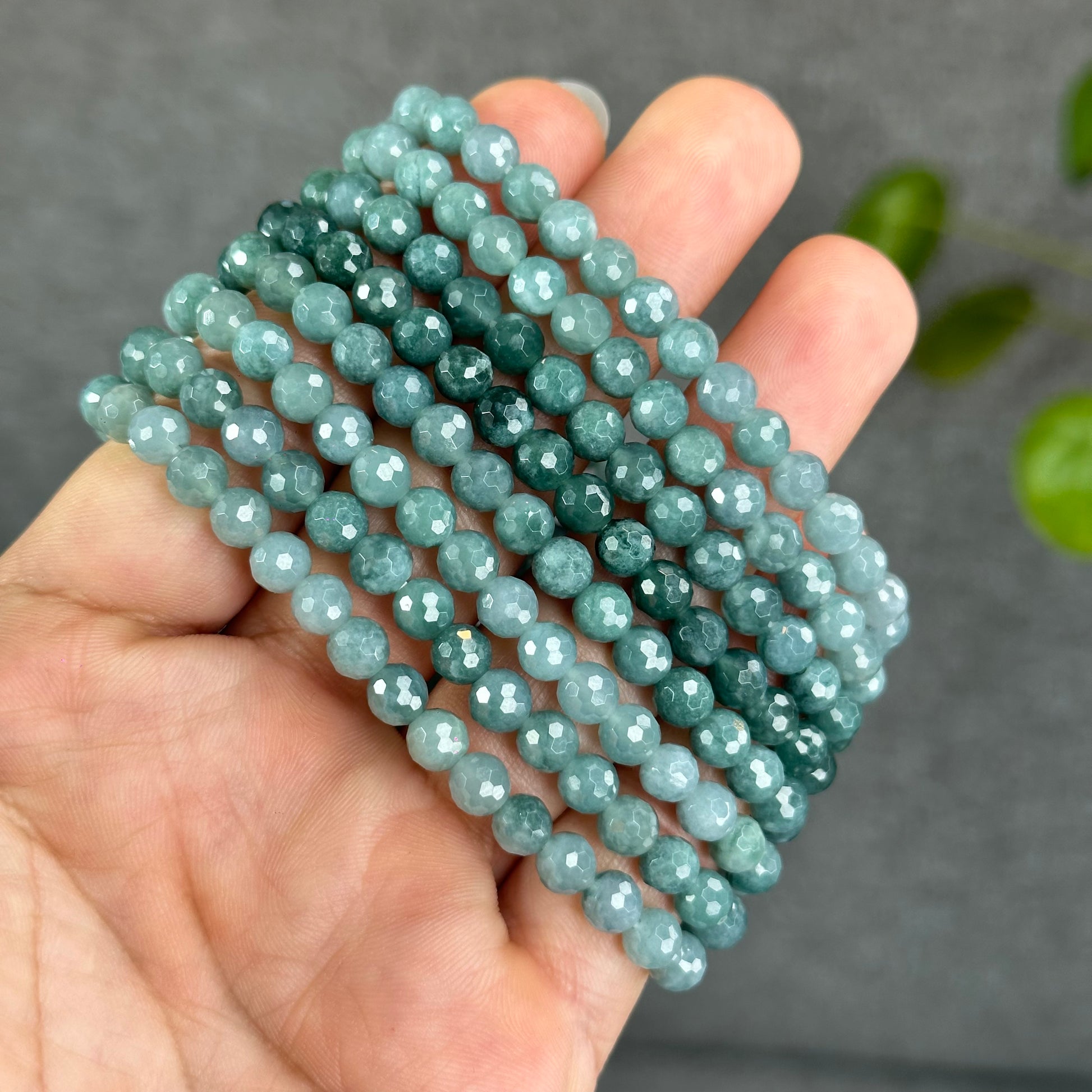Natural Water Green Jadeite Jade Faceted Bracelet Size 5.7 mm