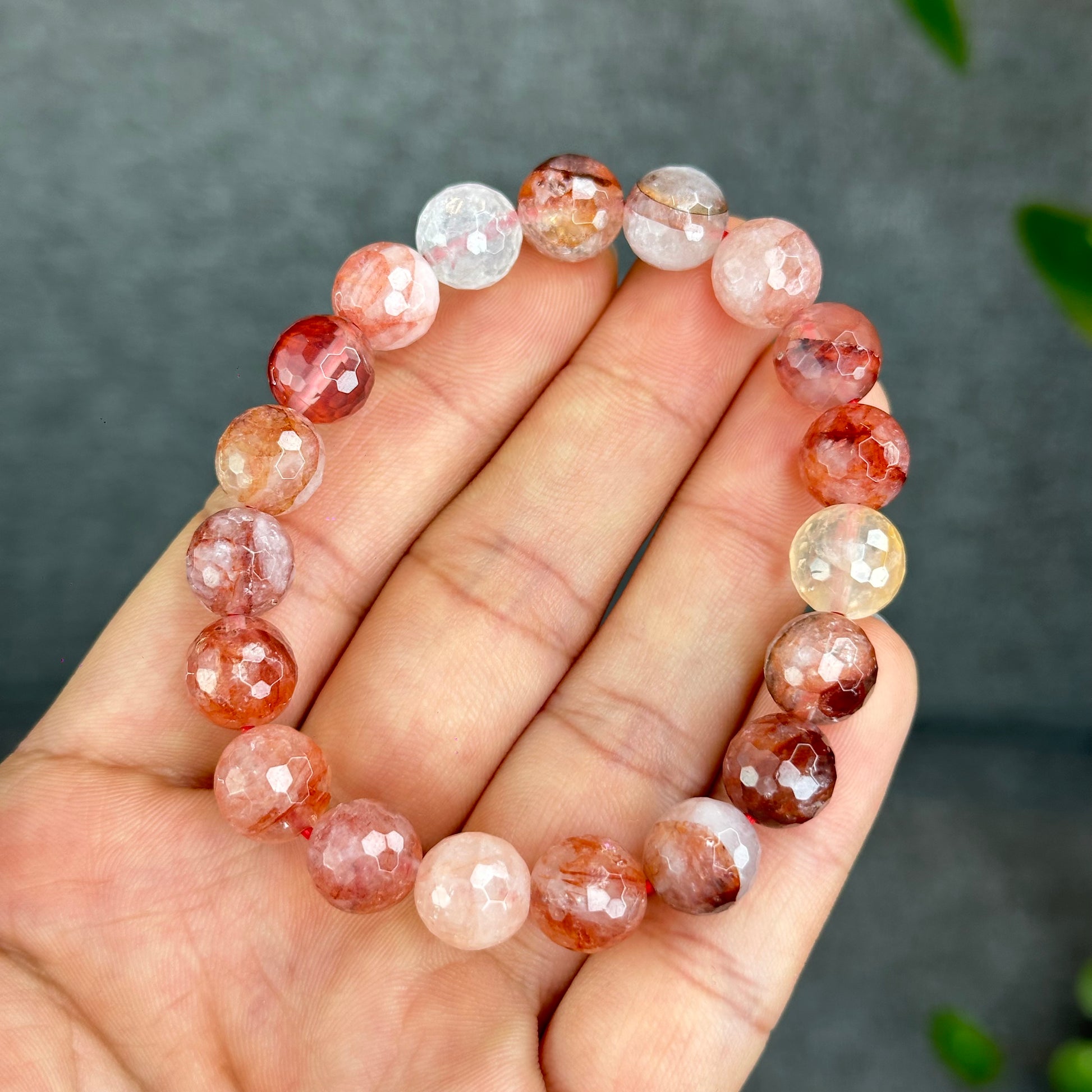 Natural Faceted Fire Quartz Bracelet size 9.7-10 mm
