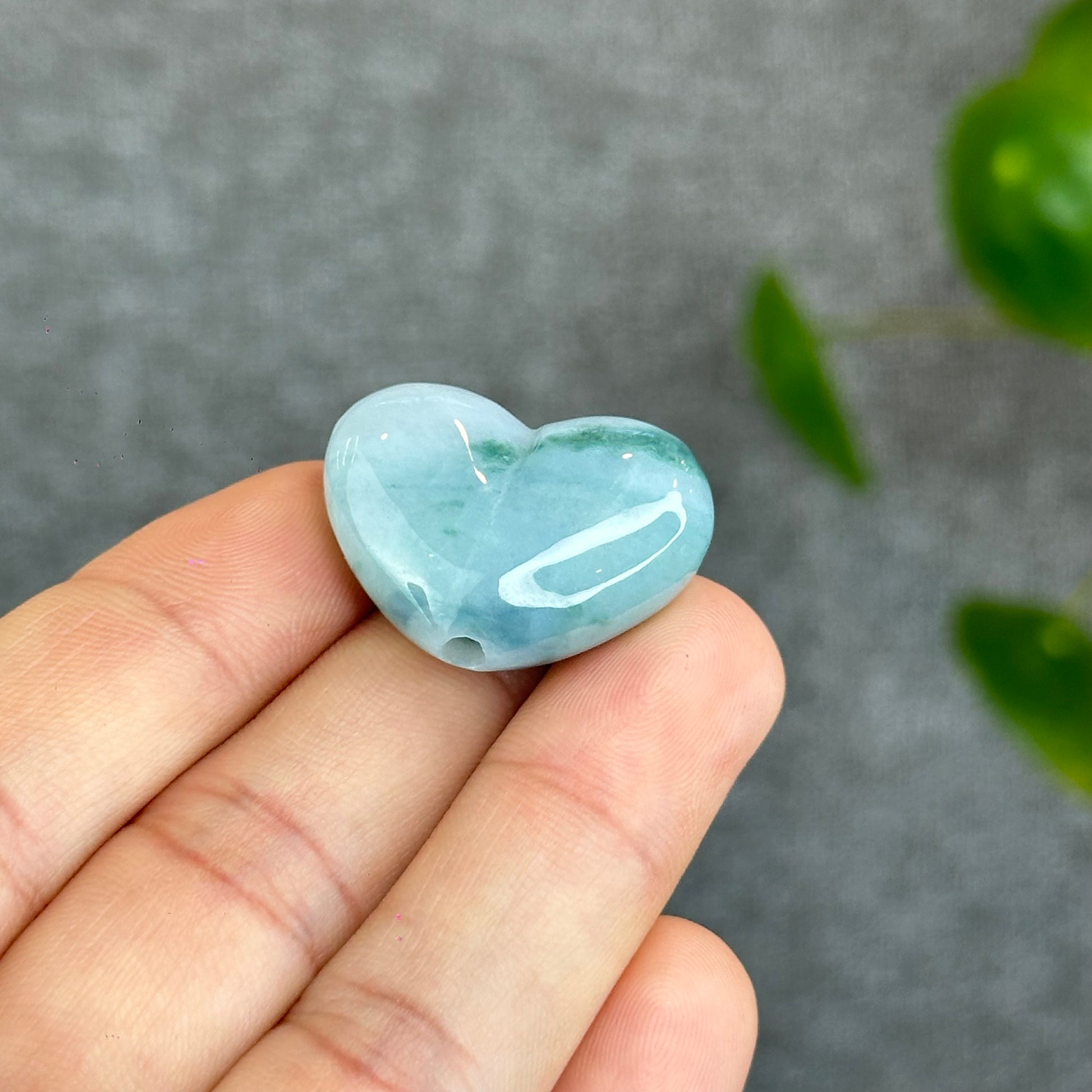 - Natural Floating Moss Floral Green Jadeite Jade Heart Charm