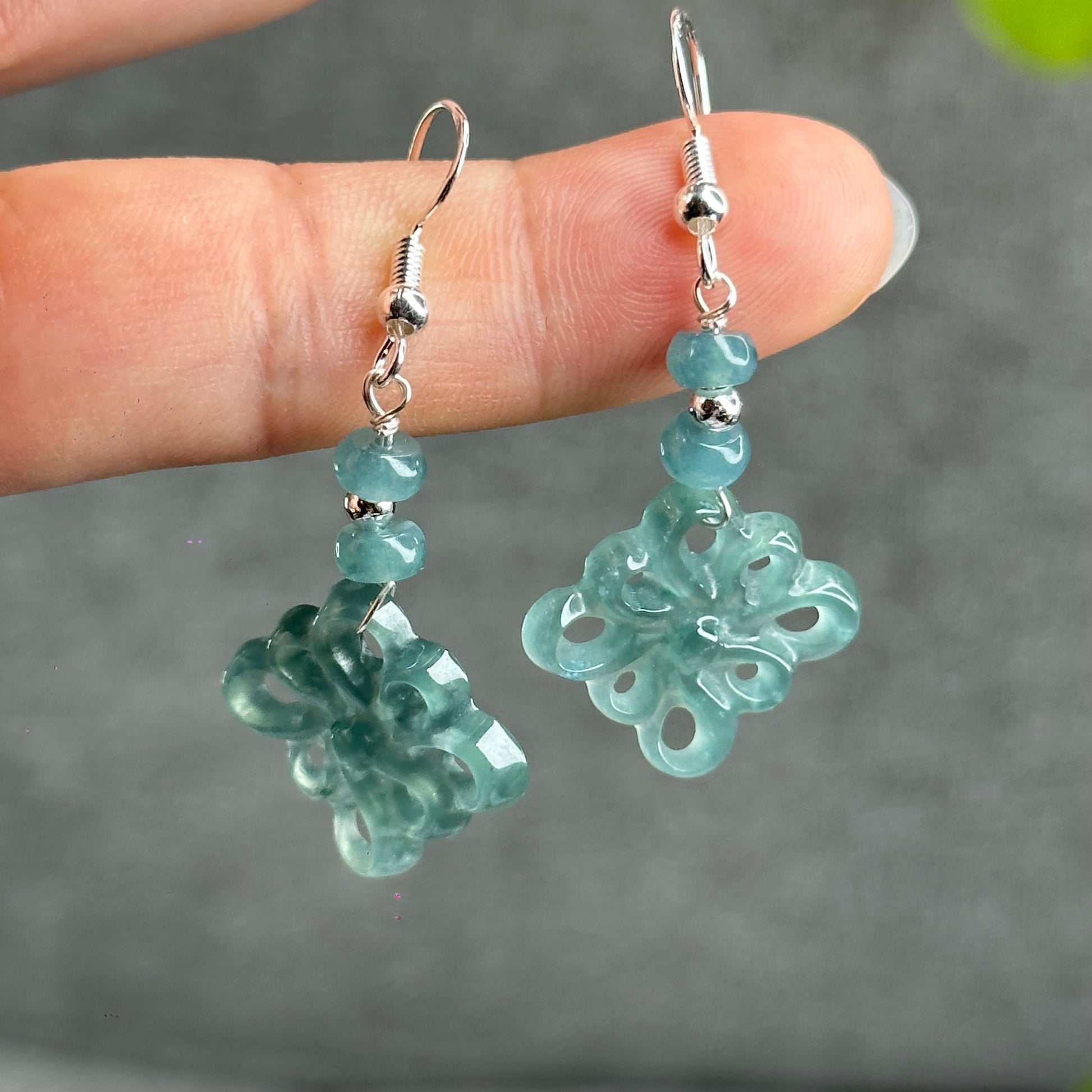 - Natural Water Green Jadeite Jade Flower Earrings