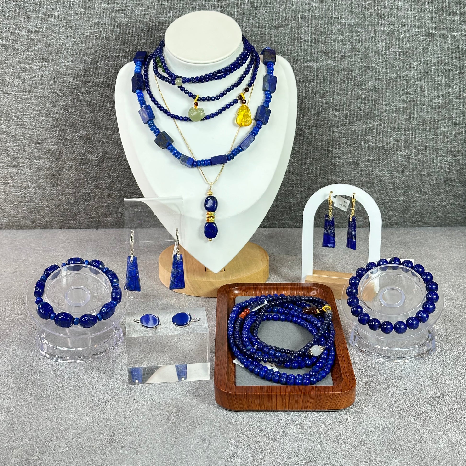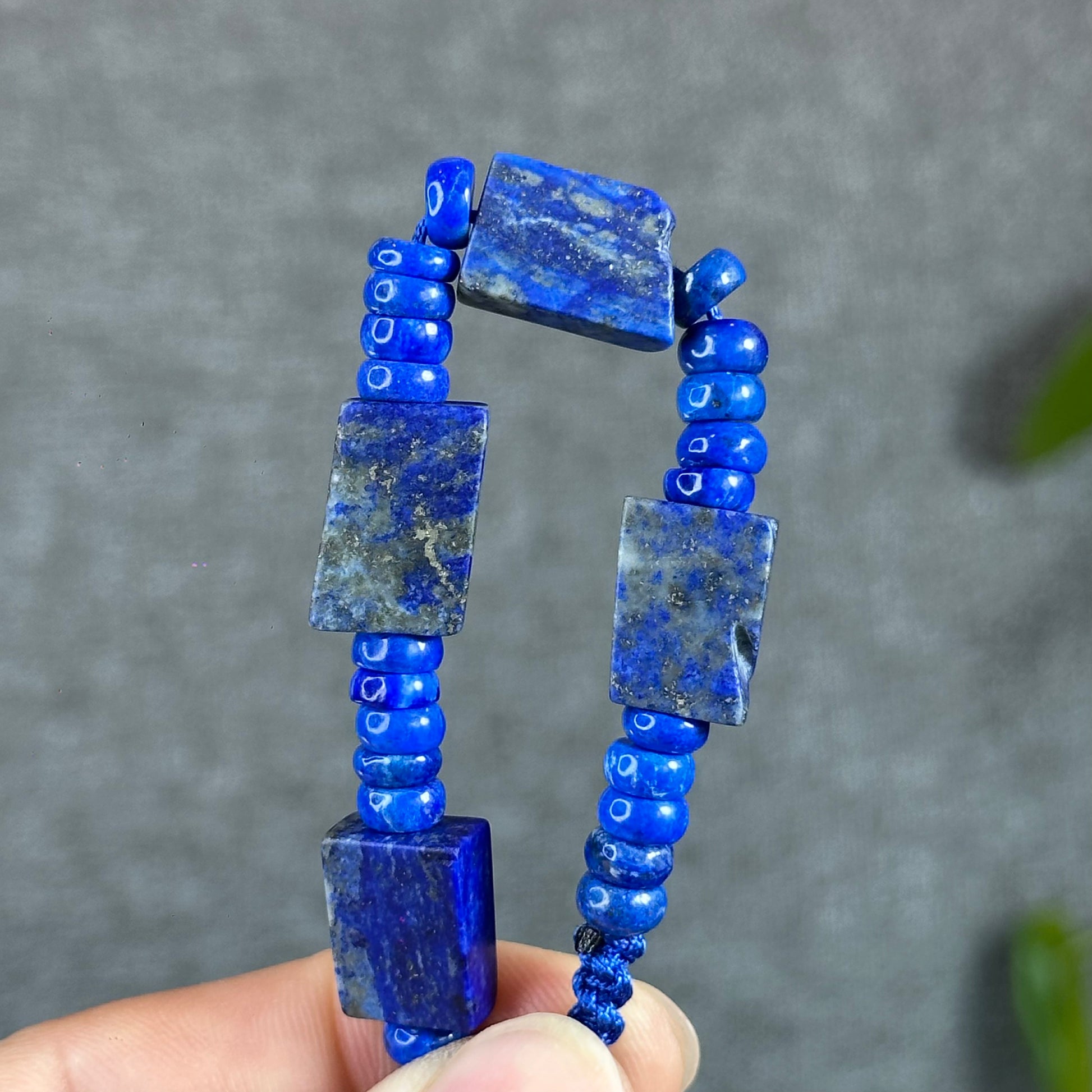 Natural Lapis Lazuli Custom Necklace, Square & Chicklet Bead Mix, Adjustable
