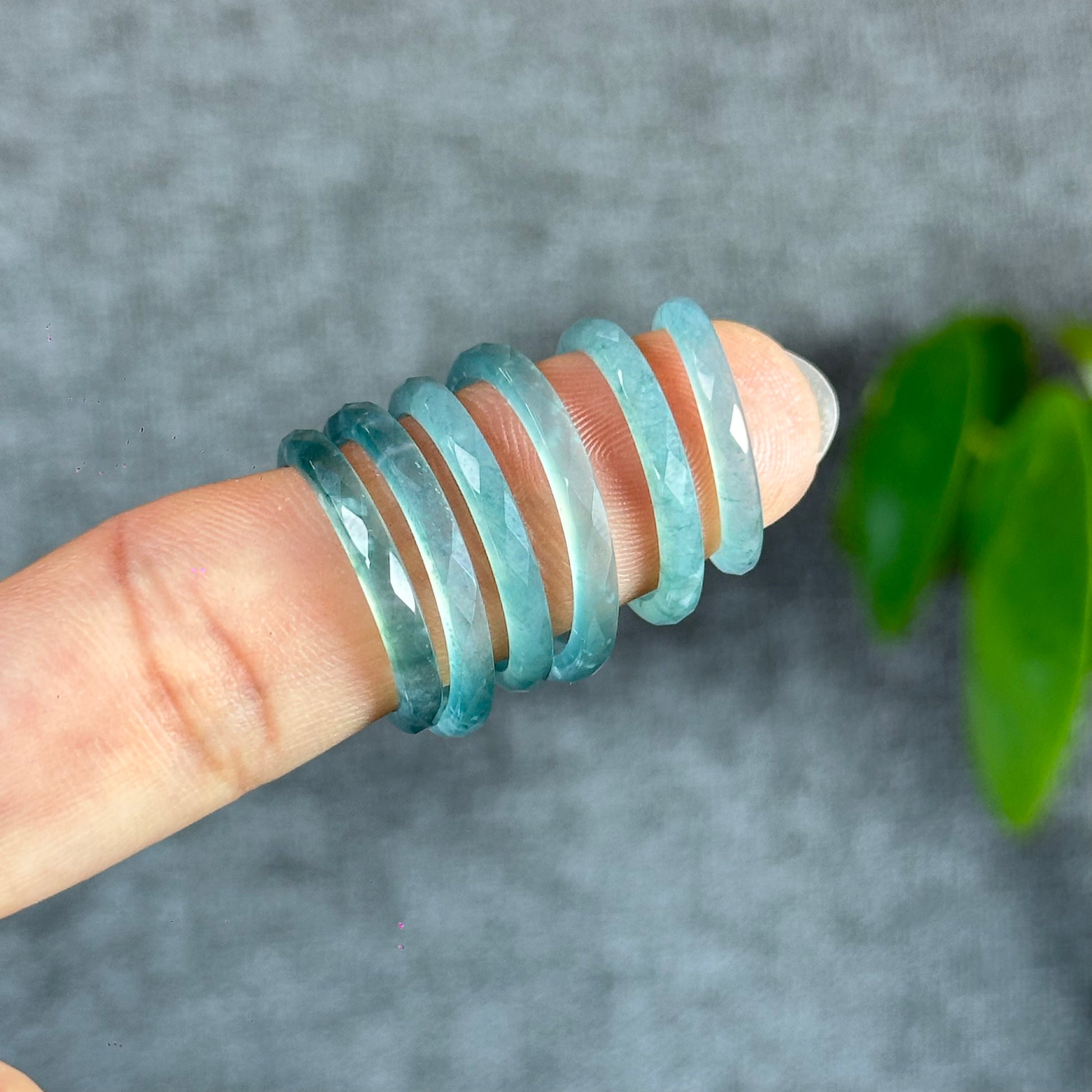 - Natural Blue Water Facet Jadeite Jade Ring Size 1.5