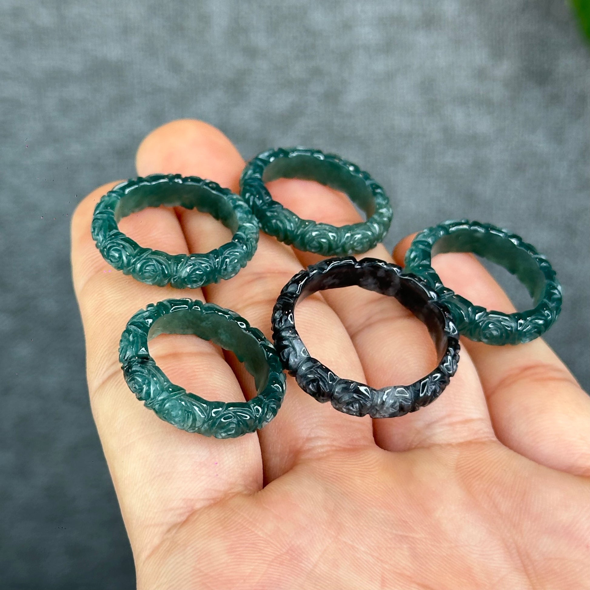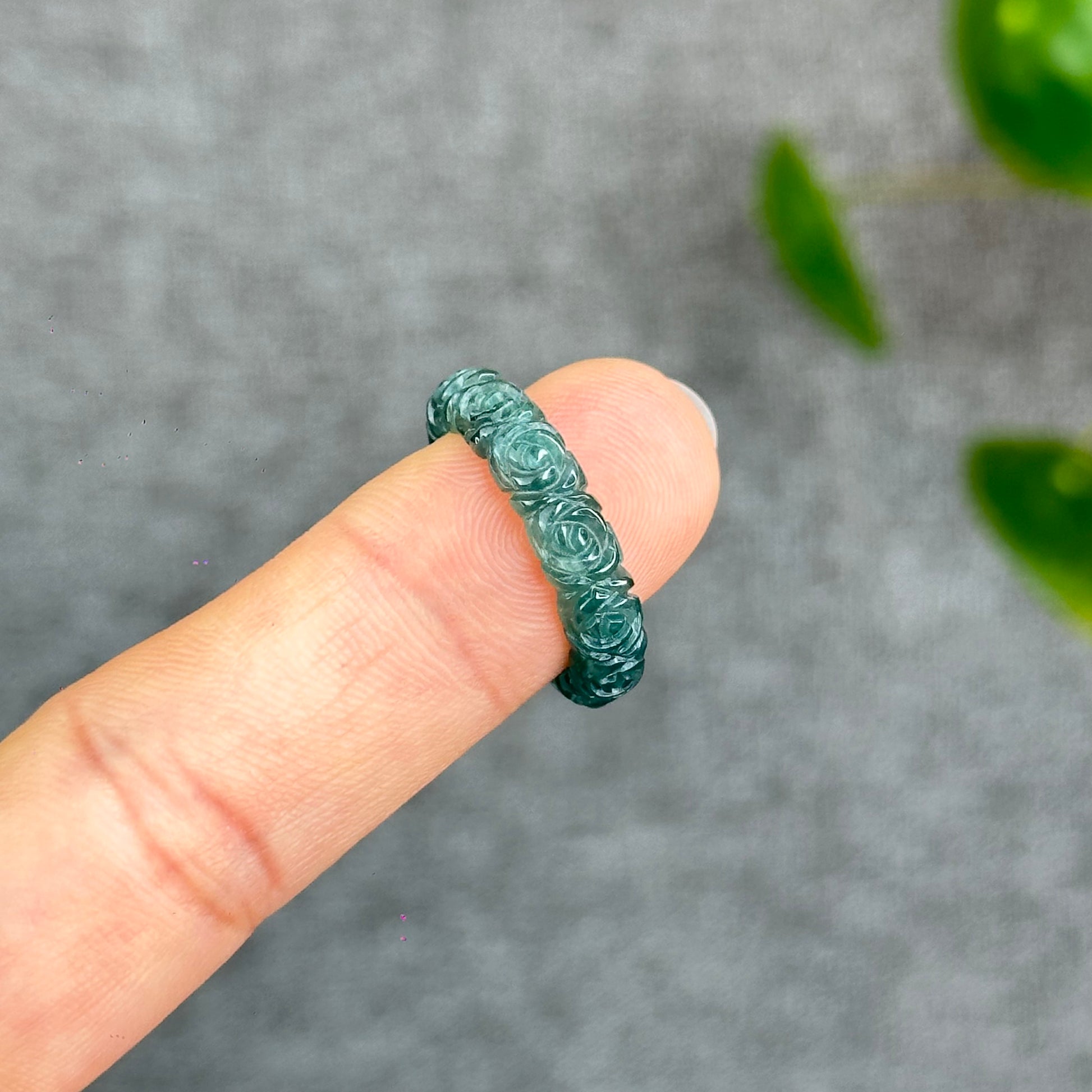- Natural Floral Carved Jadeite Jade Ring 1.84